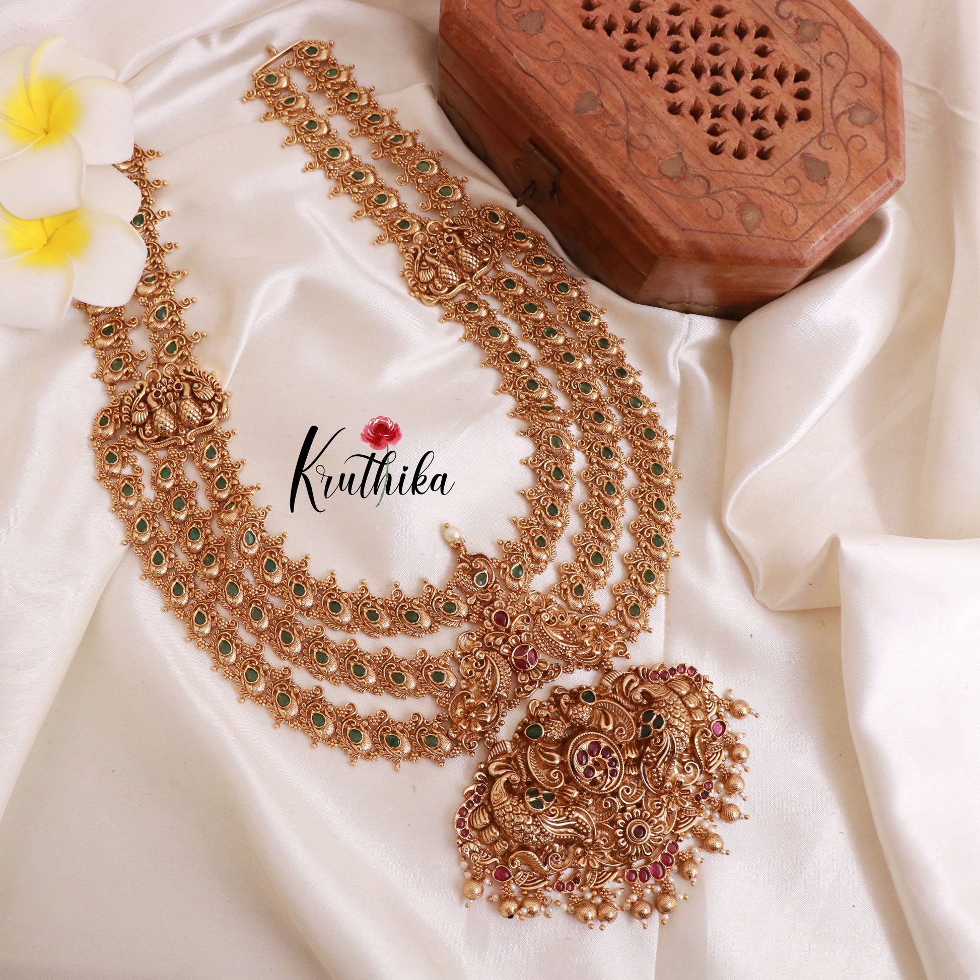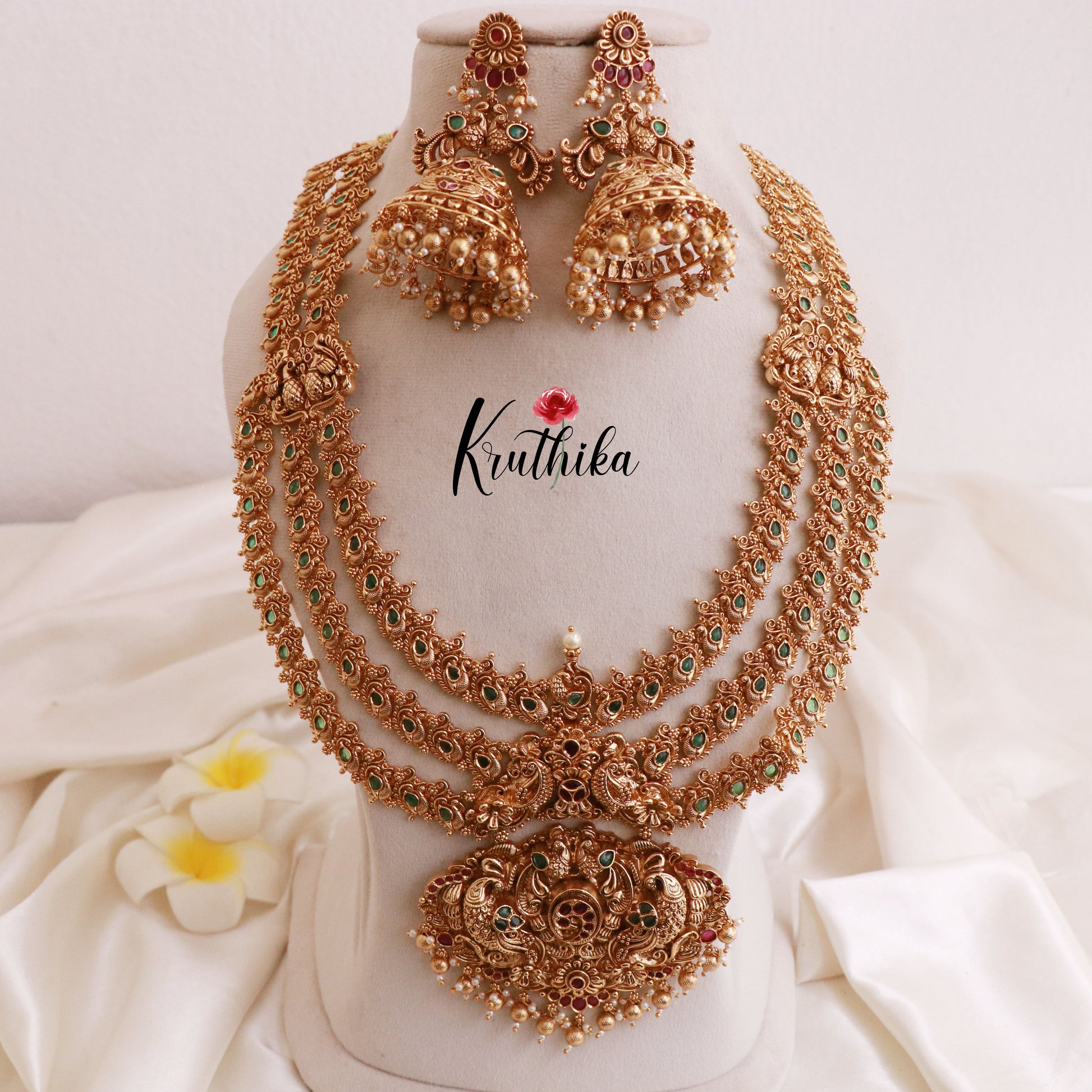Enhance your style with our stunning, Grand Three-layer Peacock Premium Haaram , paired perfectly with matching earrings. Crafted with high-quality stones & beads, this set combines timeless elegance with a modern touch. Ideal for special occasions or adding a touch of glamour to your look.