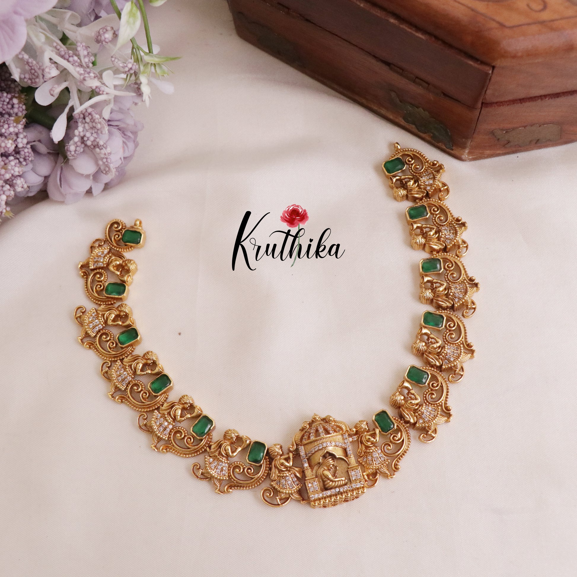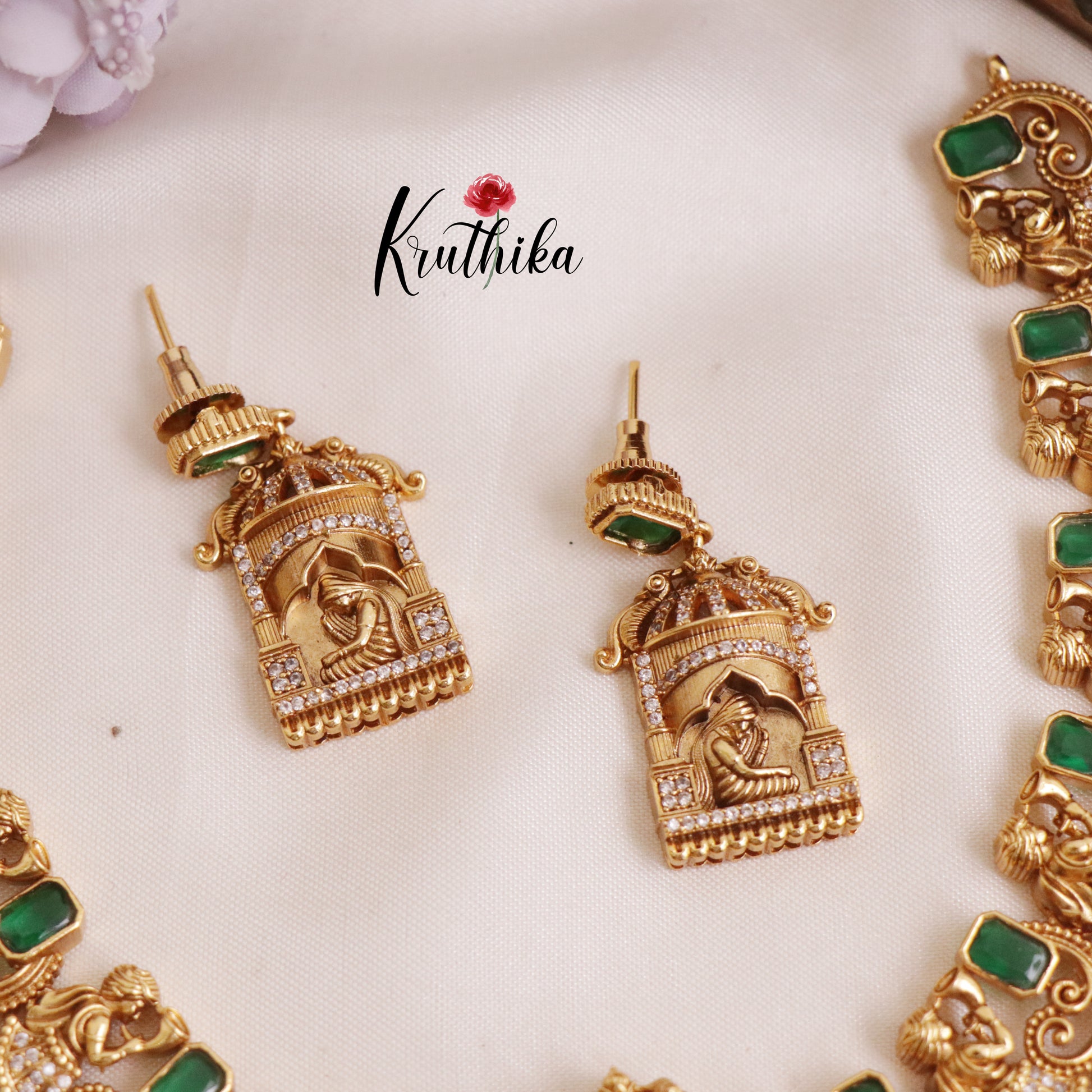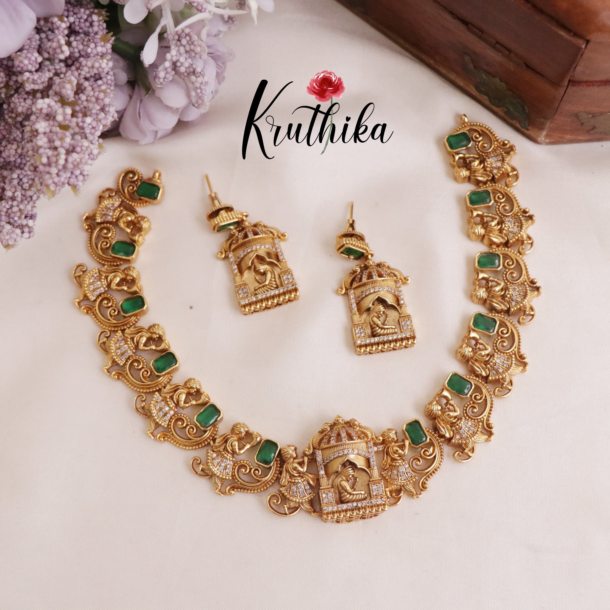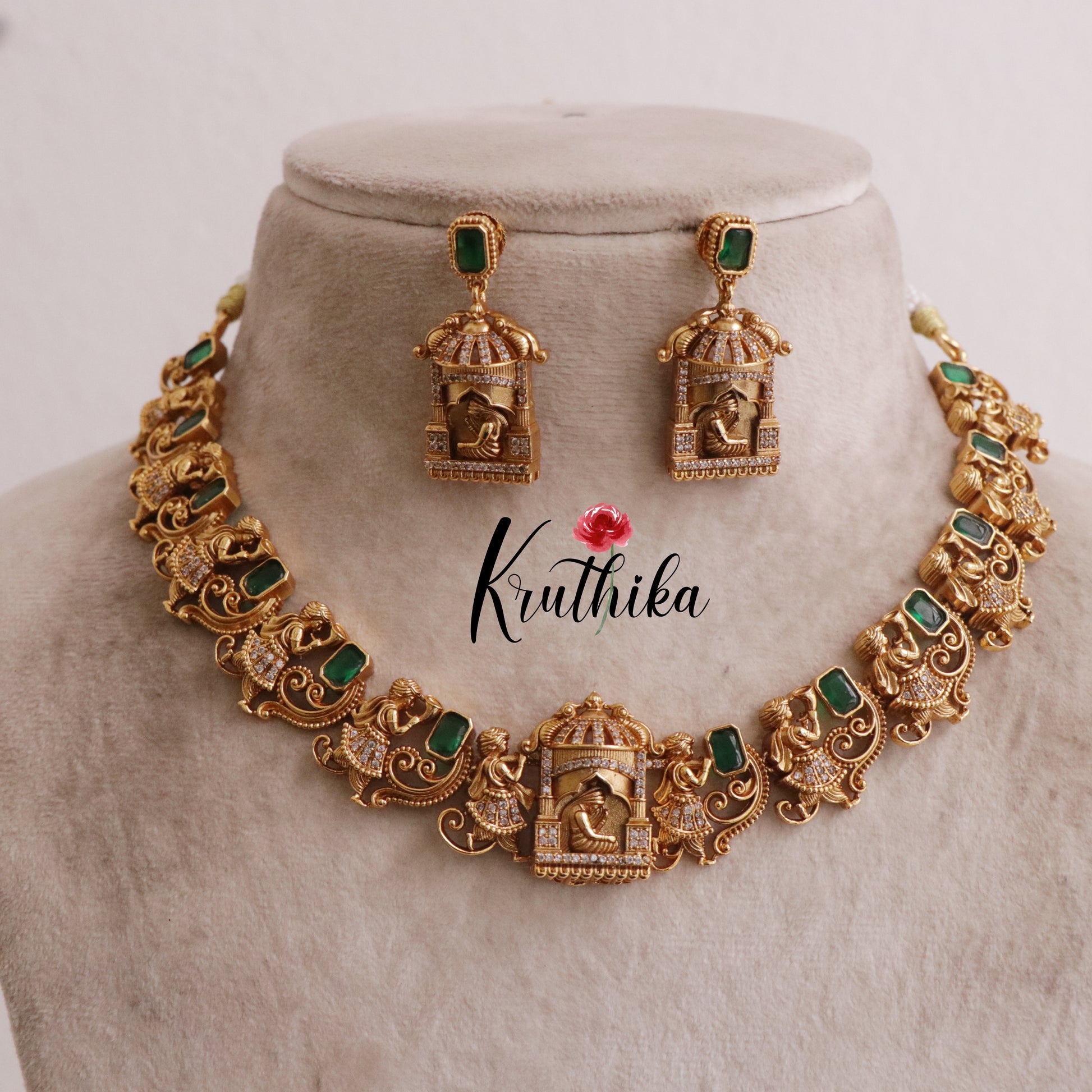 Enhance your style with our stunning, Grand Traditional Antique Pallaku Design with Emerald Necklace paired perfectly with matching earrings. Crafted with high-quality stones & beads, this set combines timeless elegance with a modern touch. Ideal for special occasions or adding a touch of glamour to your look.