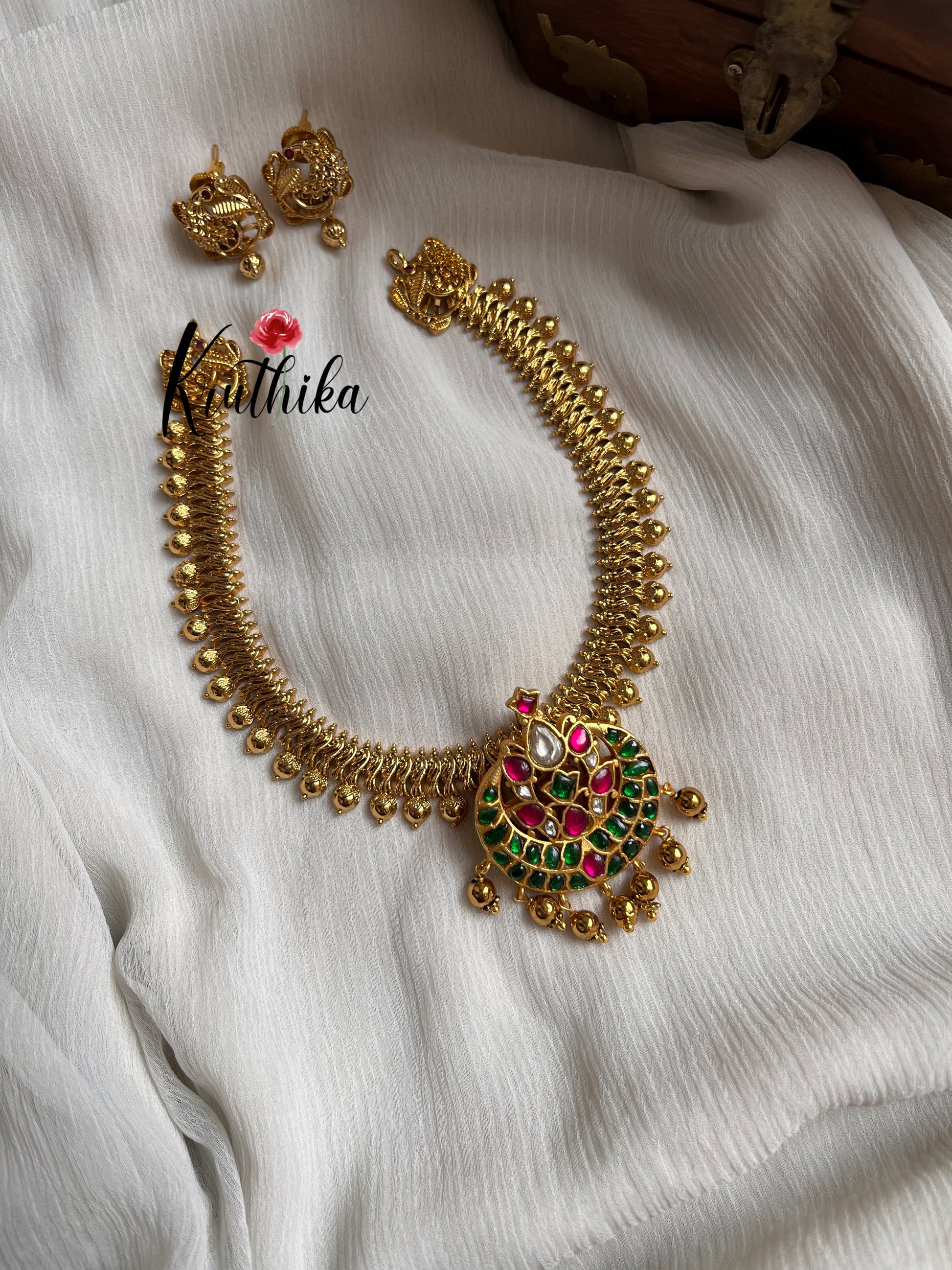 Enhance your style with our stunning Jadau Pendant Chain set, paired perfectly with matching earrings. Crafted with high-quality stones & beads, this set combines timeless elegance with a modern touch. Ideal for special occasions or adding a touch of glamour to your look.
