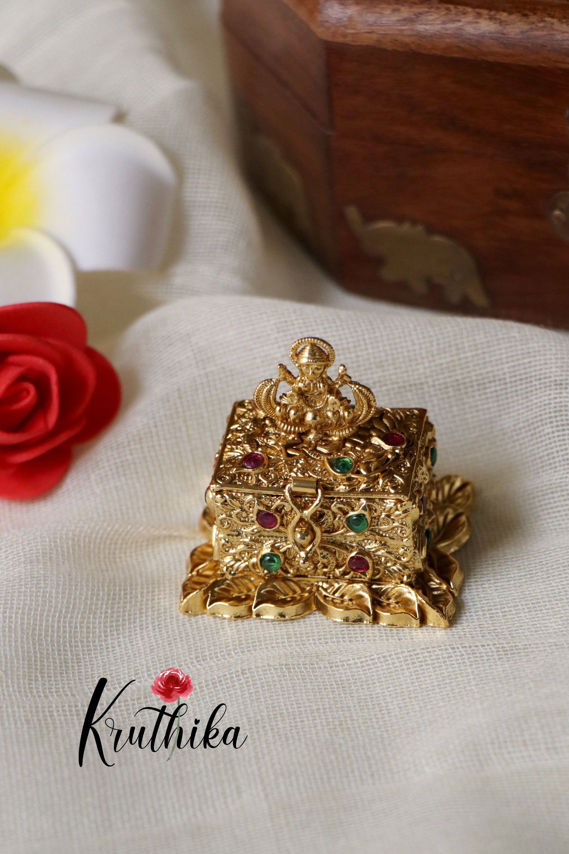Store your essentials in style with our exquisite Kukum Boxes. Perfect for holding kumkum, bindi, or other small items, these boxes blend traditional charm with practical design, making them a beautiful addition to your vanity or puja space.