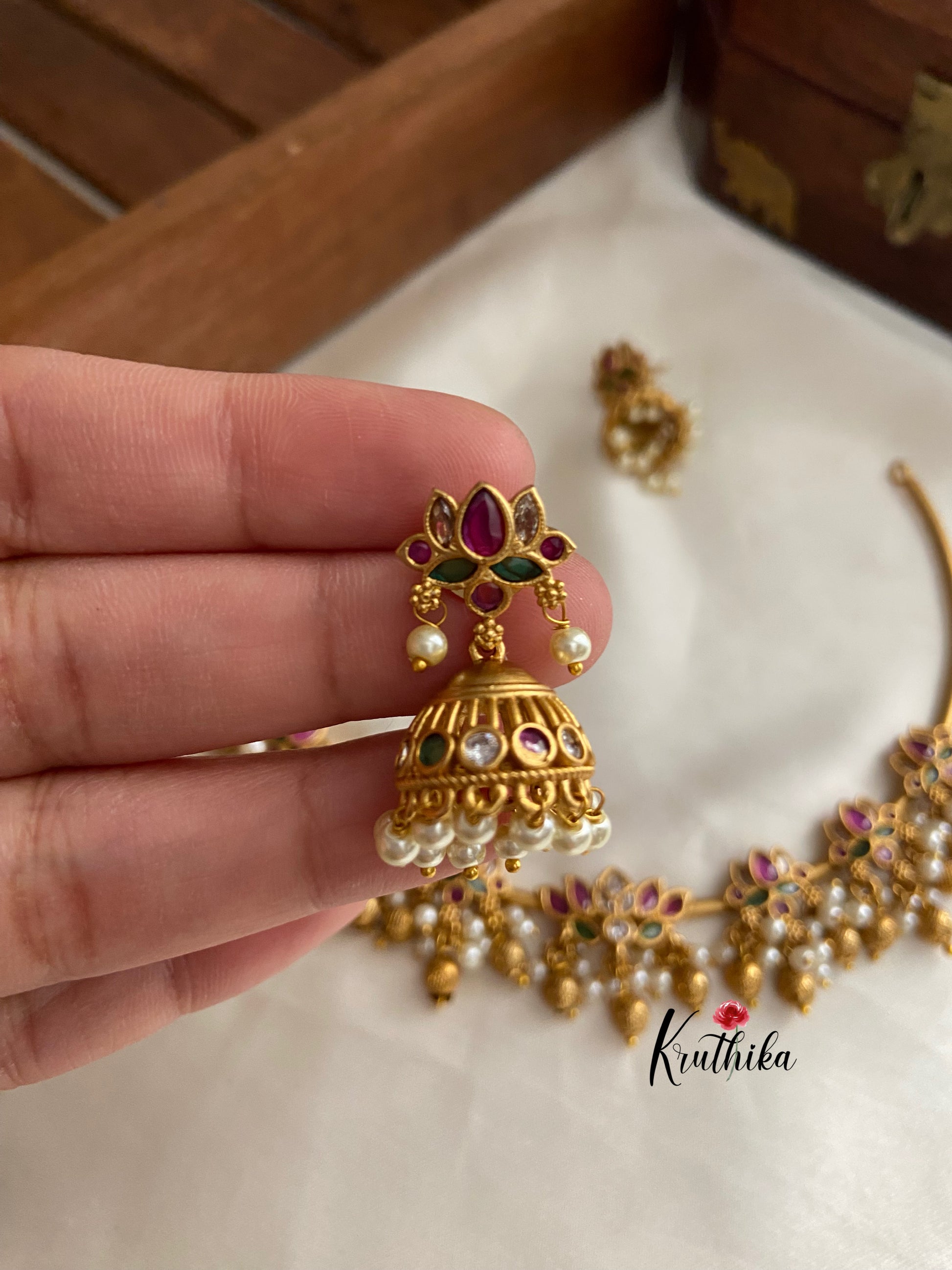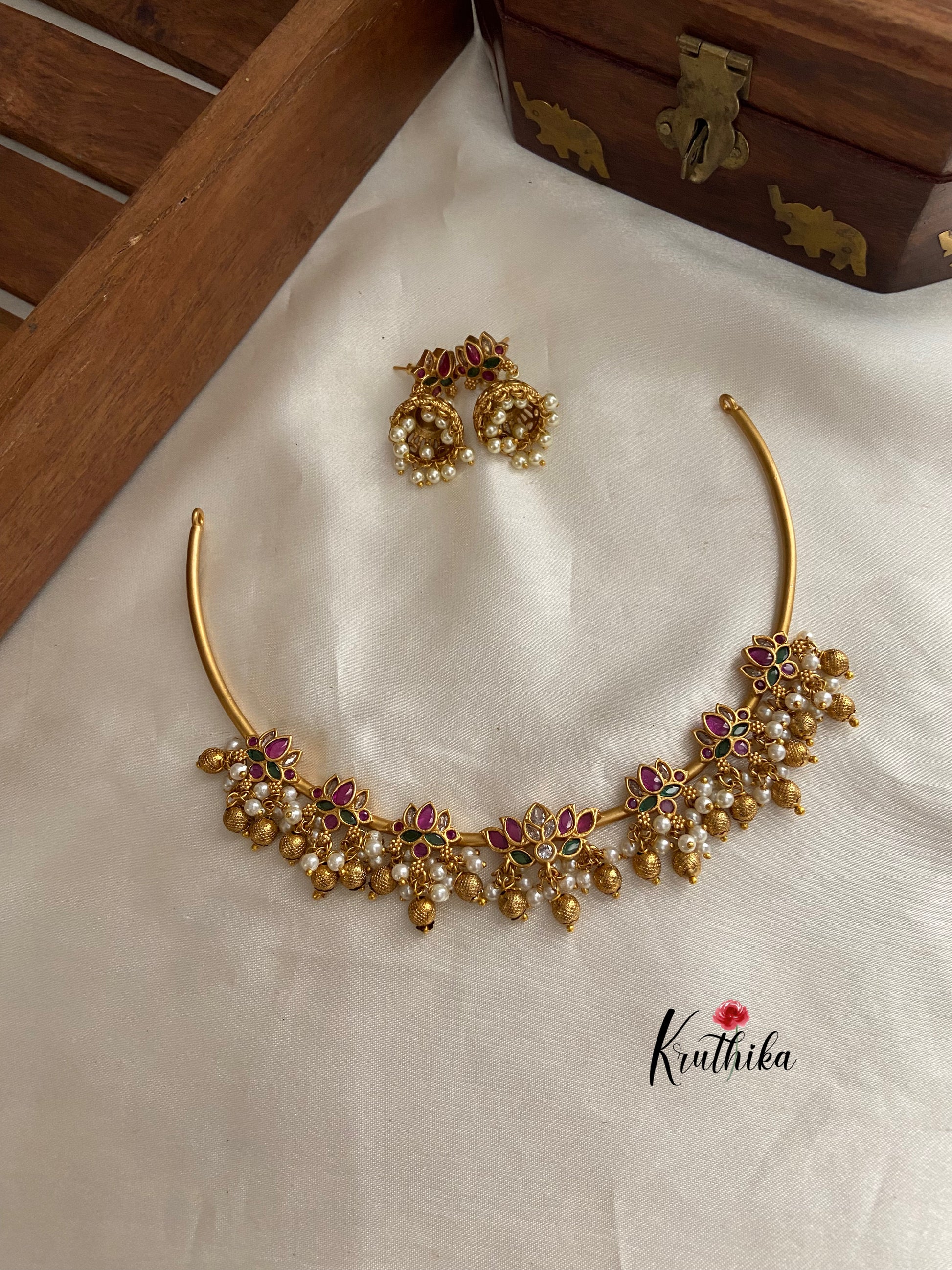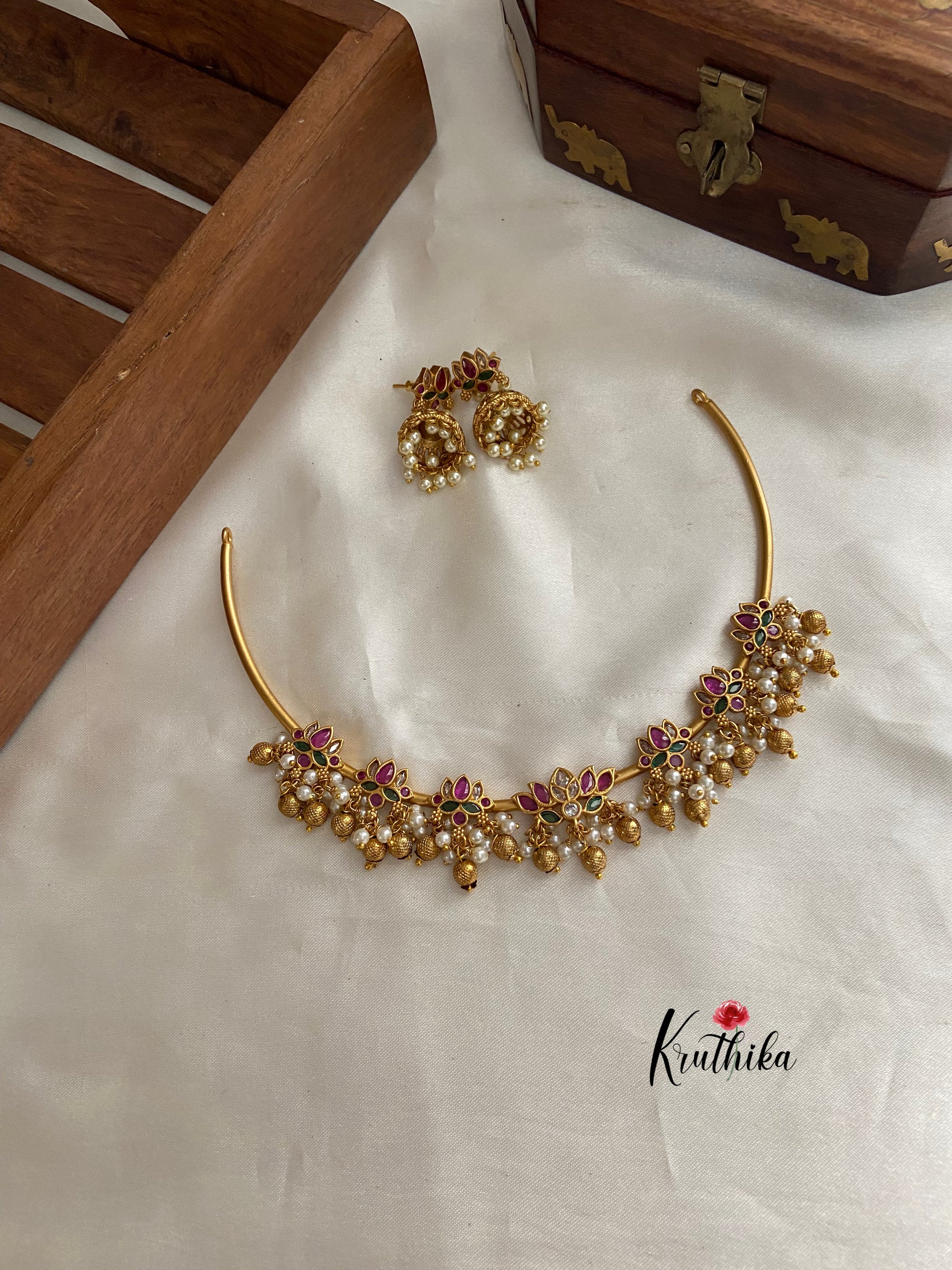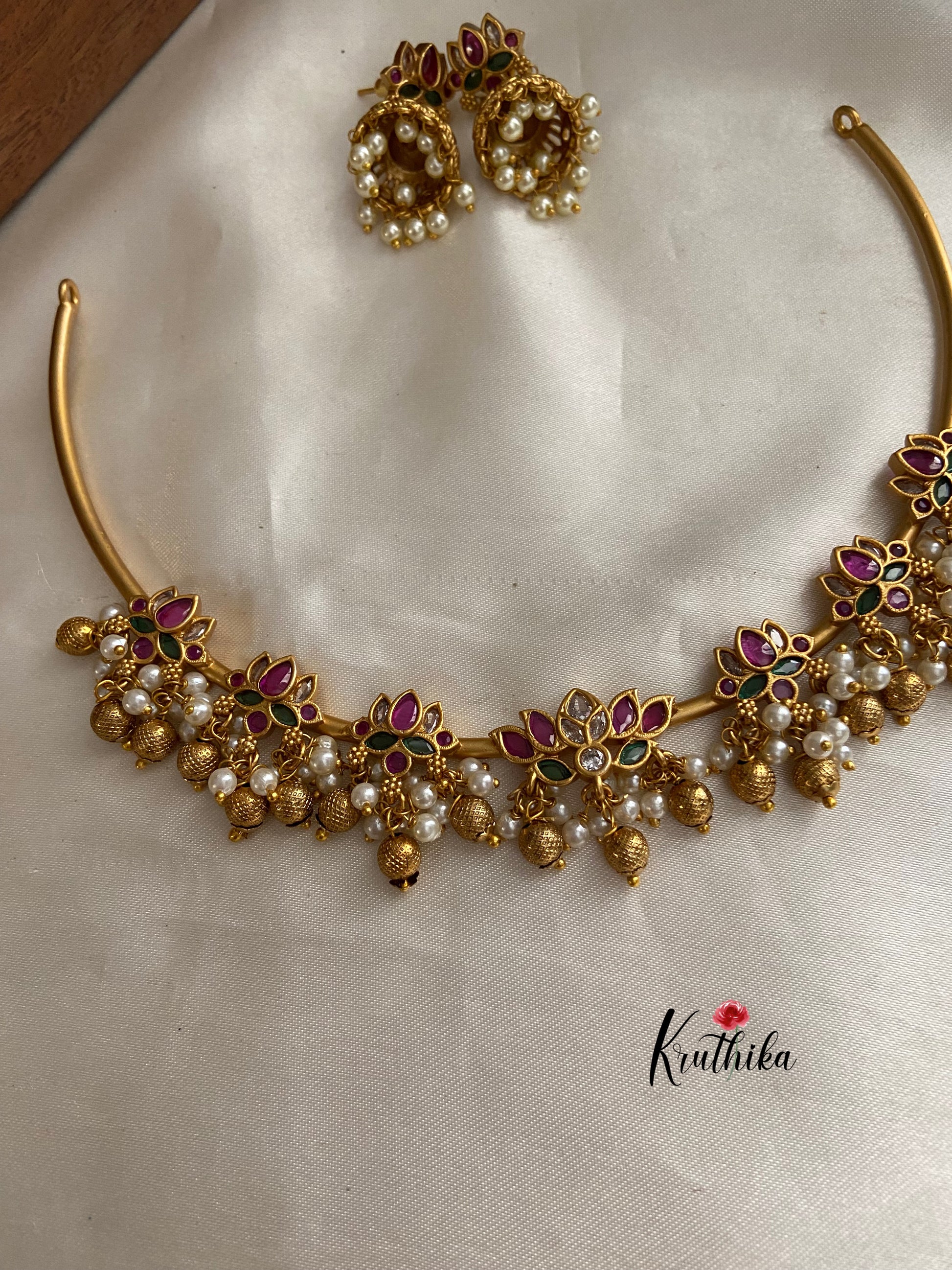 Enhance your style with our stunning Lotus pendants pipe necklace set, paired perfectly with matching earrings. Crafted with high-quality stones & beads, this set combines timeless elegance with a modern touch. Ideal for special occasions or adding a touch of glamour to your look.