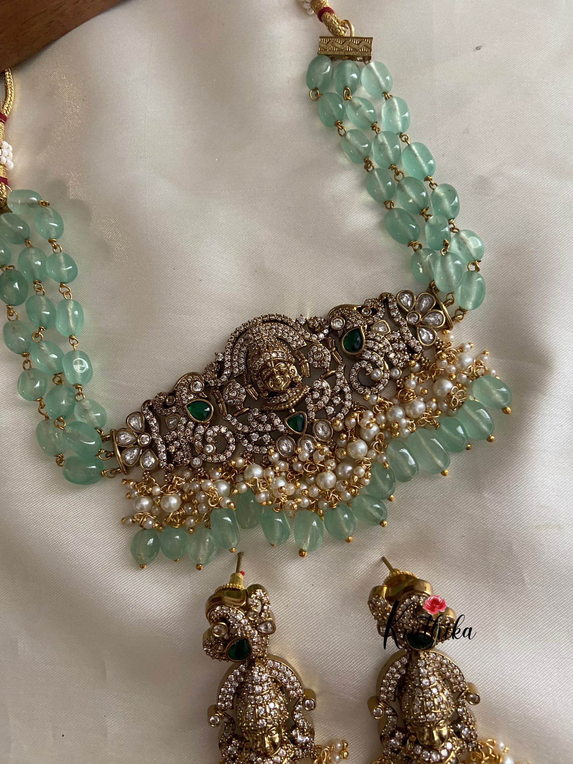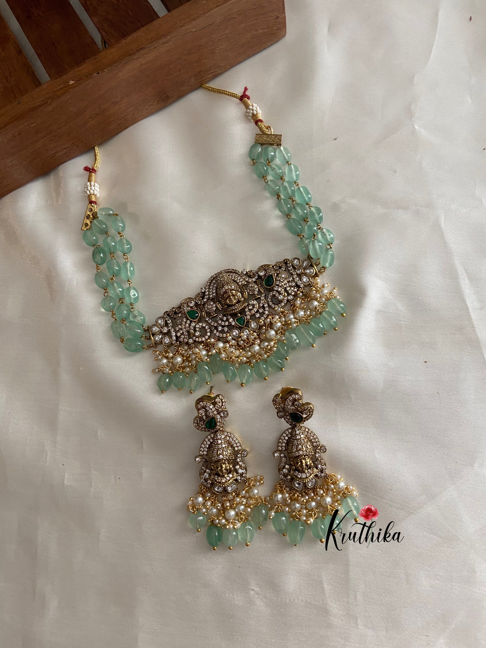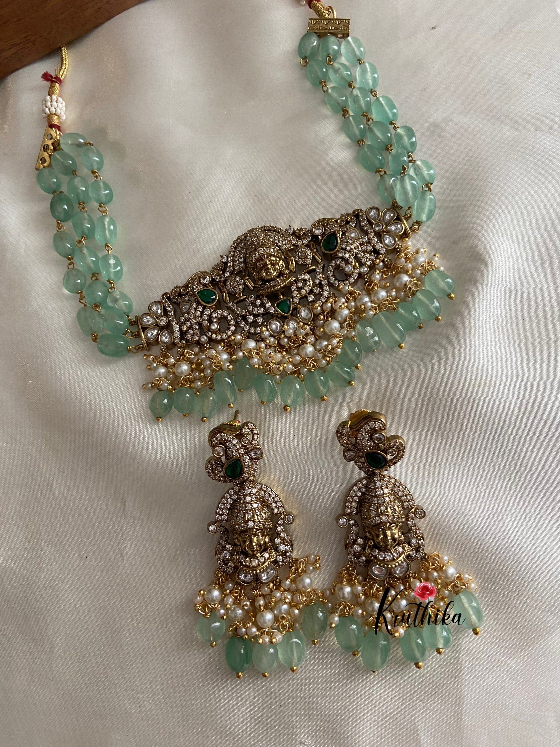 Enhance your style with our stunning Mint beads Victorian Goddess choker, paired perfectly with matching earrings. Crafted with high-quality stones & beads, this set combines timeless elegance with a modern touch. Ideal for special occasions or adding a touch of glamour to your look.