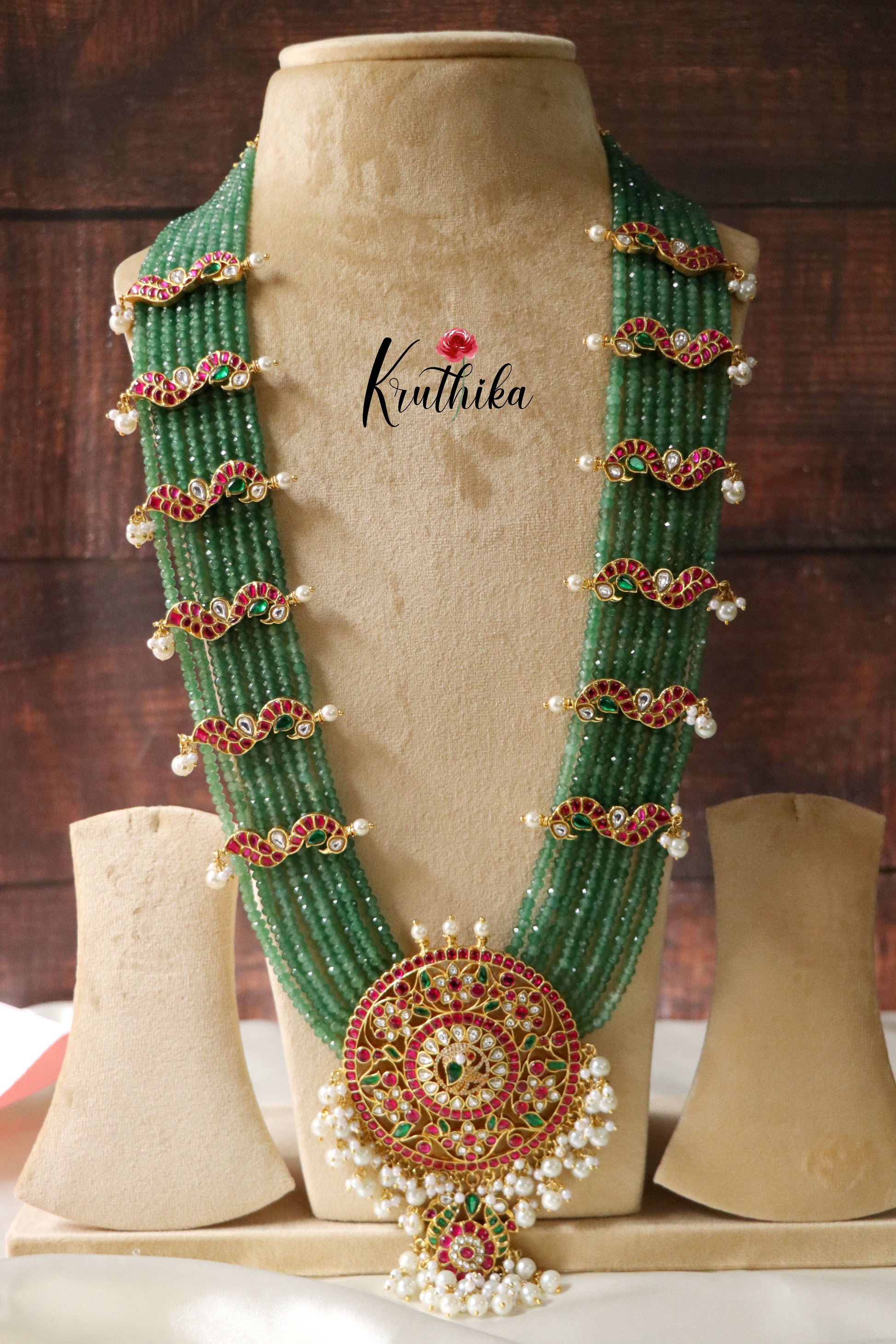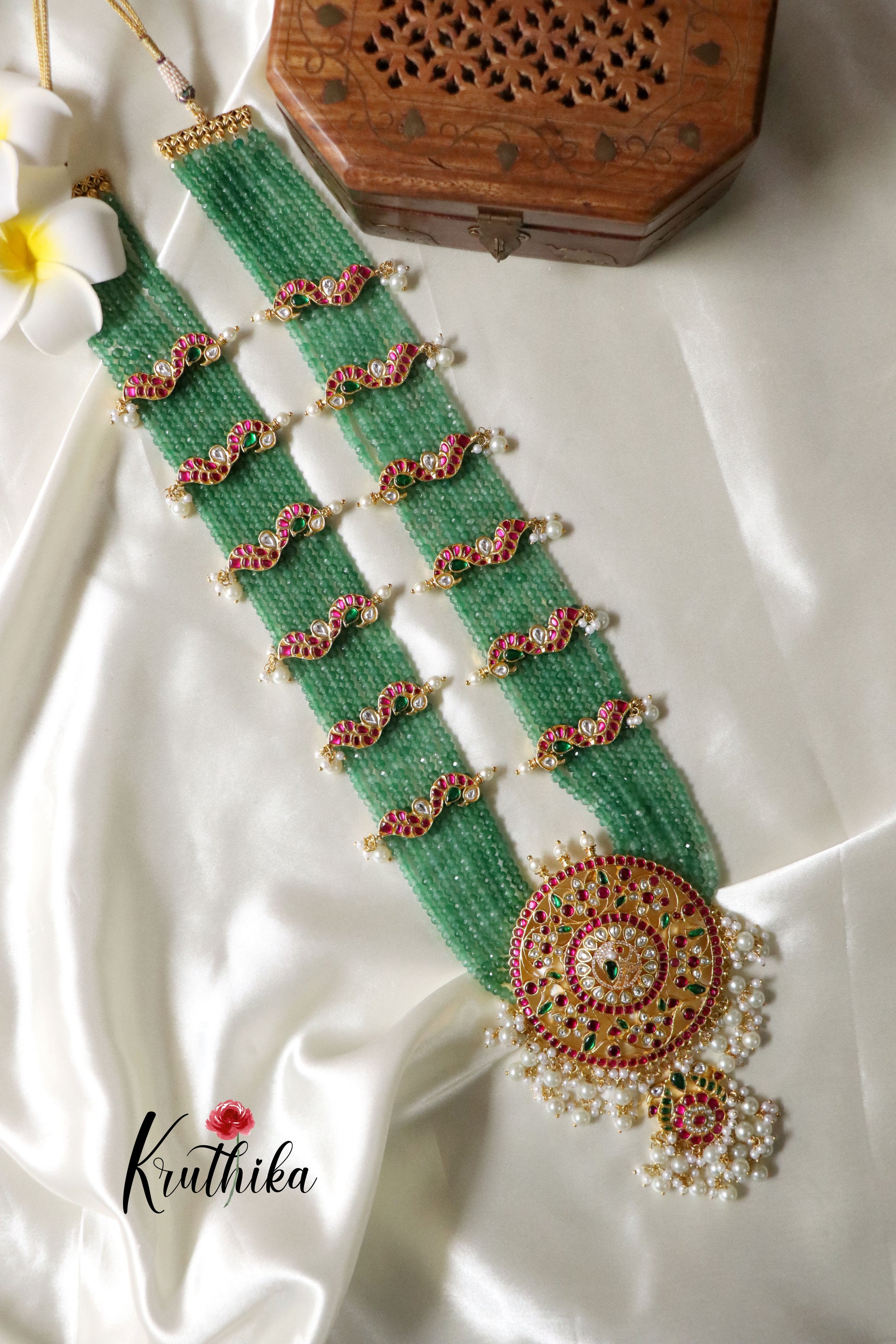 Enhance your style with our stunning Onyx Beads Grand Jadau Haaram, paired perfectly with matching earrings. Crafted with high-quality stones & beads, this set combines timeless elegance with a modern touch. Ideal for special occasions or adding a touch of glamour to your look.