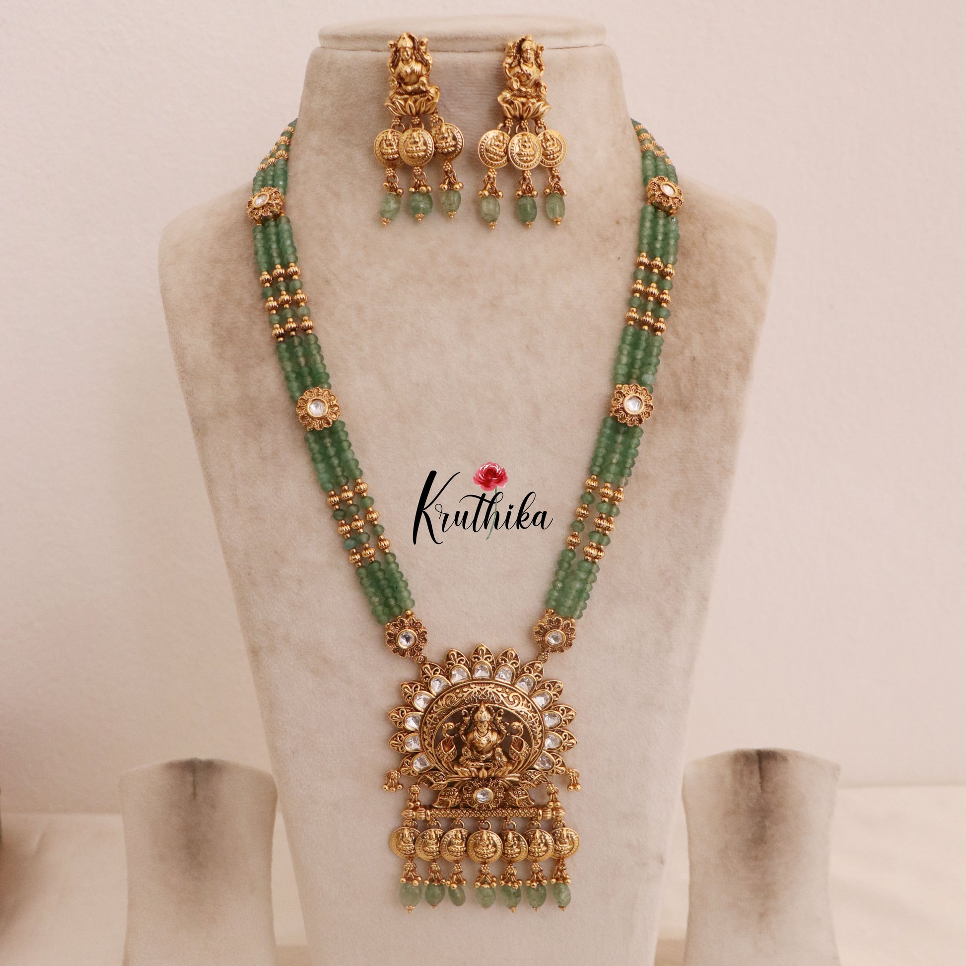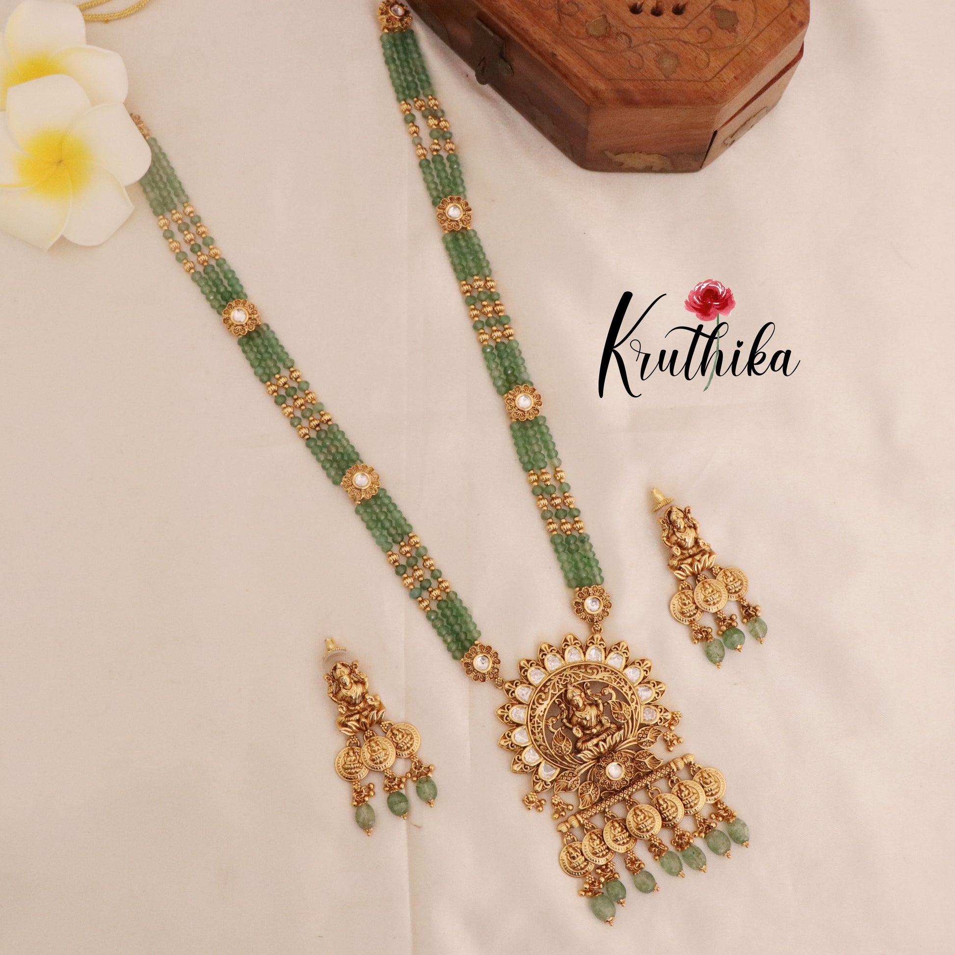 Enhance your style with our stunning nyx Beads Nakshi Temple Haaram, paired perfectly with matching earrings. Crafted with high-quality stones & beads, this set combines timeless elegance with a modern touch. Ideal for special occasions or adding a touch of glamour to your look.