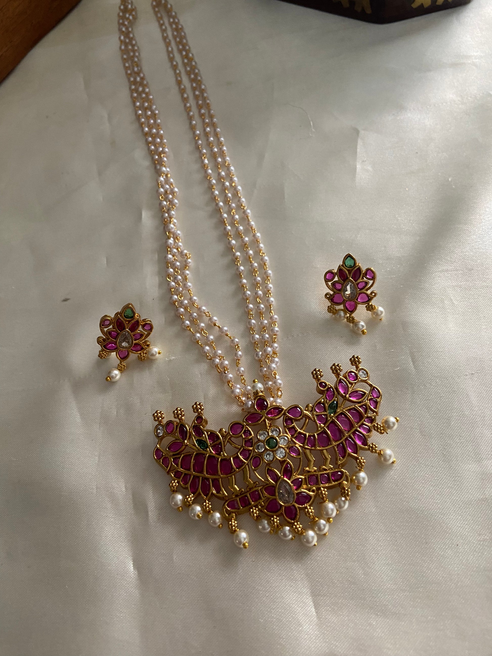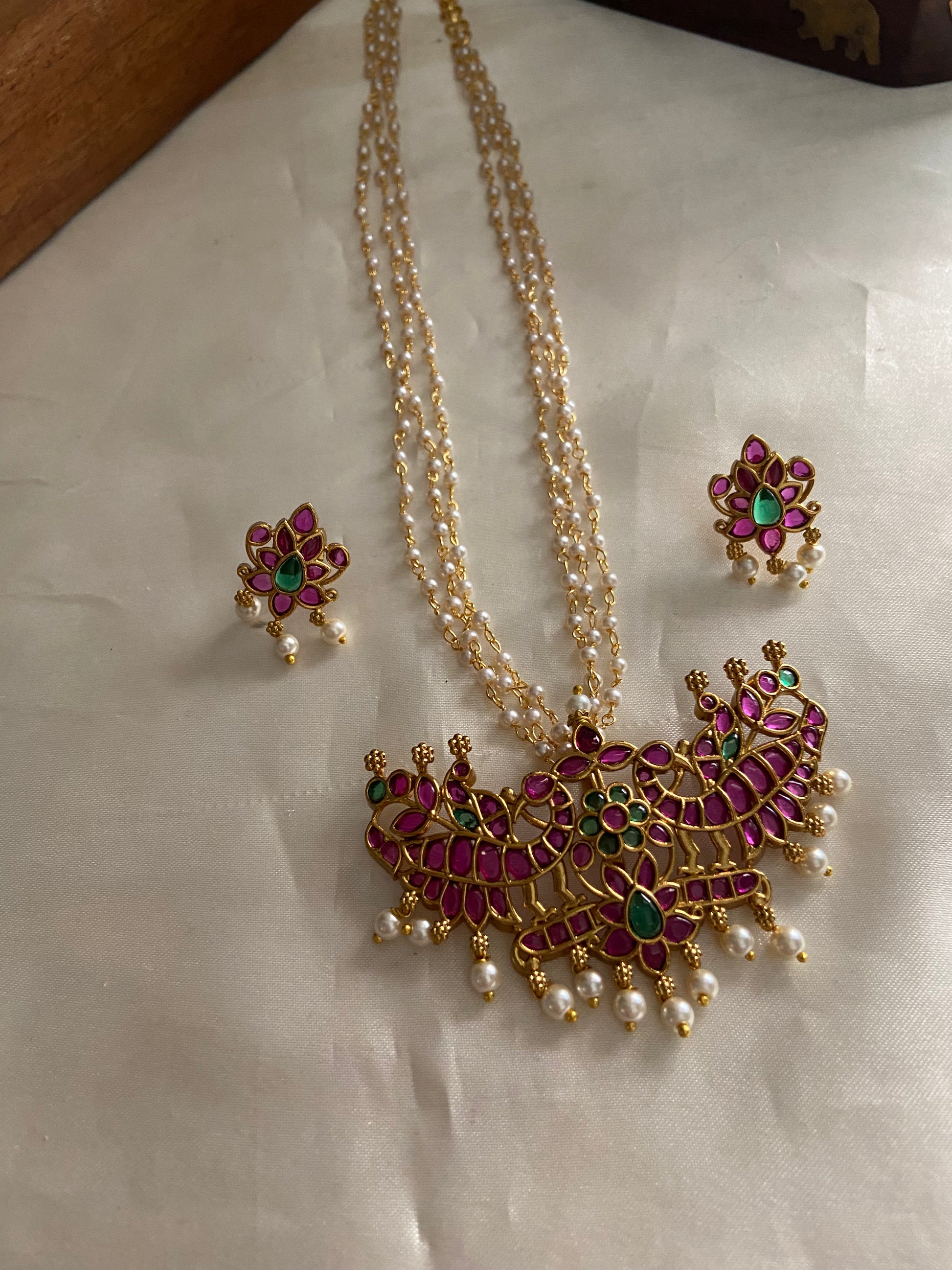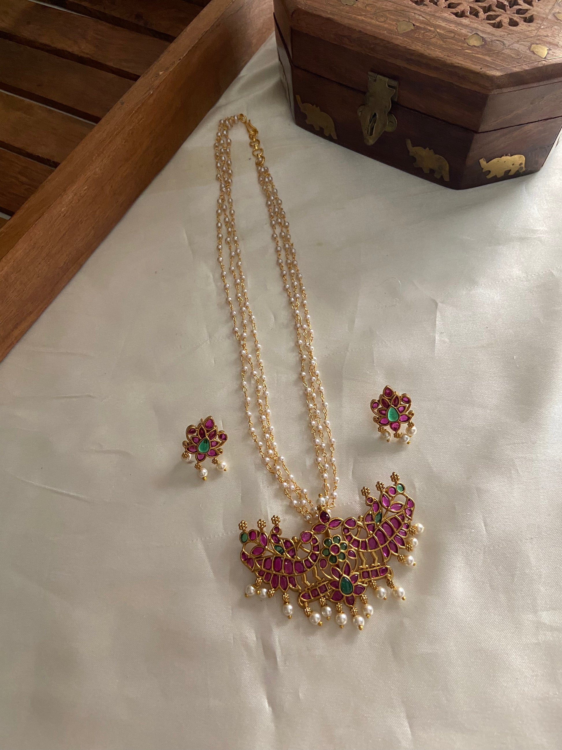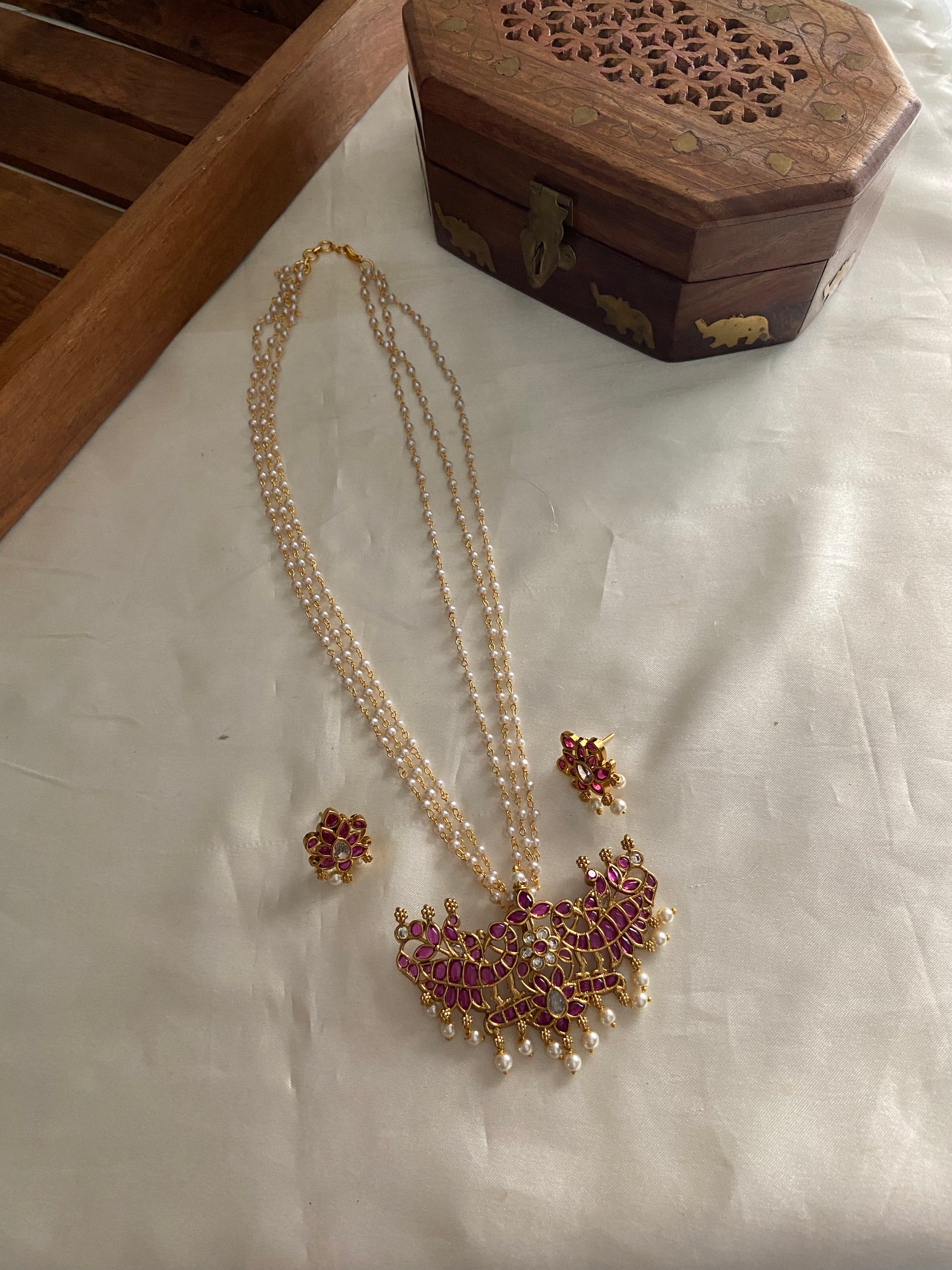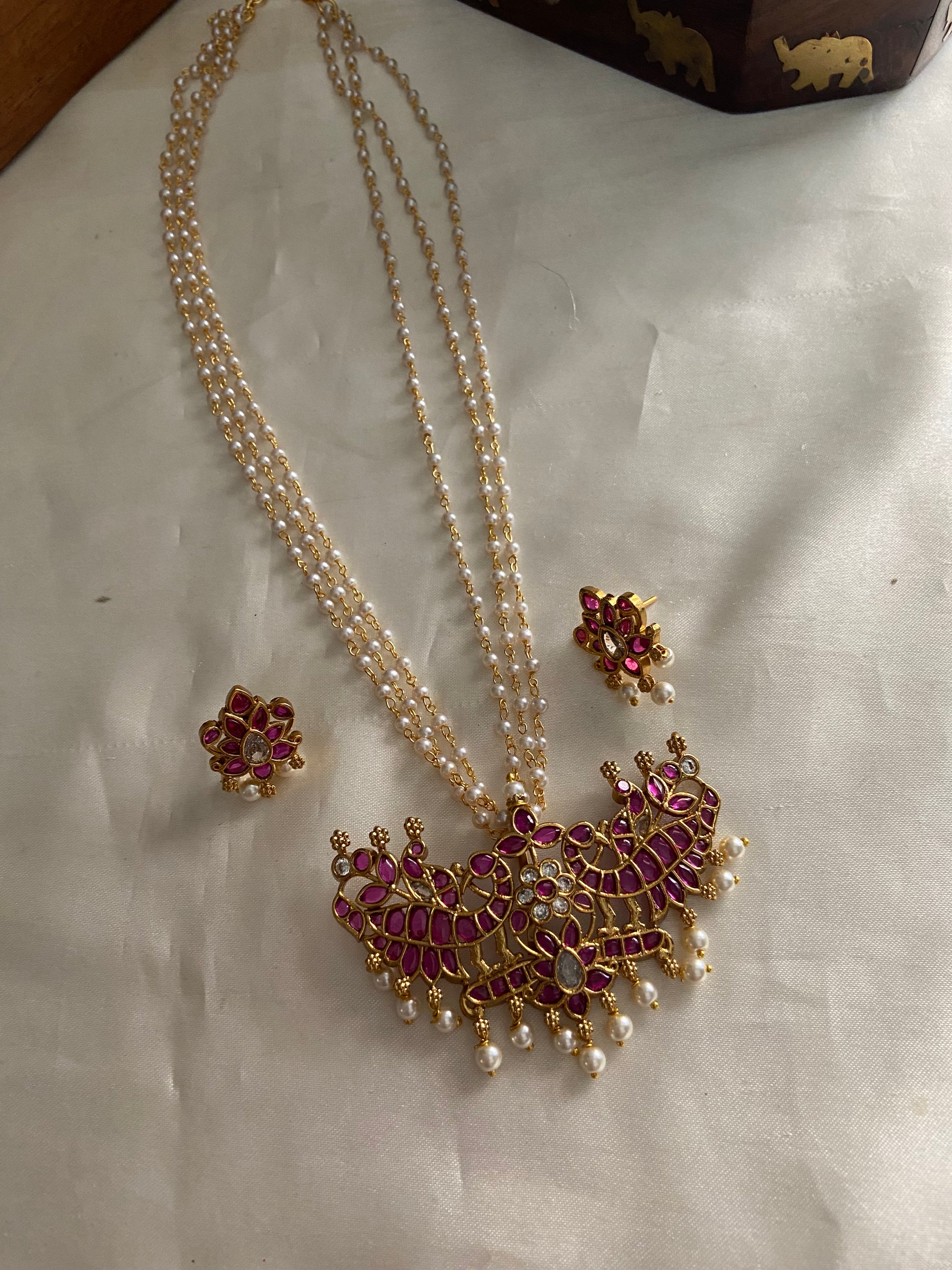 Enhance your style with our stunning Pearls chain with kemp pendant, paired perfectly with matching earrings. Crafted with high-quality stones & beads, this set combines timeless elegance with a modern touch. Ideal for special occasions or adding a touch of glamour to your look.