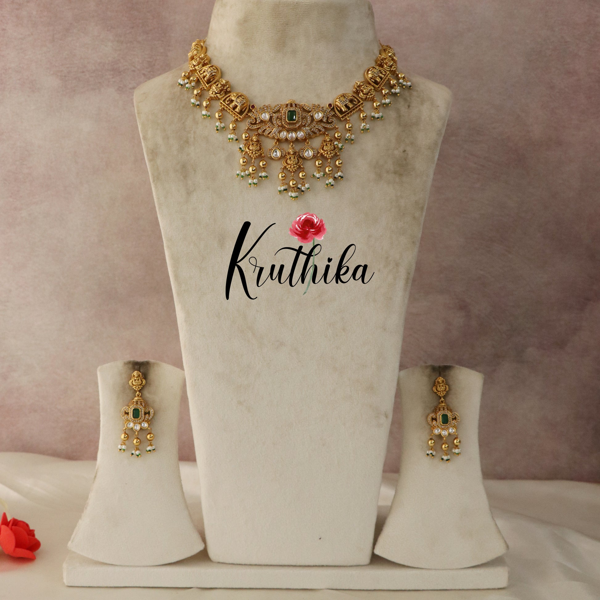 Premium Antique Lakshmi Elephants Necklace NC1341