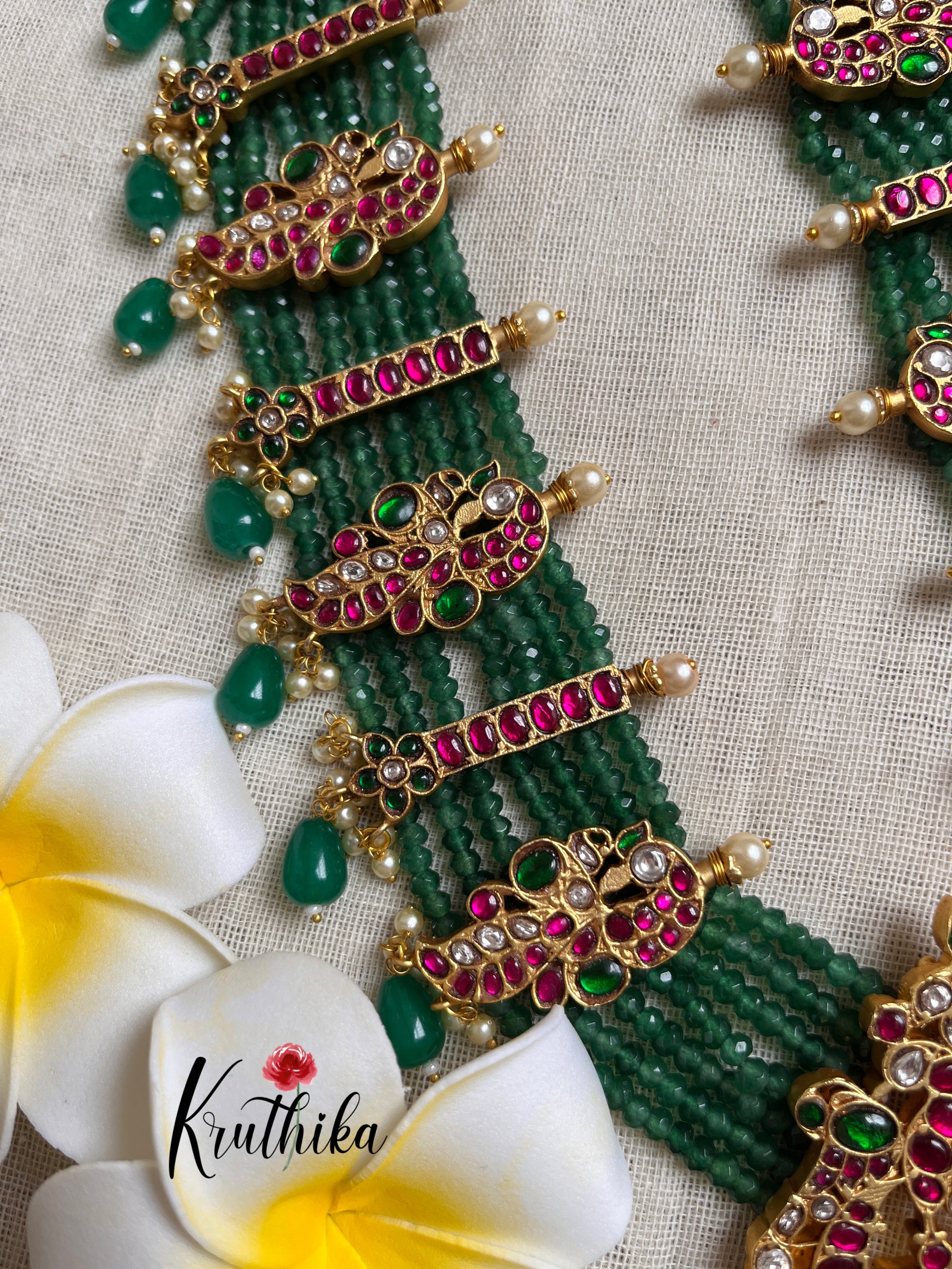 Enhance your style with our stunning Premium Jadau multi layer green beads Haaram, paired perfectly with matching earrings. Crafted with high-quality stones & beads, this set combines timeless elegance with a modern touch. Ideal for special occasions or adding a touch of glamour to your look.
