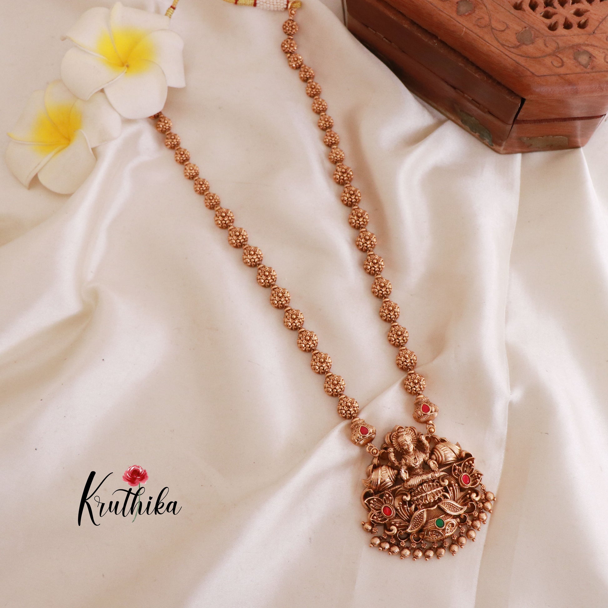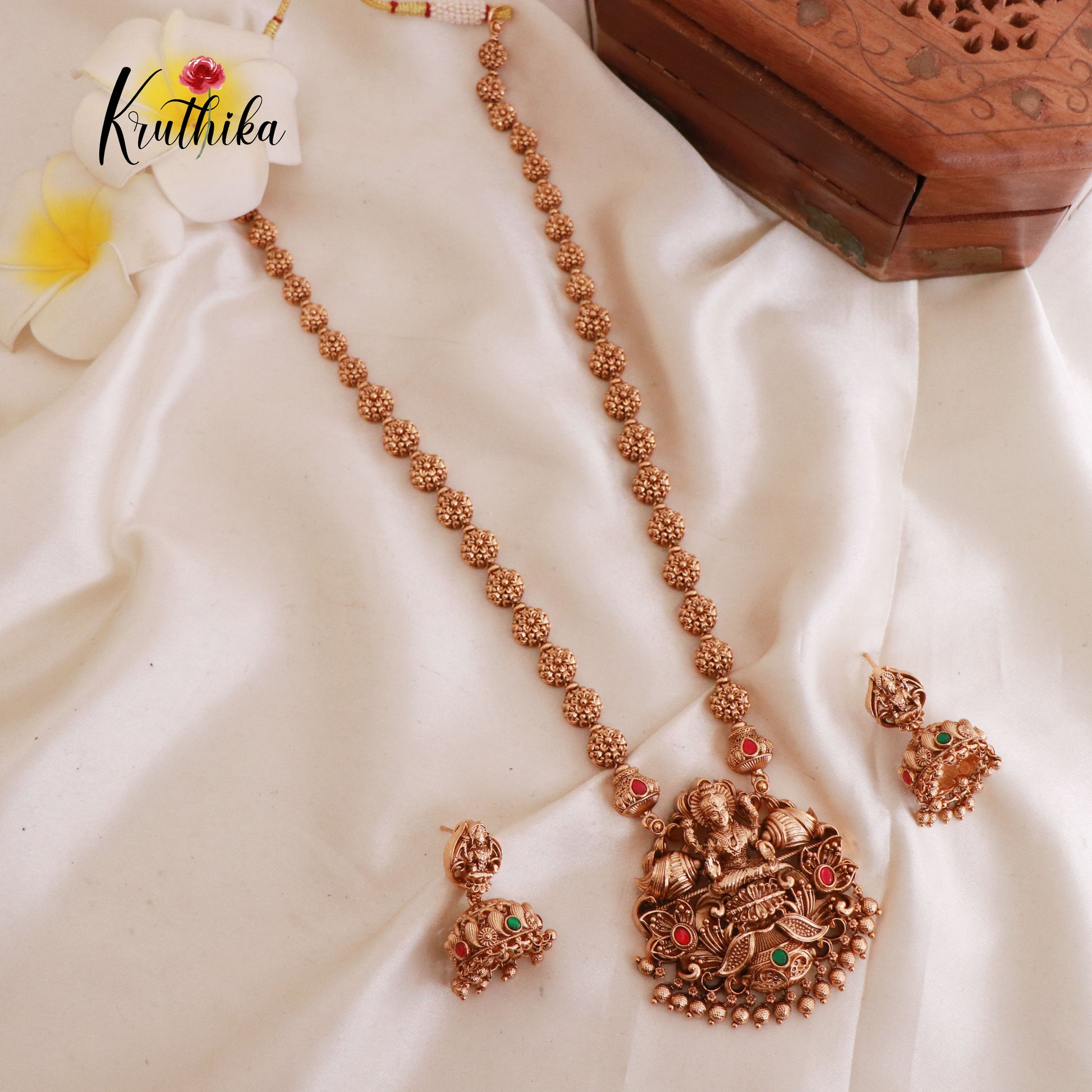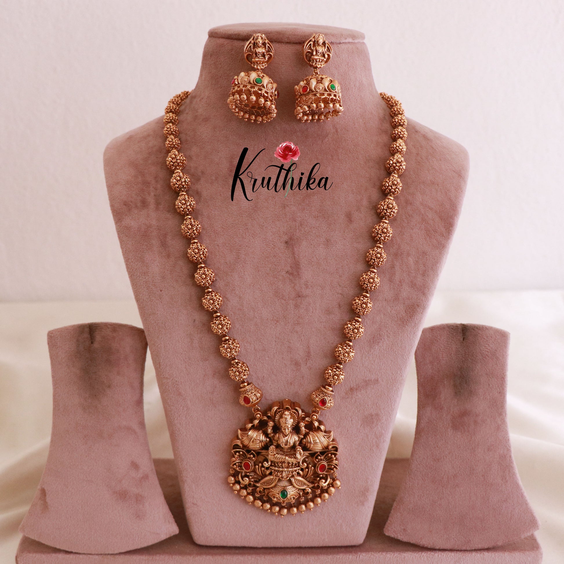 Enhance your style with our stunning, Premium Lakshmi Balls Jadau Haaram . Crafted with high-quality stones & beads, this set combines timeless elegance with a modern touch. Ideal for special occasions or adding a touch of glamour to your look.