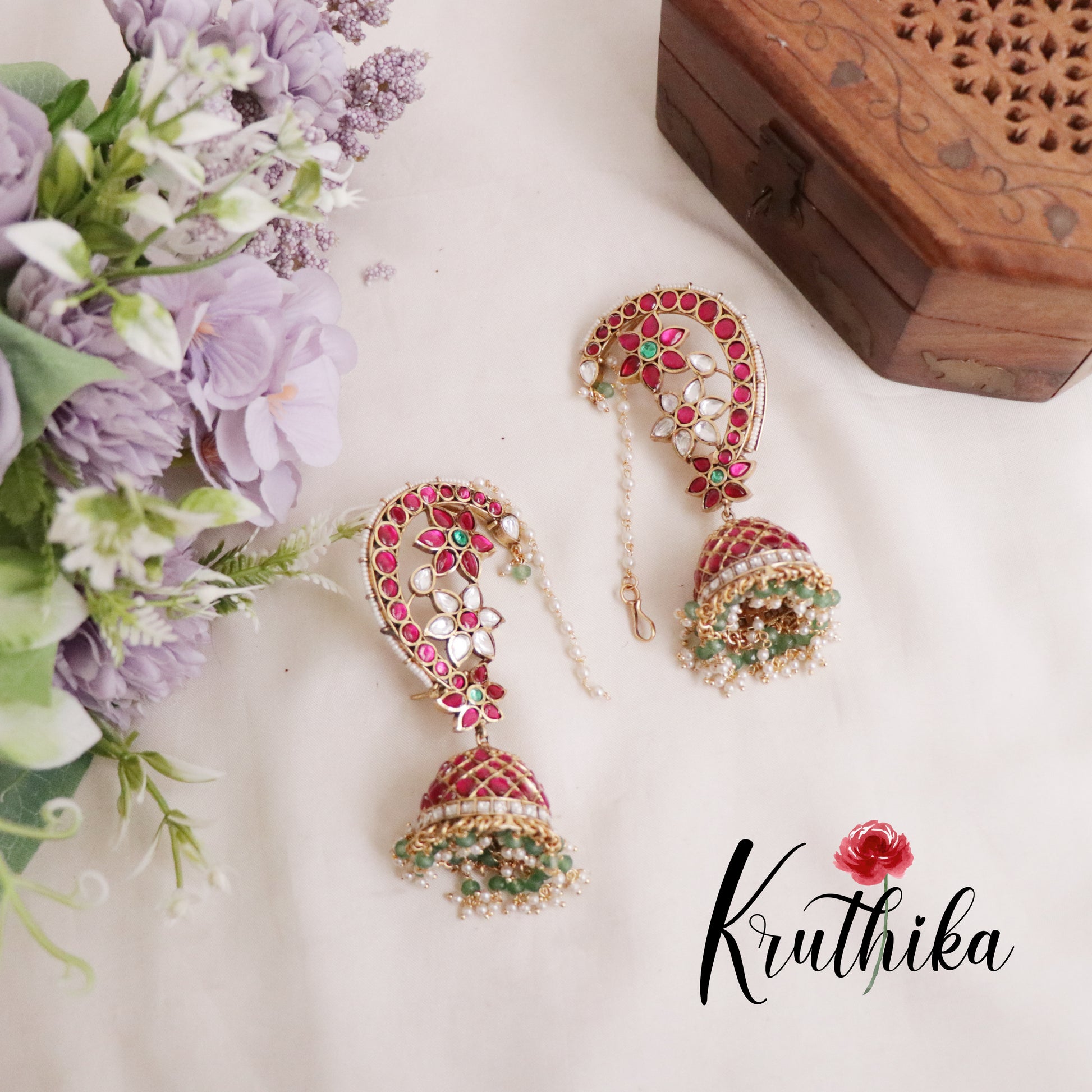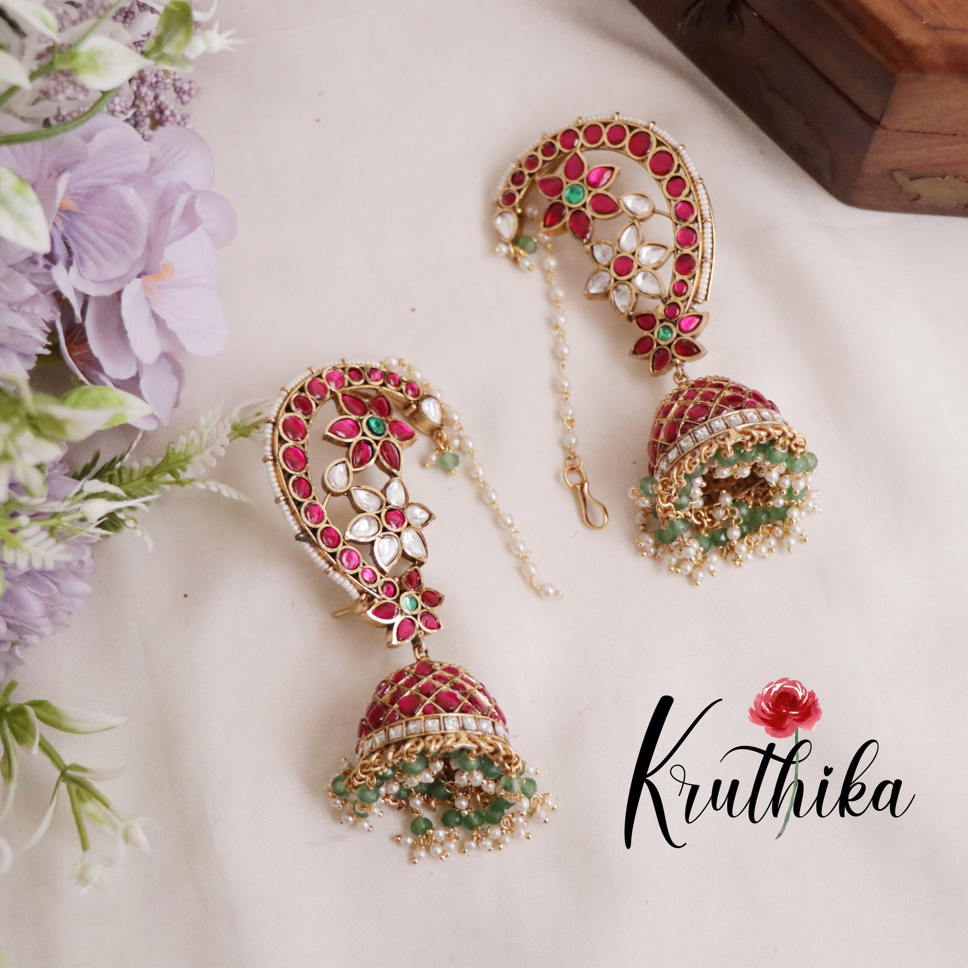 Elevate your elegance with our stunning, Grand Jadau Peacock Jhumkas earcuff , designed to capture the essence of