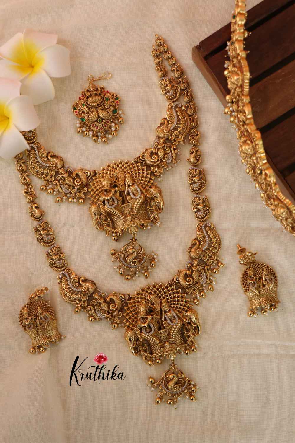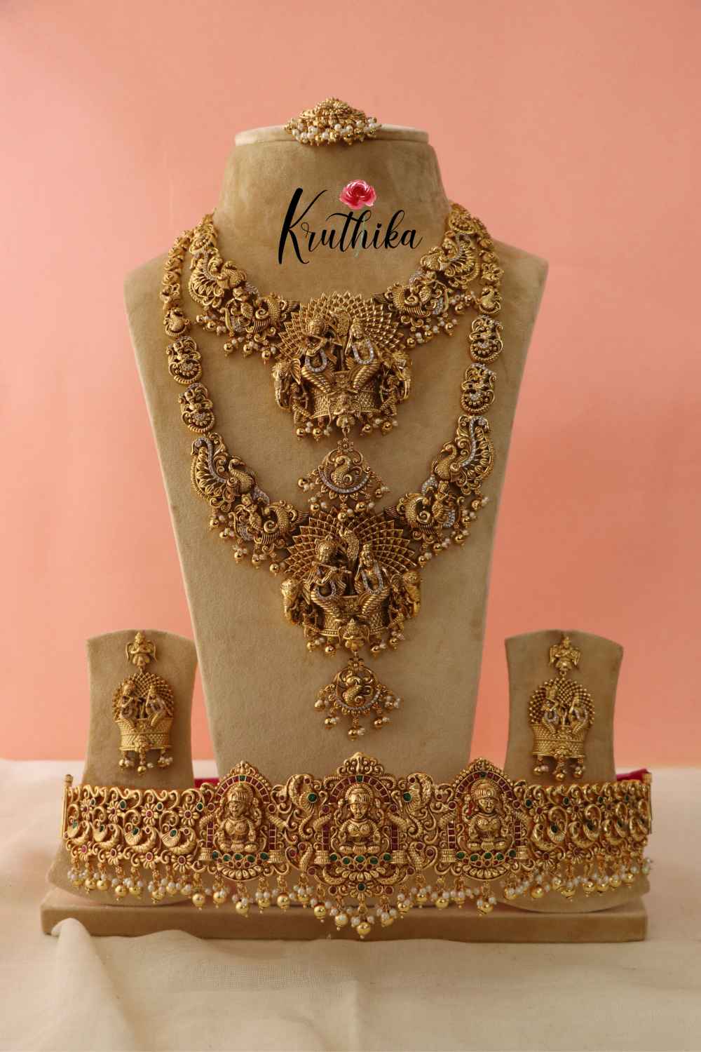 Enhance your style with our stunning, Premium Nagas Radha Krishna Haaram and Hip Belt, paired perfectly with matching earrings. Crafted with high-quality stones & beads, this set combines timeless elegance with a modern touch. Ideal for special occasions or adding a touch of glamour to your look.