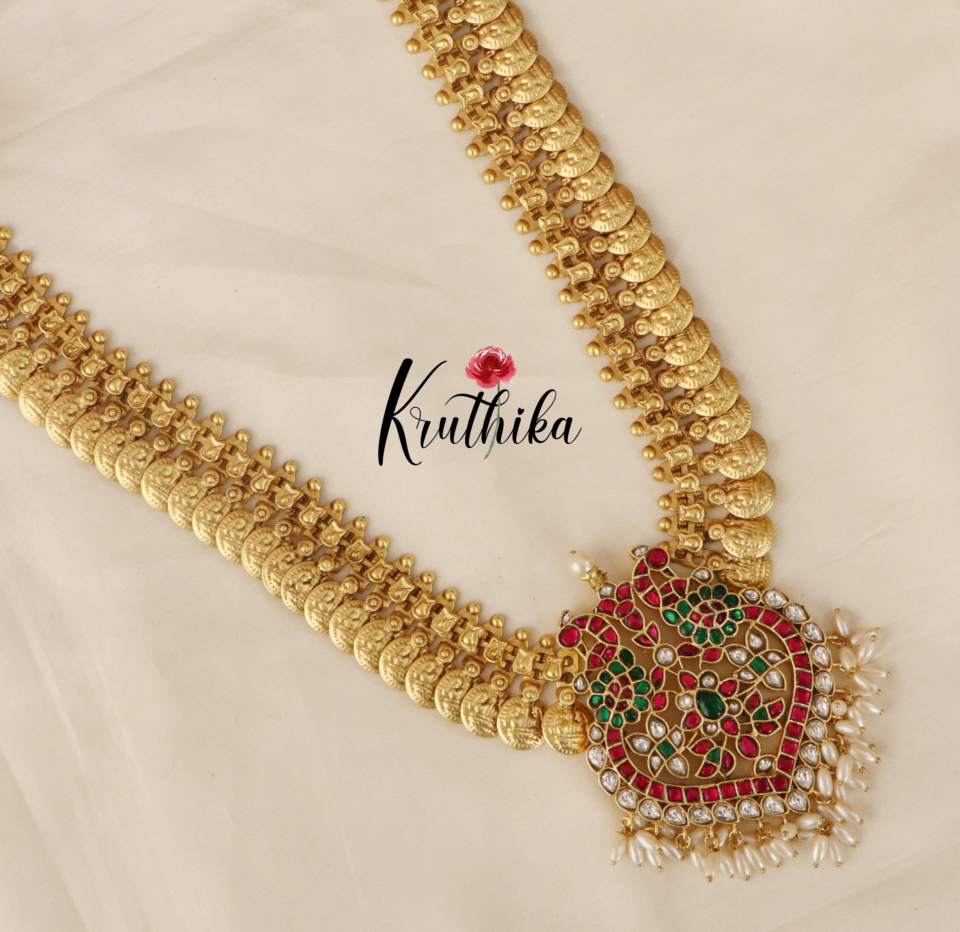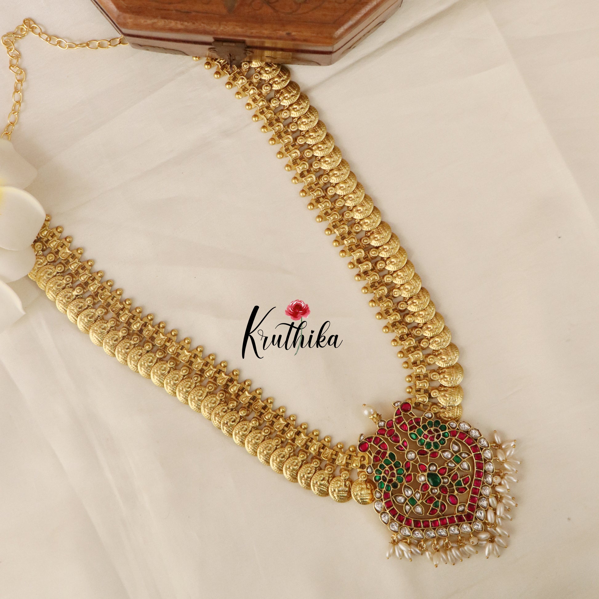Enhance your style with our stunning, Premium Peacock Jadau Kasu Haaram . Crafted with high-quality stones & beads, this set combines timeless elegance with a modern touch. Ideal for special occasions or adding a touch of glamour to your look.