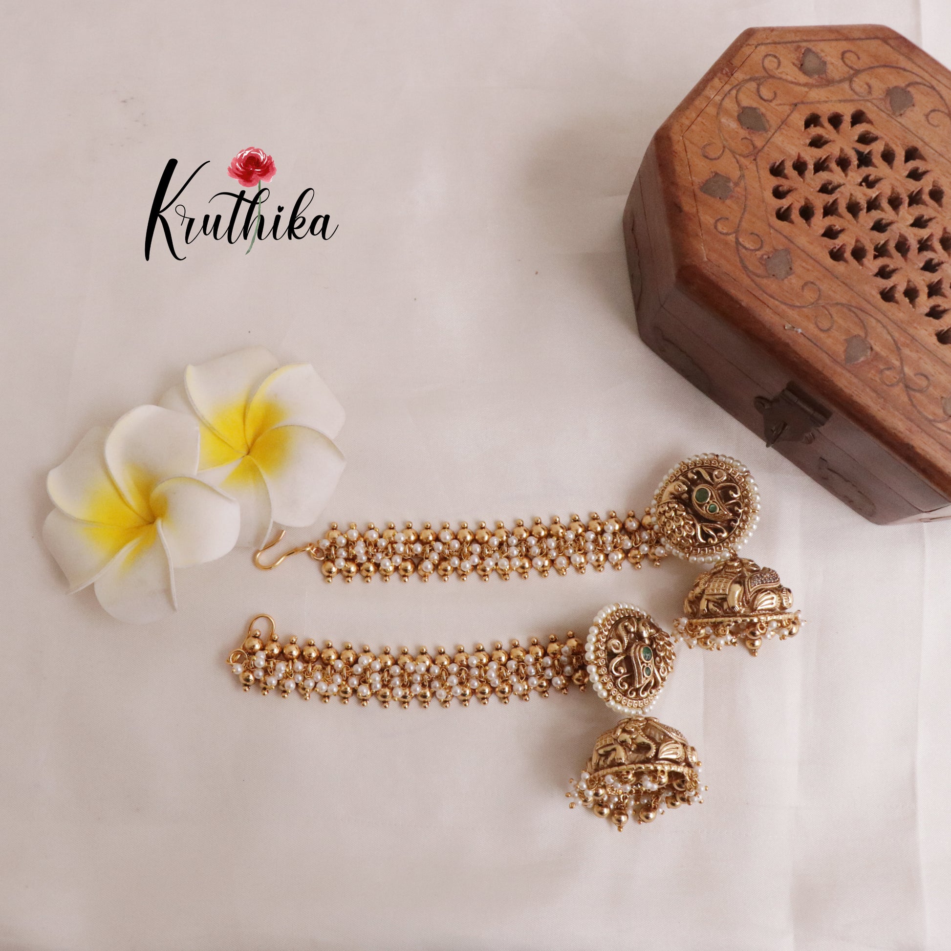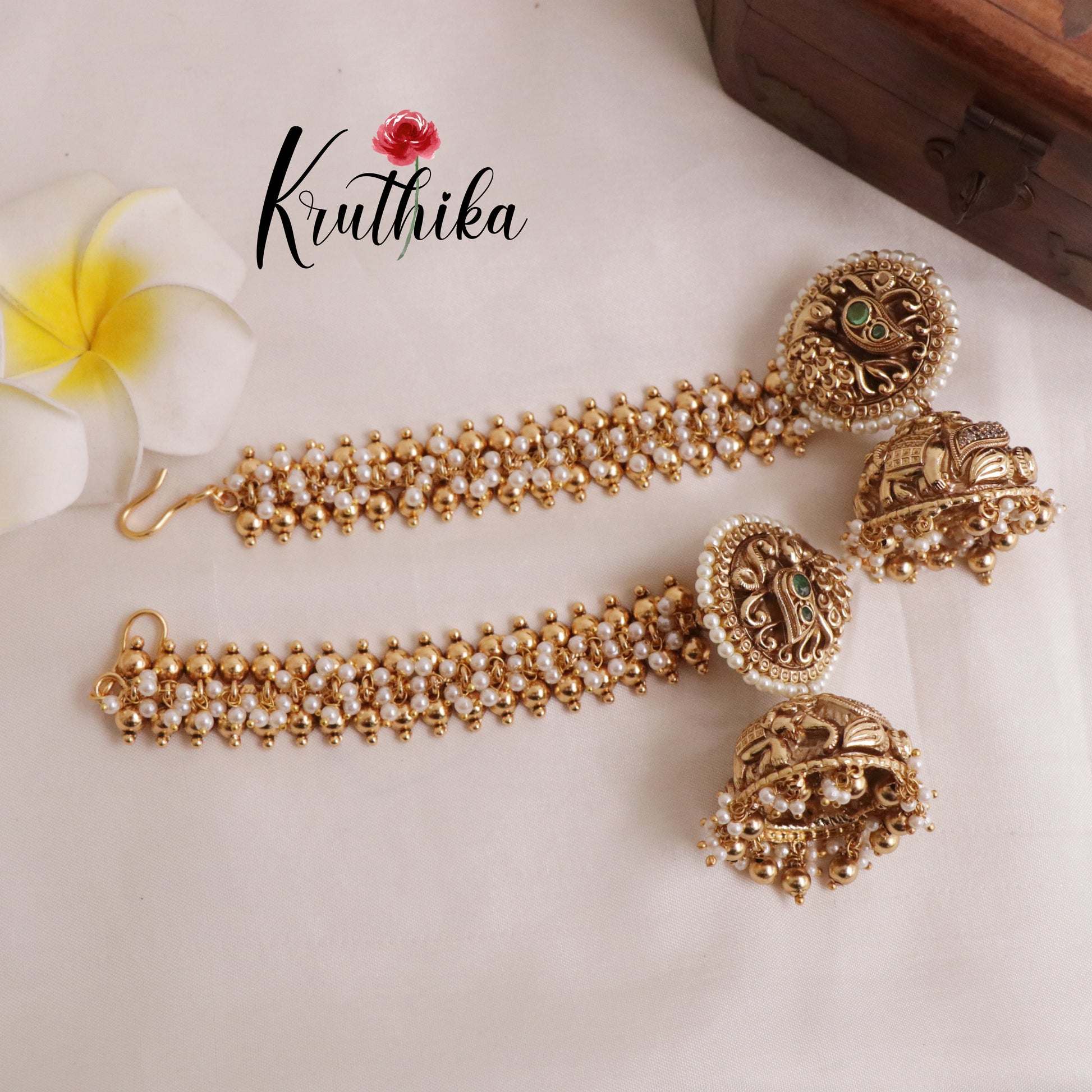 Premium Peacock Jhumkas with cluster pearl Maatilu (earchains) E517