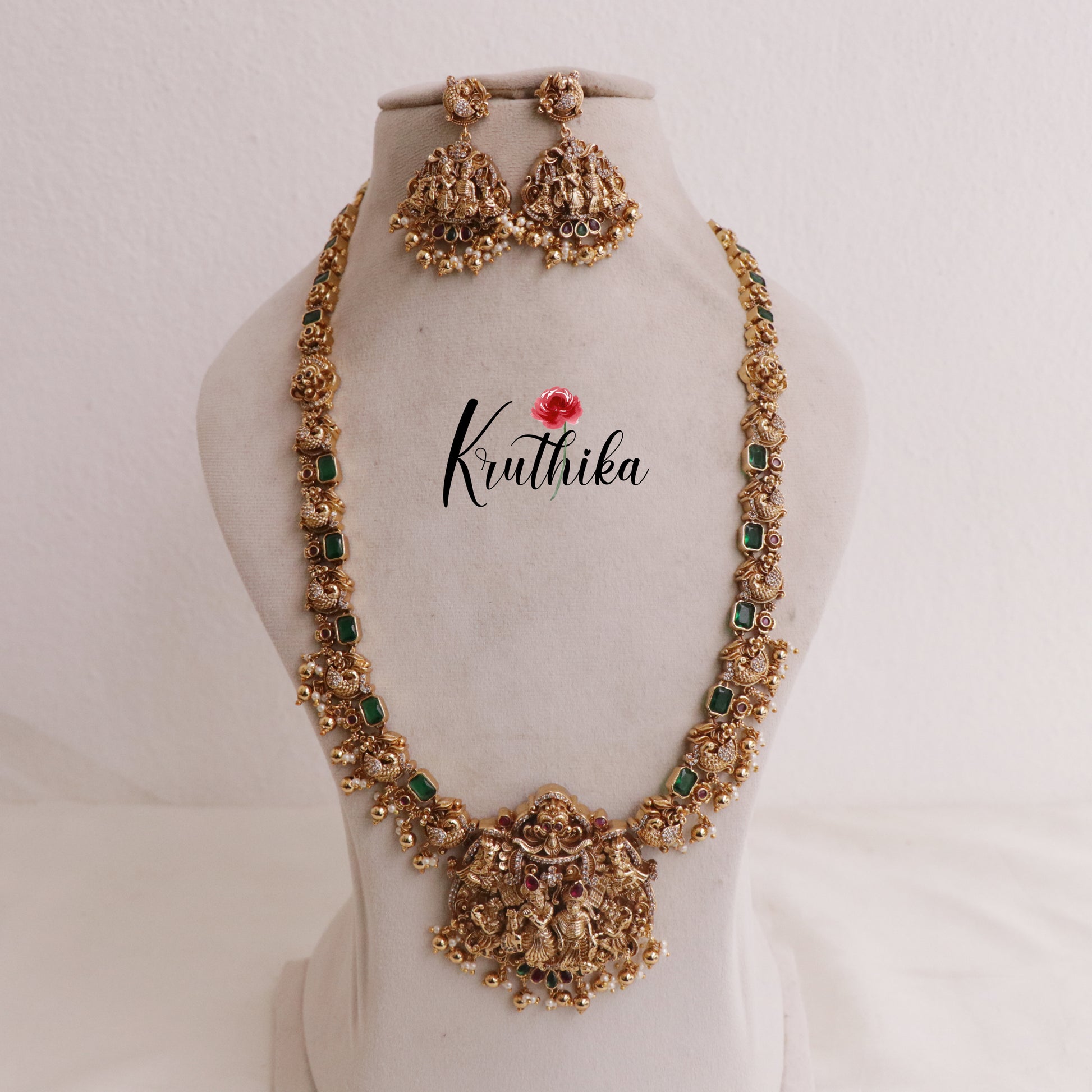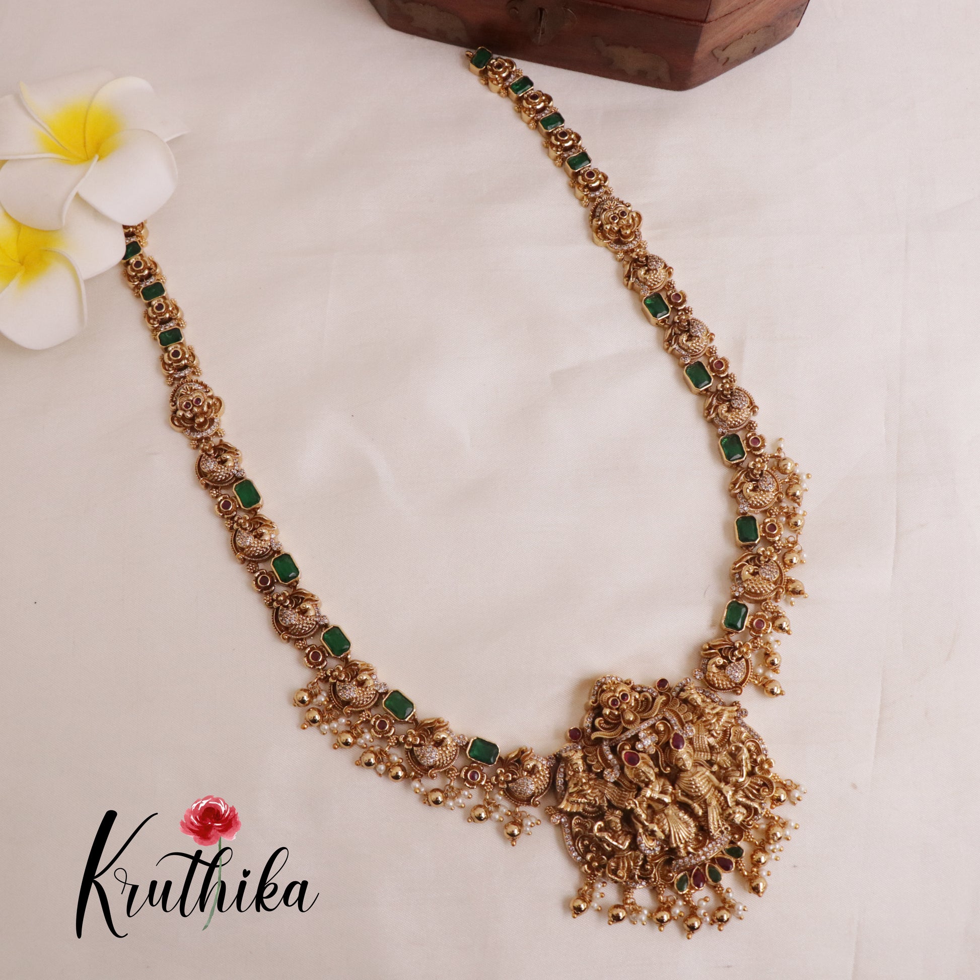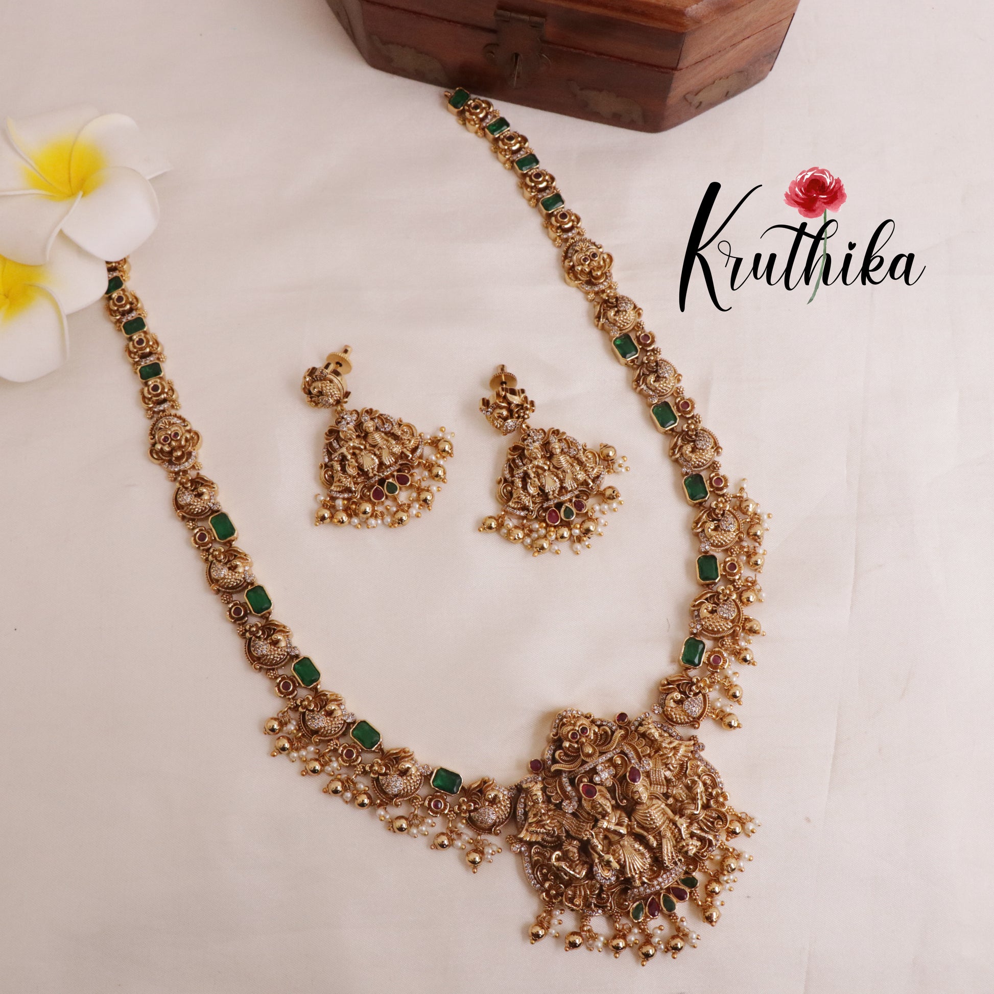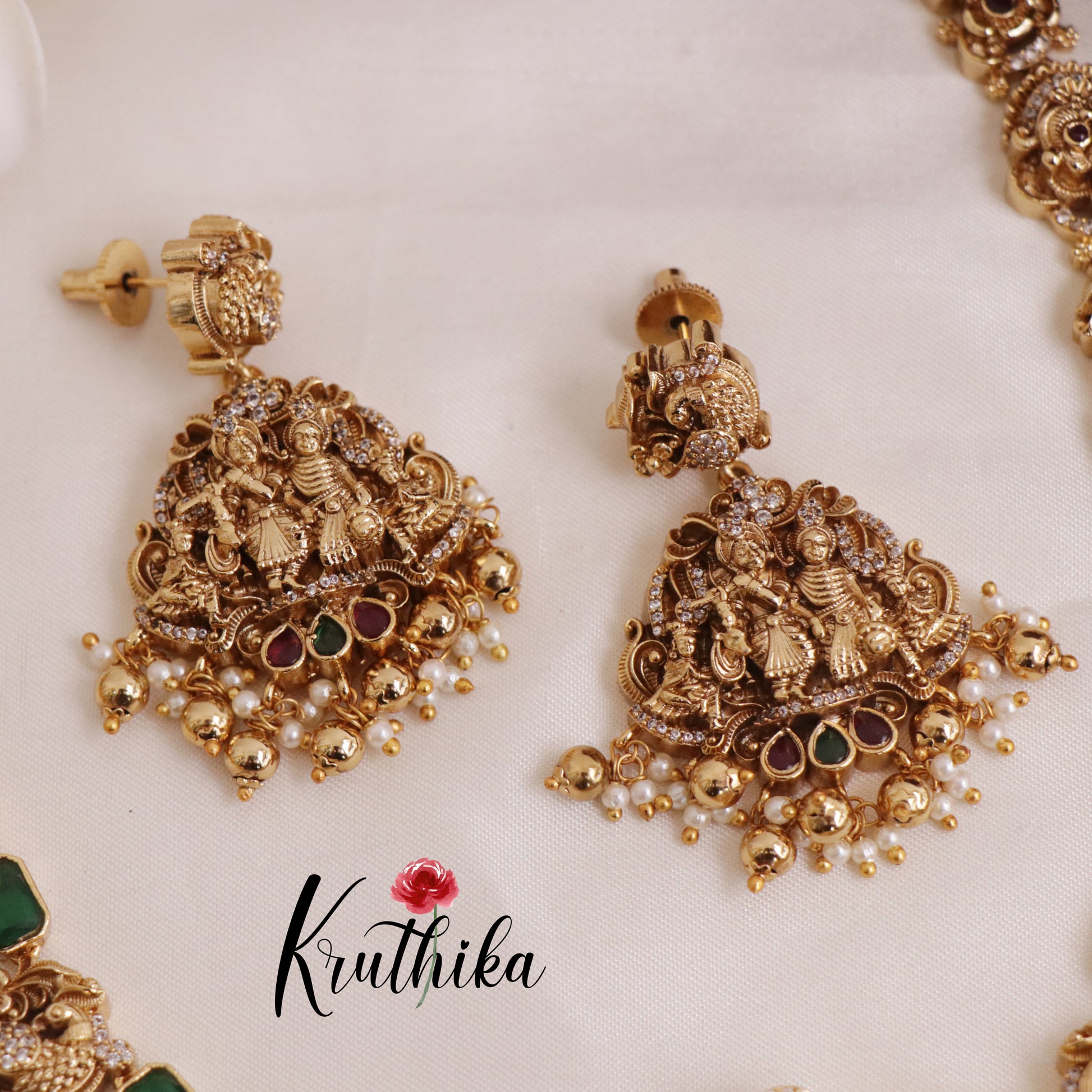 Enhance your style with our stunning, Premium Radha Krishna Haaram paired perfectly with matching earrings. Crafted with high-quality stones & beads, this set combines timeless elegance with a modern touch. Ideal for special occasions or adding a touch of glamour to your look.