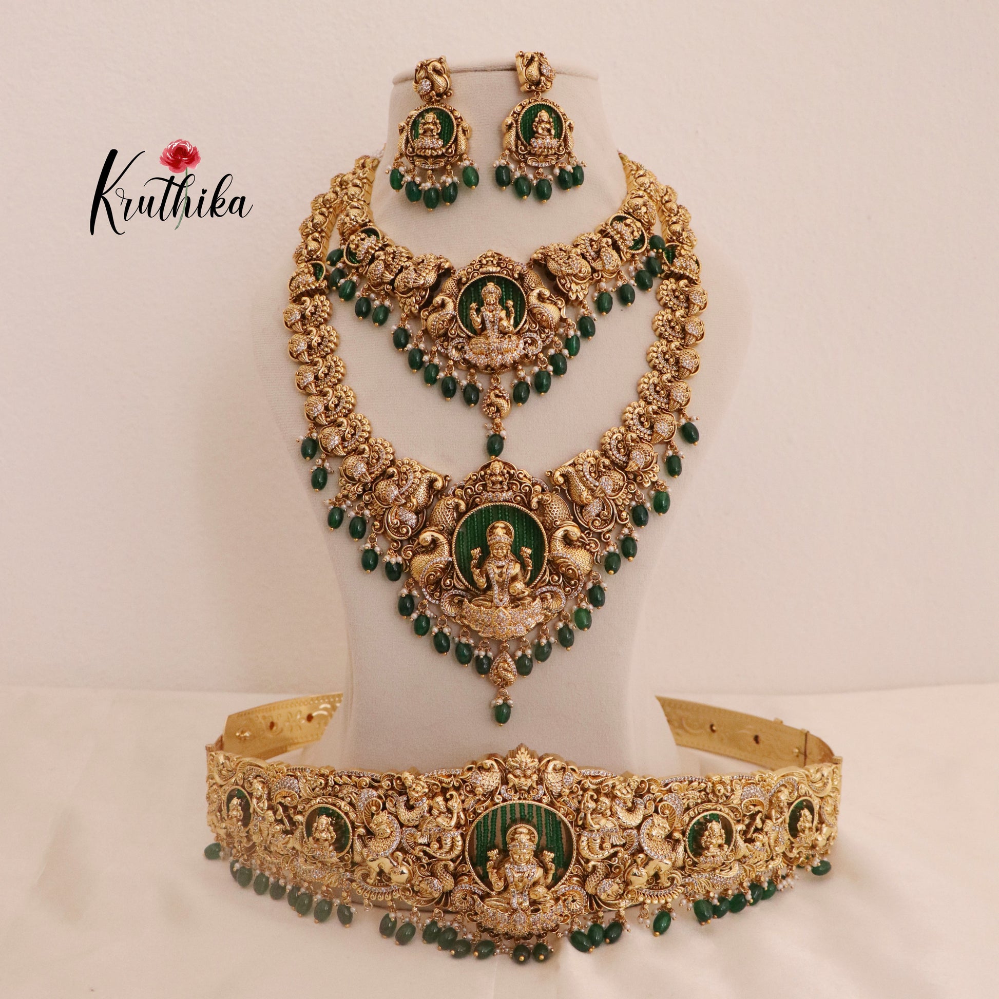 Premium Temple Nakshi Peacock Bridal set BS035 - Green beads