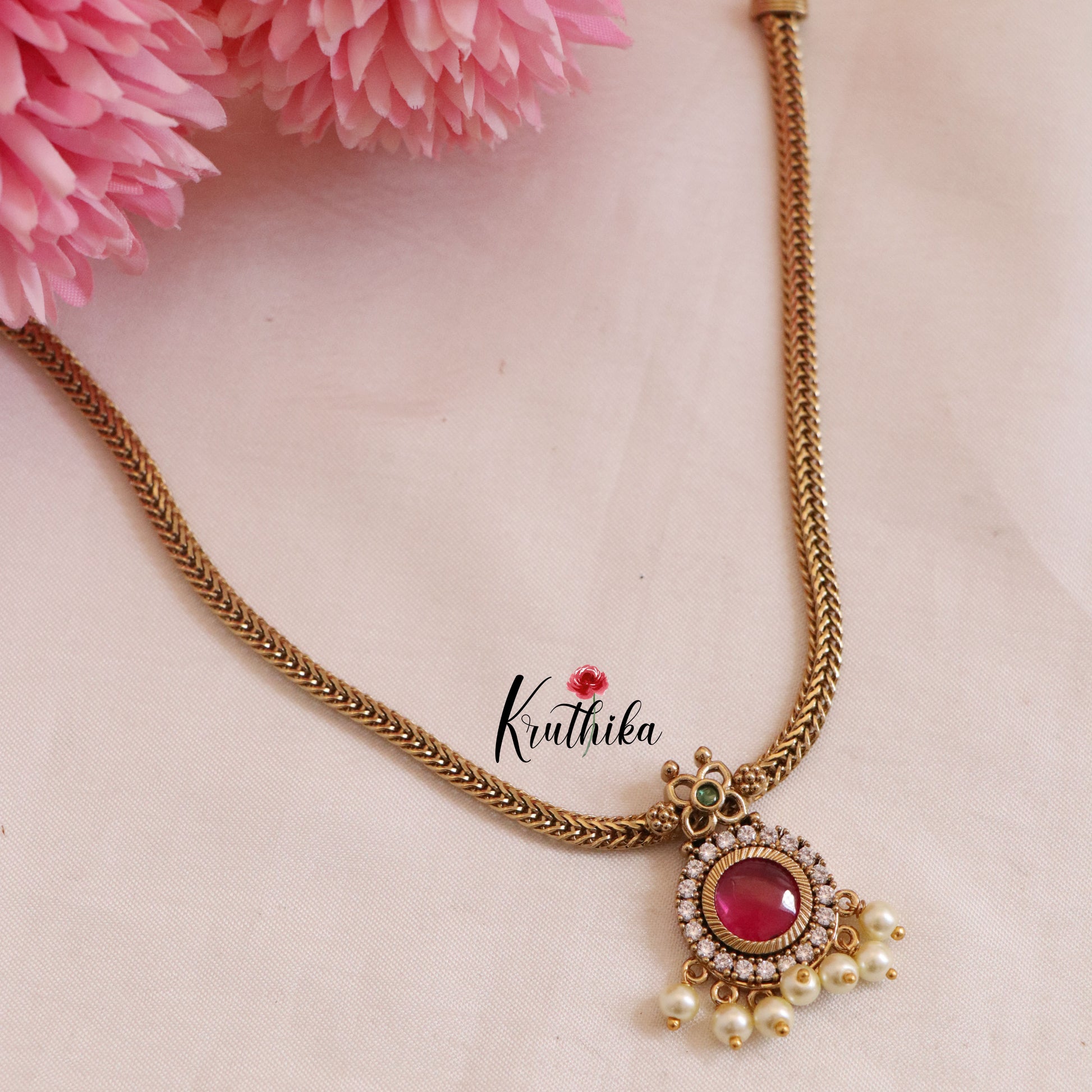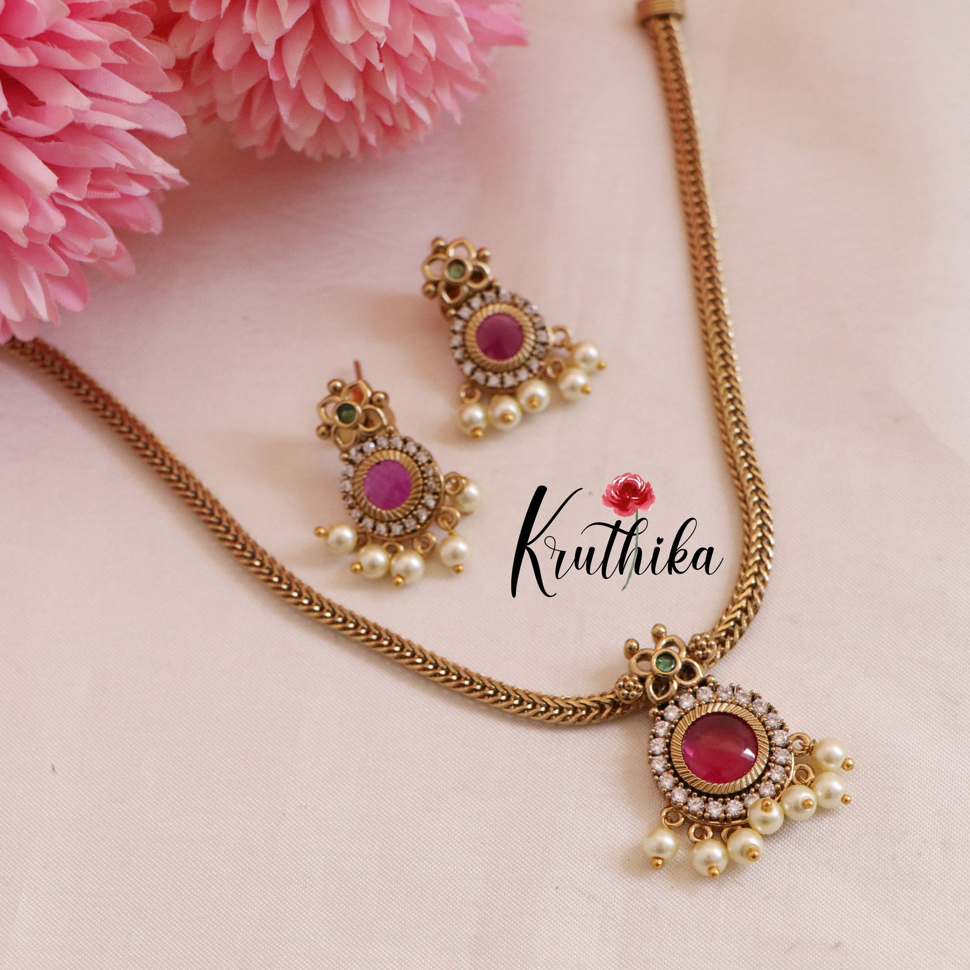 Enhance your style with our stunning, Pretty AD/Victorian Flower Chain Set-Ruby. Crafted with high-quality stones & beads, this set combines timeless elegance with a modern touch. Ideal for special occasions or adding a touch of glamour to your look.