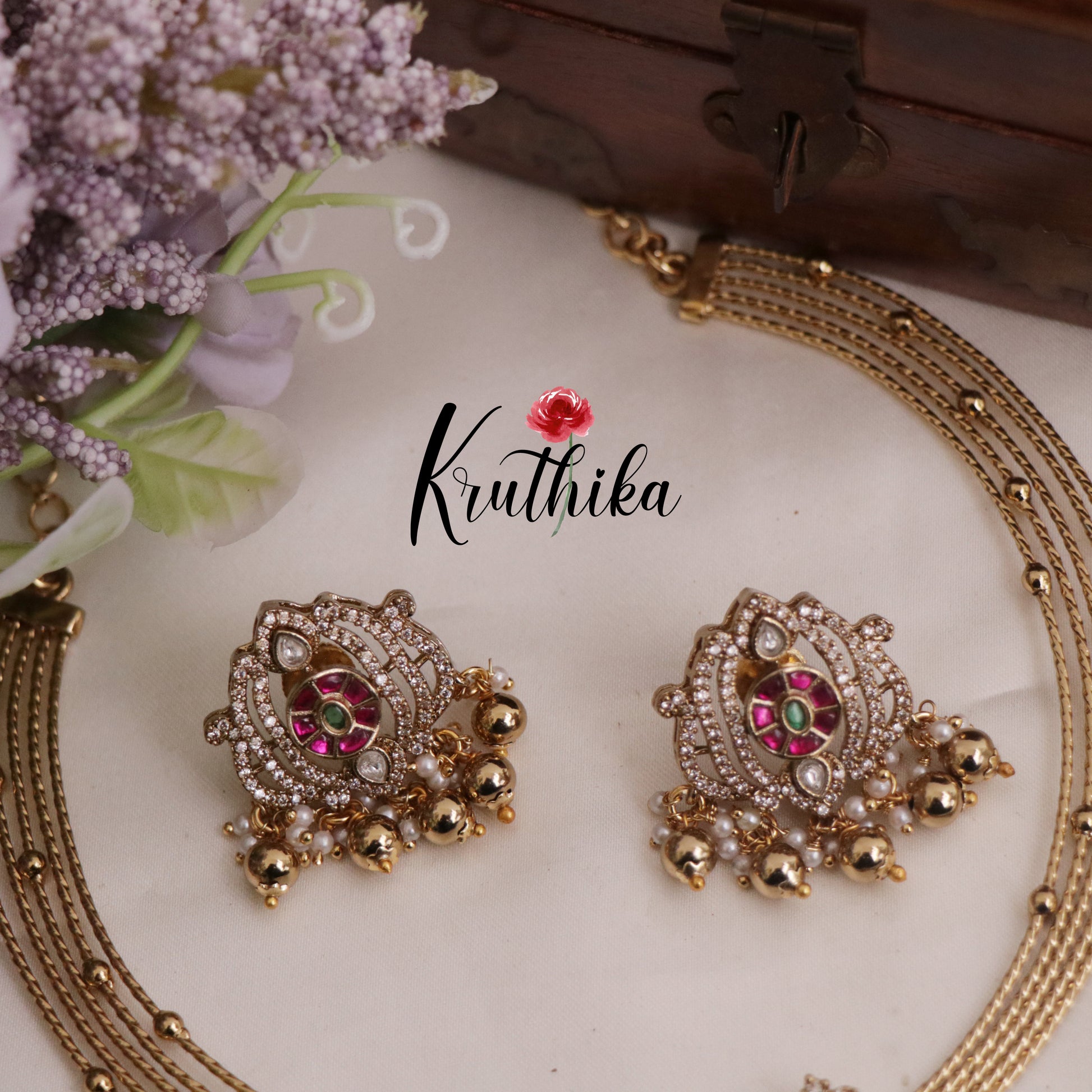 Pretty AD Victorian Jadau Hasli Necklace with Beads Drops NC2344 (Available in 2 Colours)