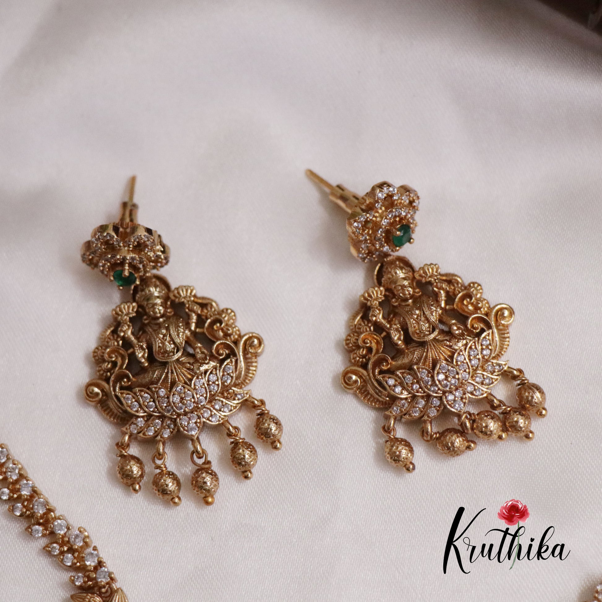 Enhance your style with our stunning Pretty CZ Laxmi Necklace with Golden Beads Drops paired perfectly with matching earrings. Crafted with high-quality stones & beads, this set combines timeless elegance with a modern touch. Ideal for special occasions or adding a touch of glamour to your look.