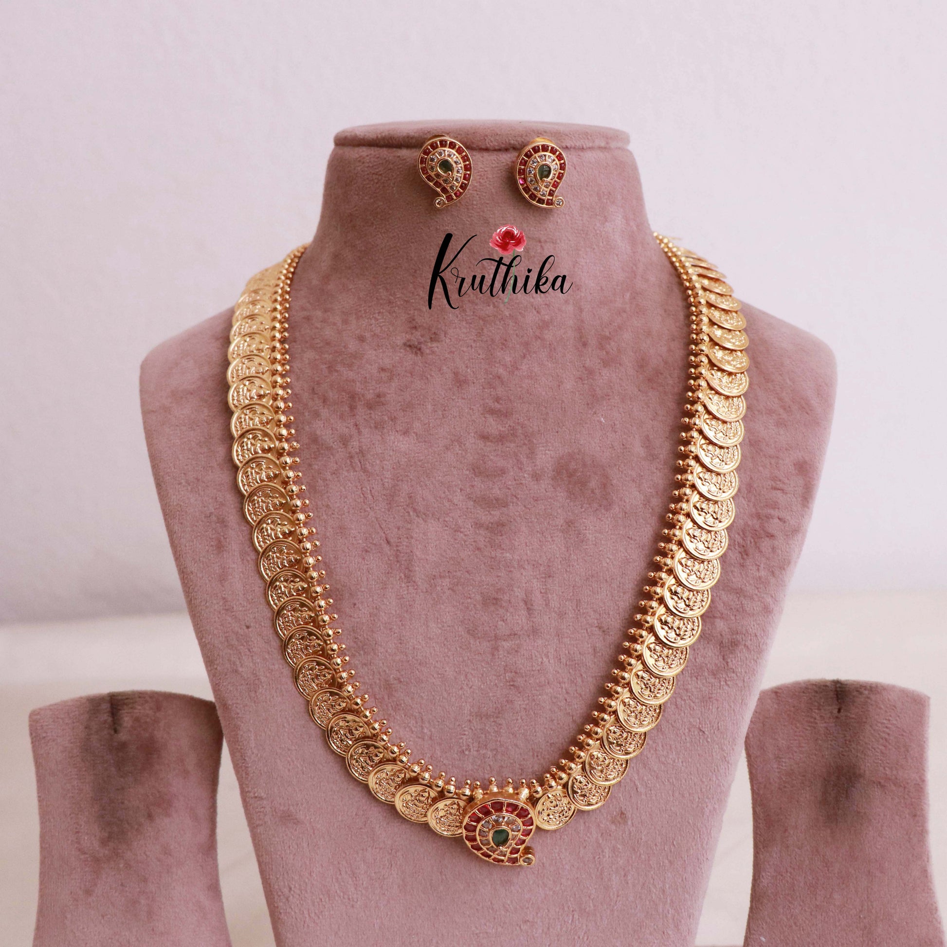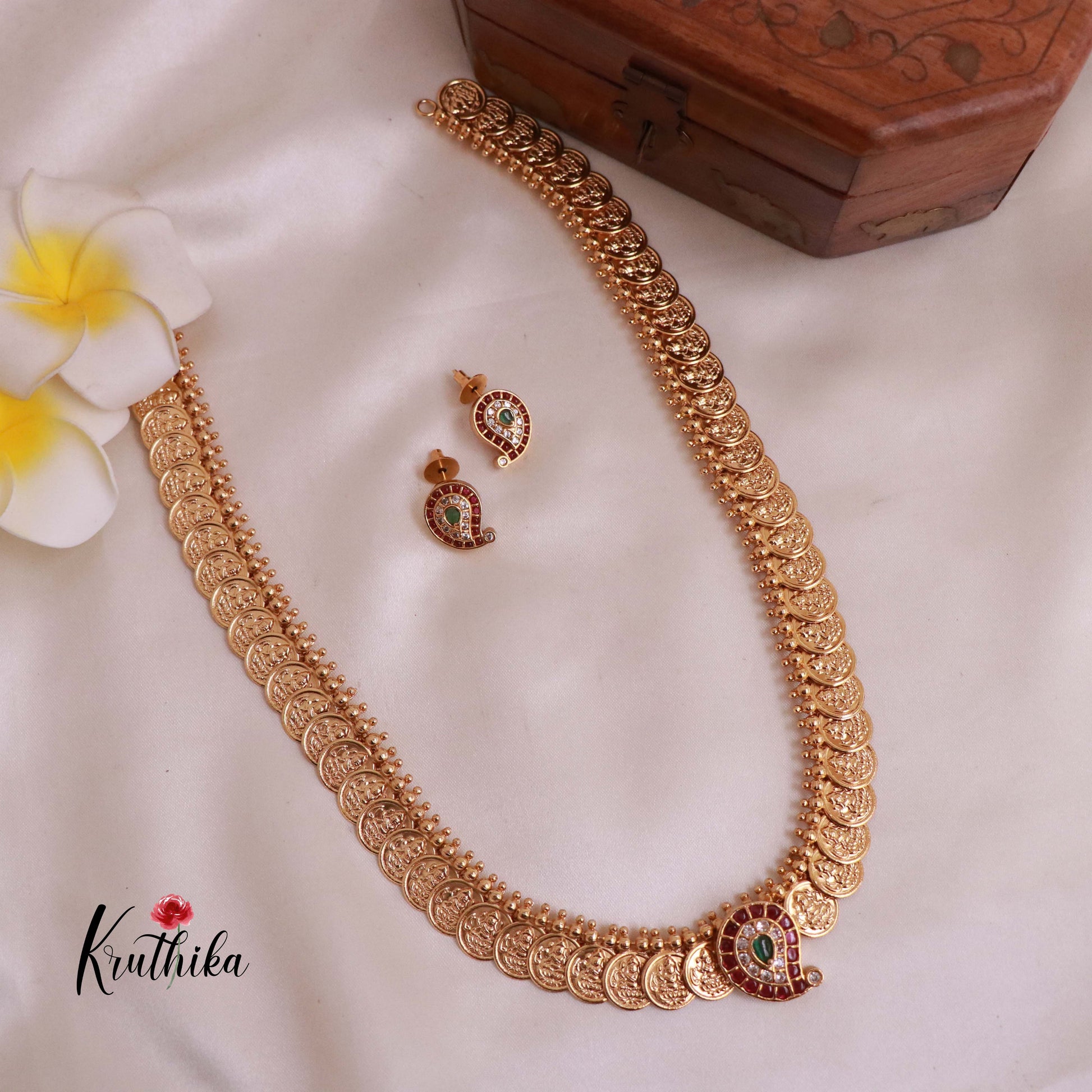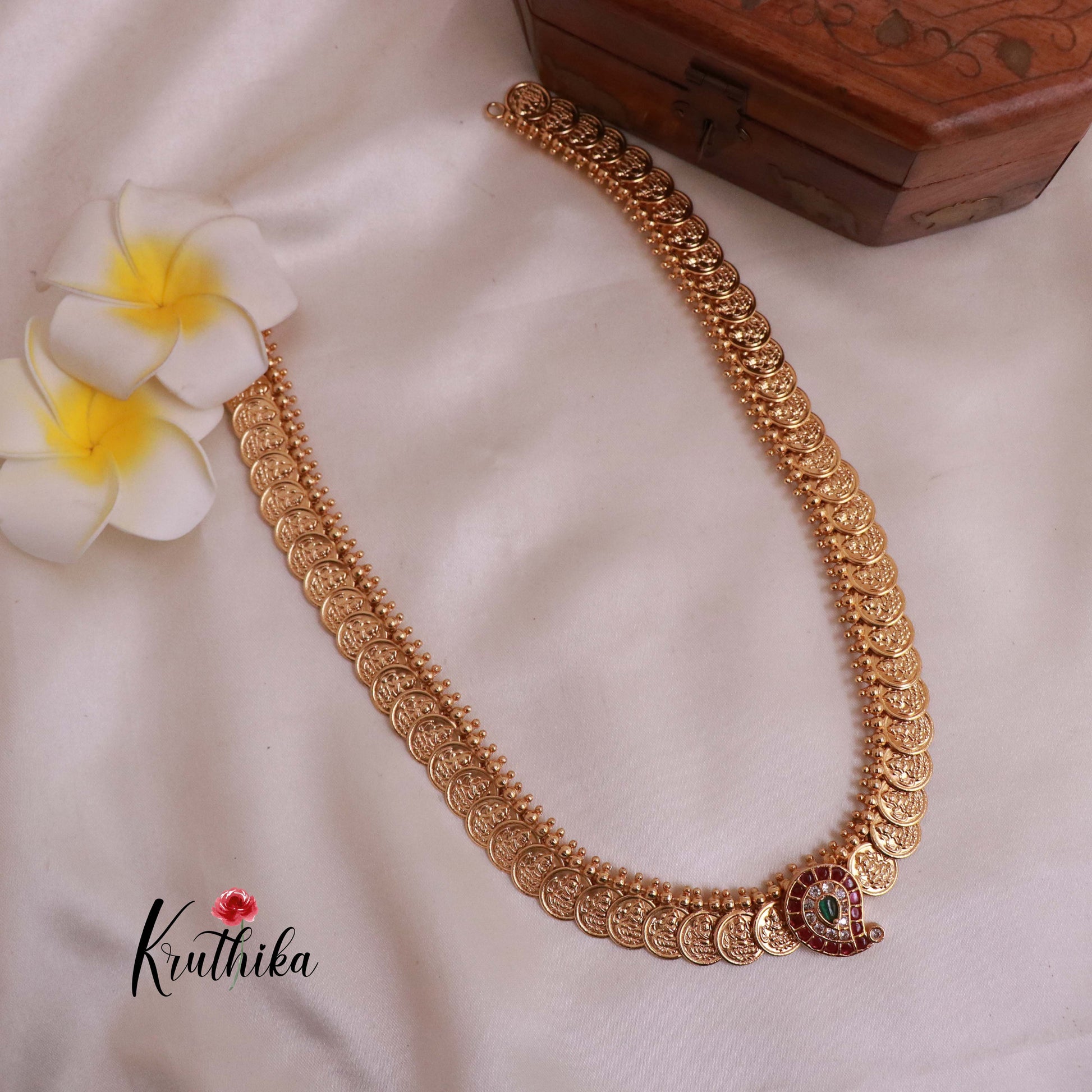 Enhance your style with our stunning, Pretty Kemp Kasu Haram . Crafted with high-quality stones & beads, this set combines timeless elegance with a modern touch. Ideal for special occasions or adding a touch of glamour to your look.