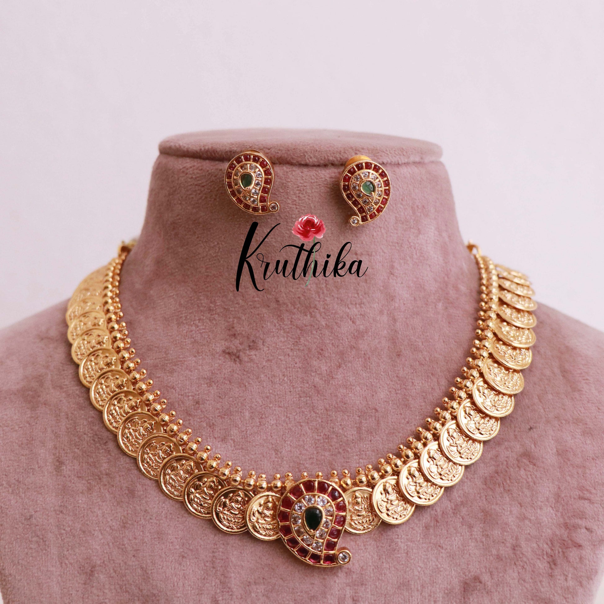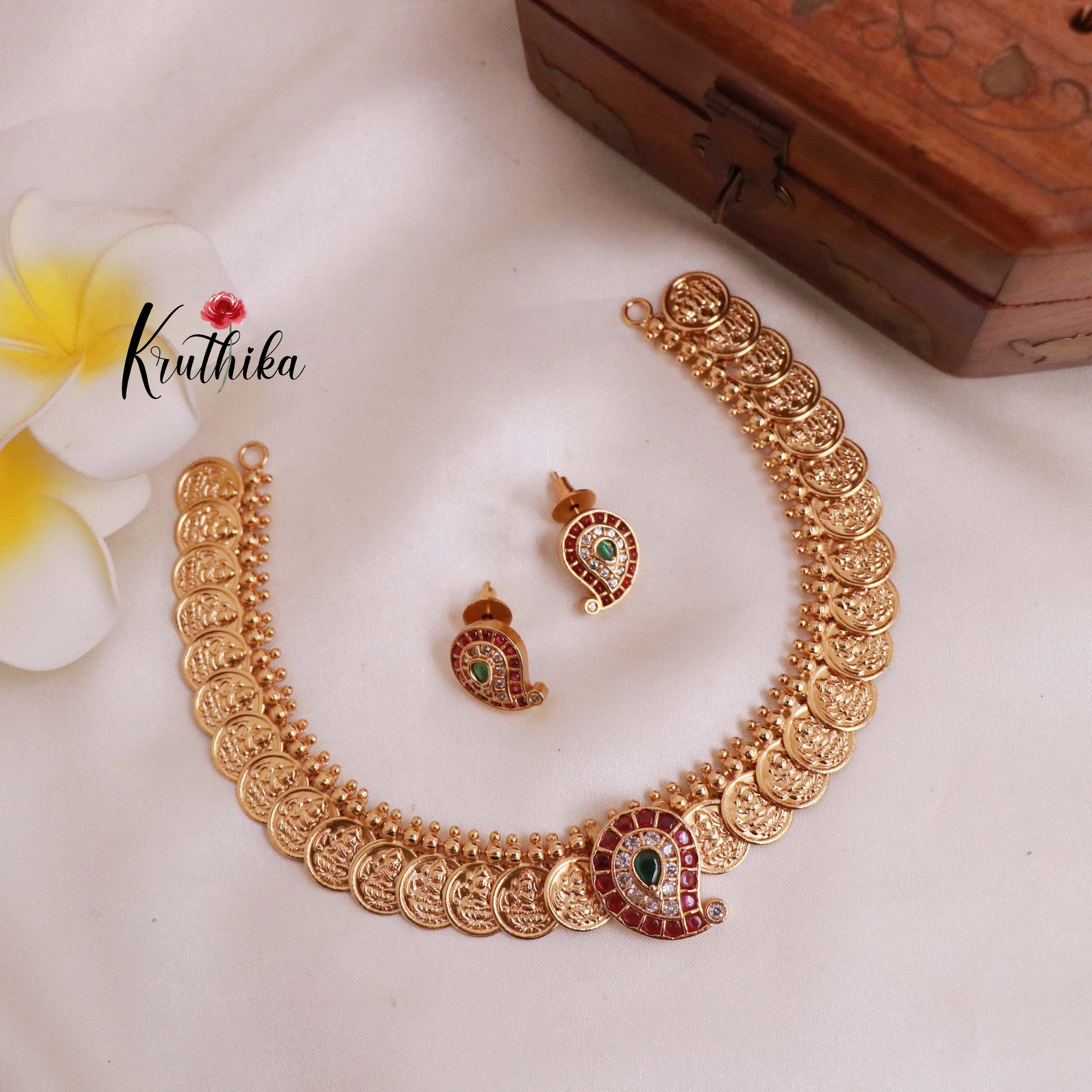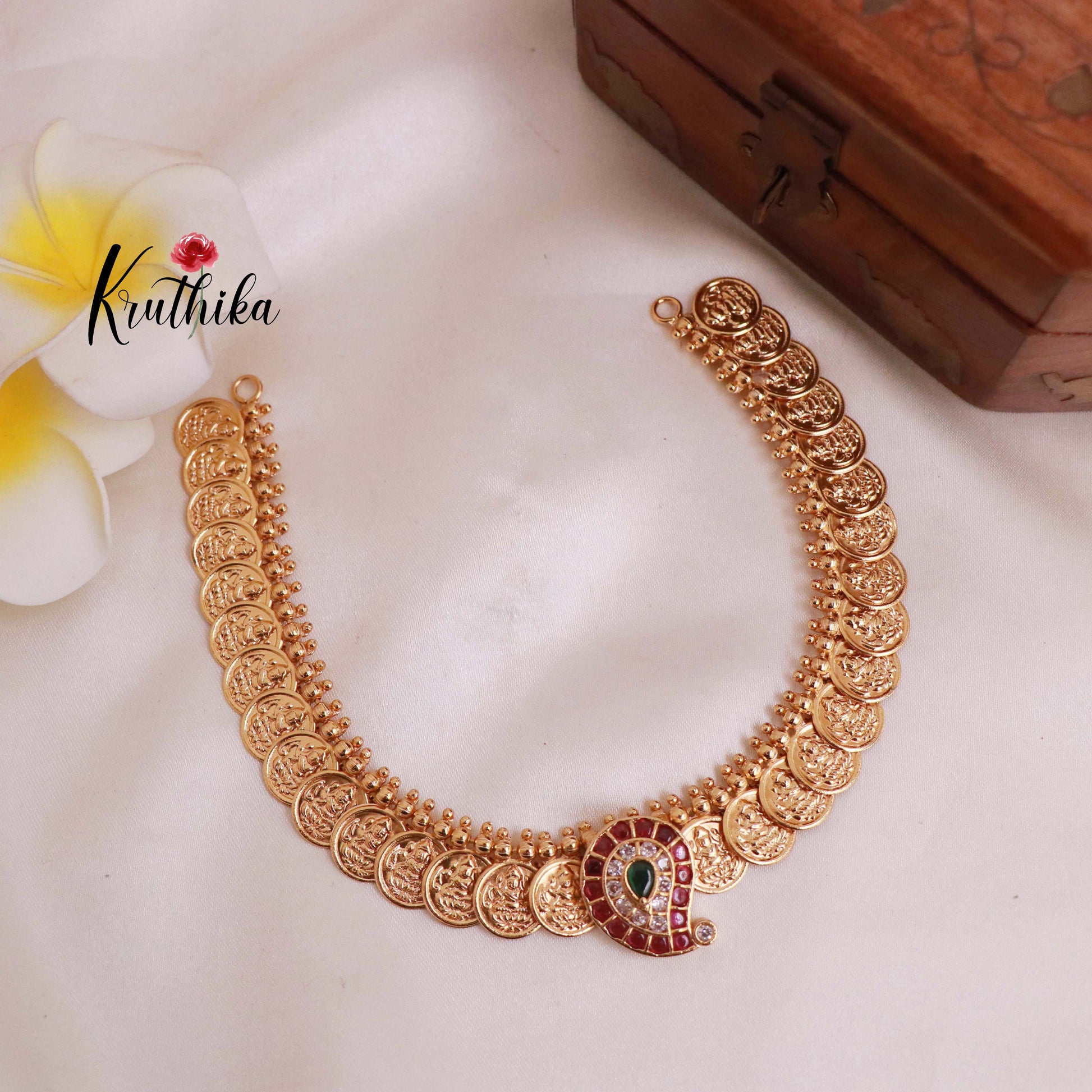 Enhance your style with our stunning, Pretty Kemp Kasu Haram. Crafted with high-quality stones & beads, this set combines timeless elegance with a modern touch. Ideal for special occasions or adding a touch of glamour to your look.