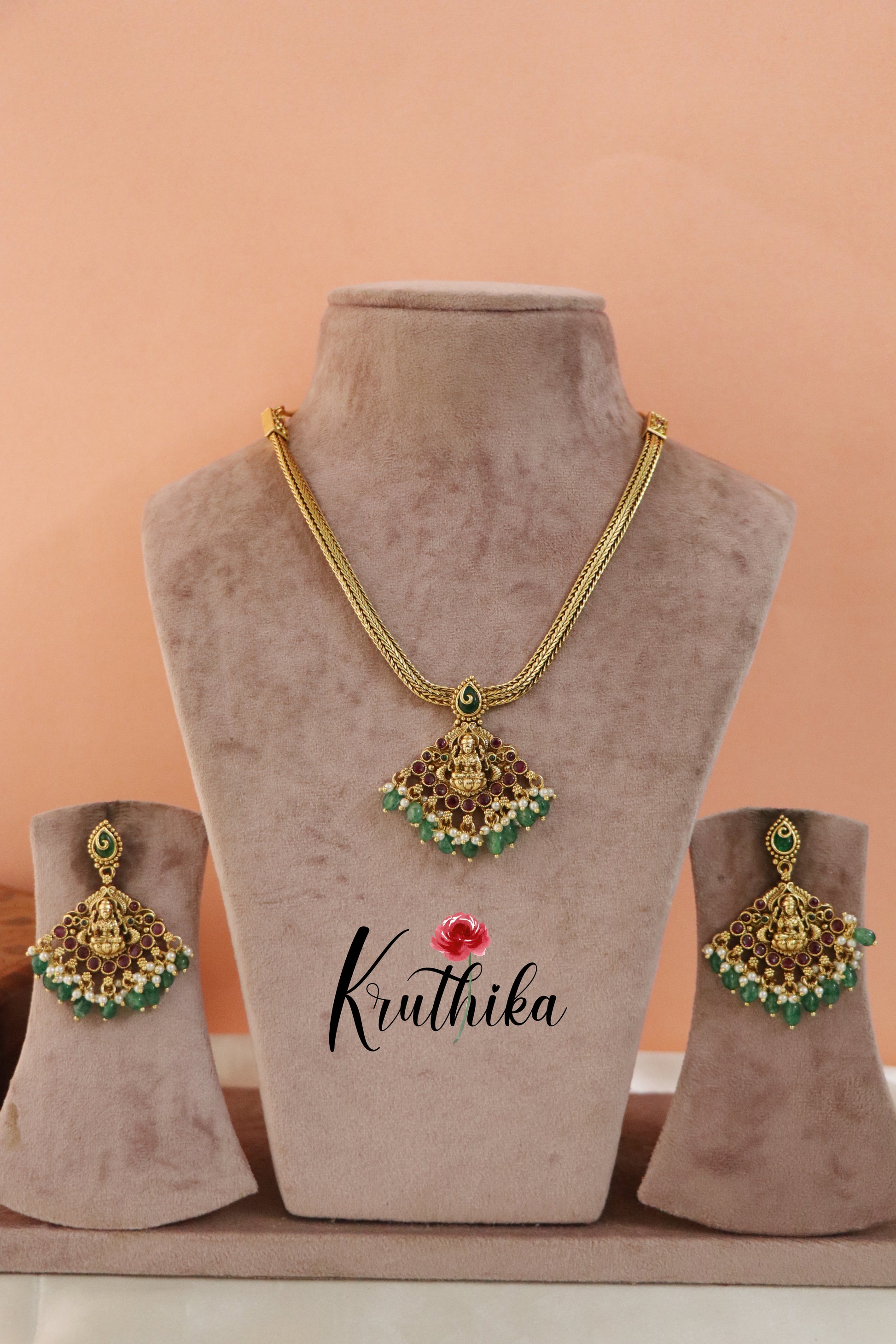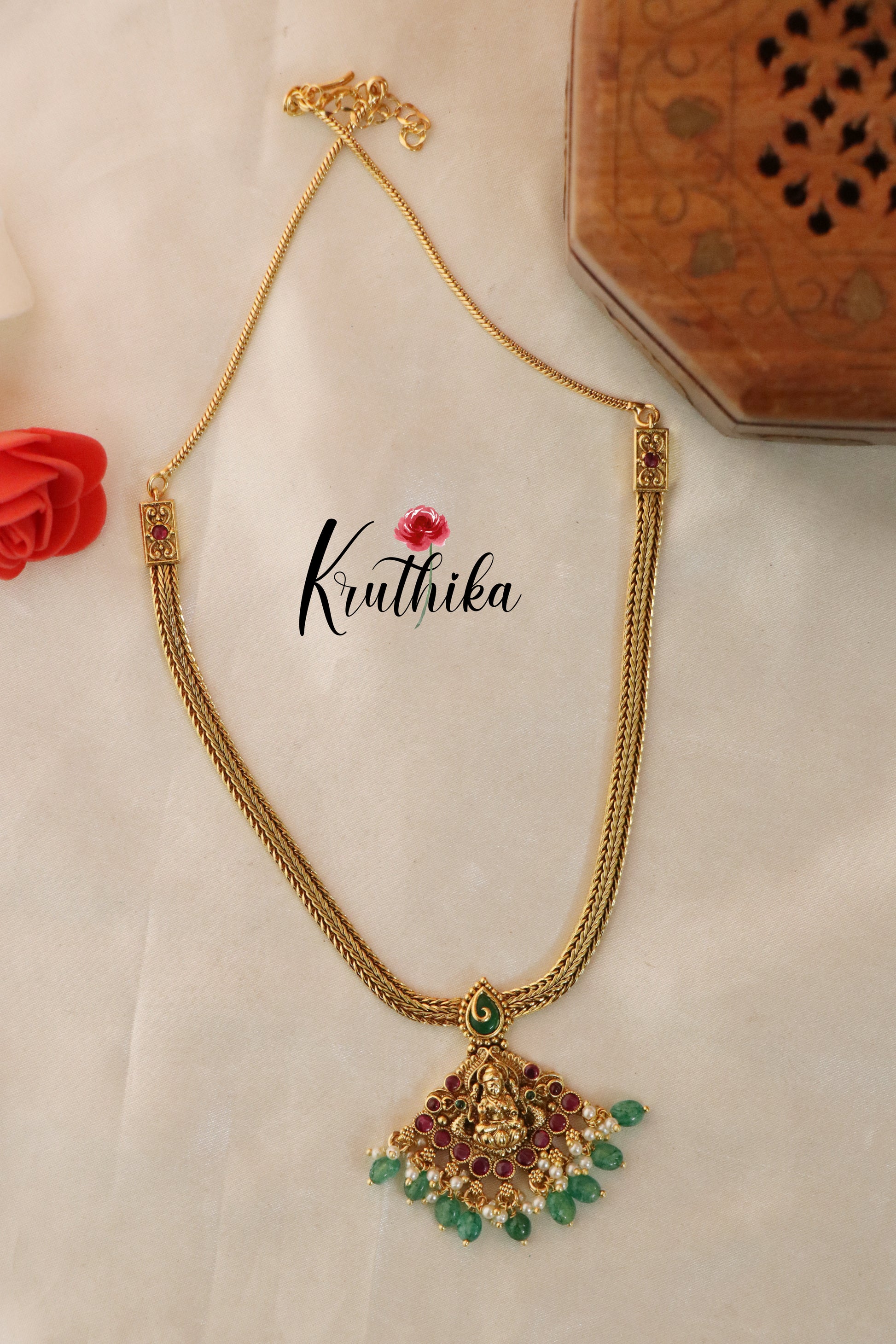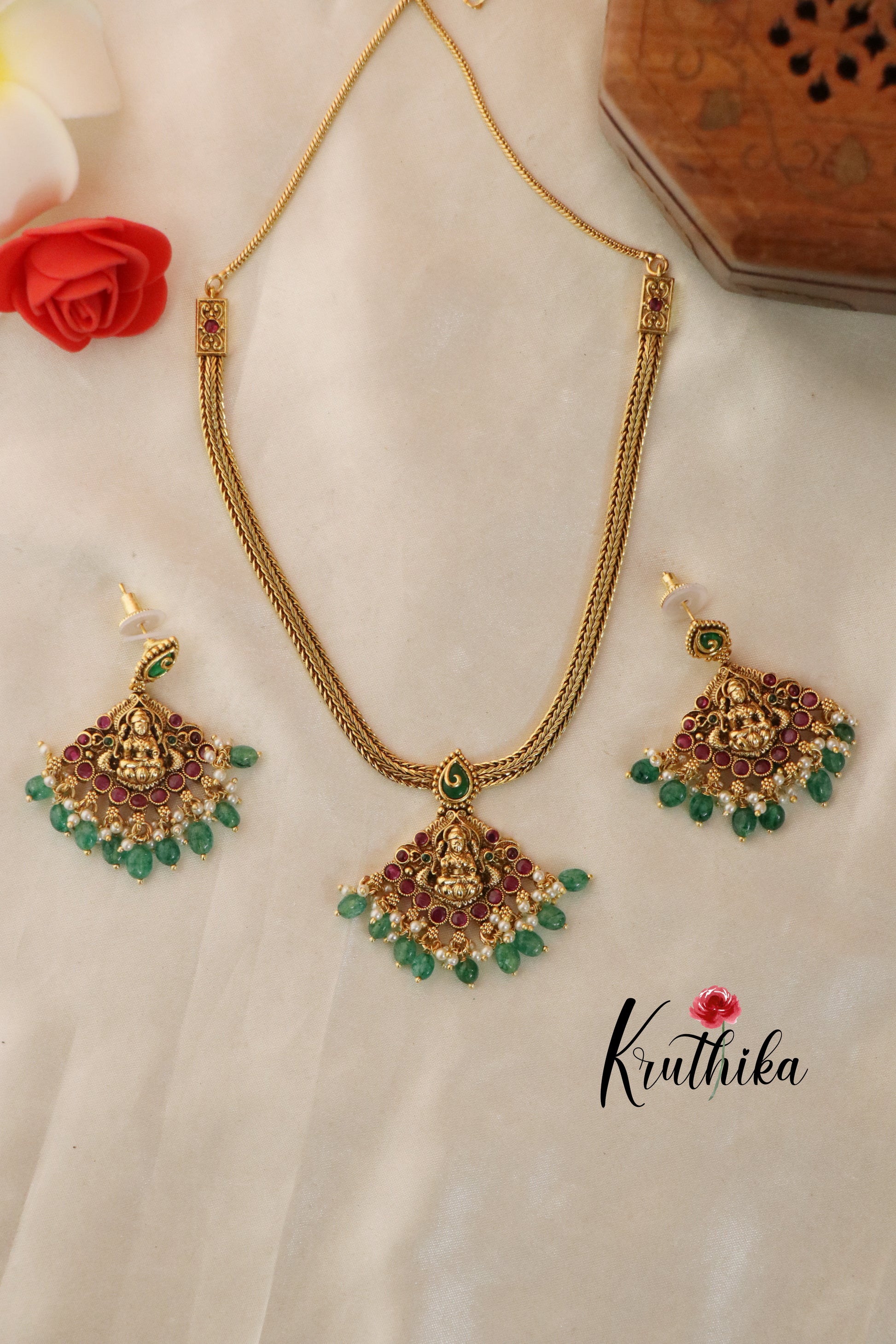 Pretty Lakshmi Chain Set with Green Beads NC1304