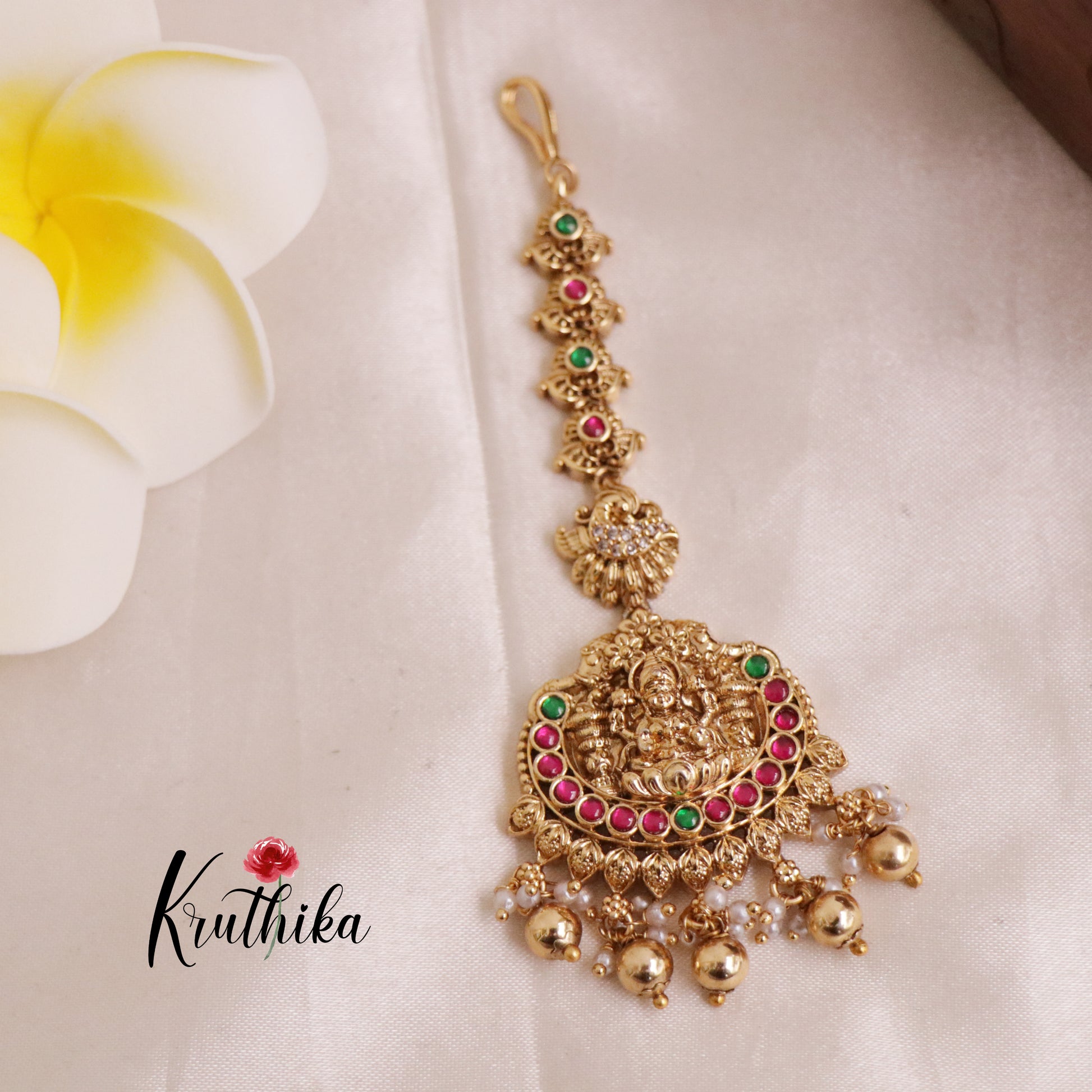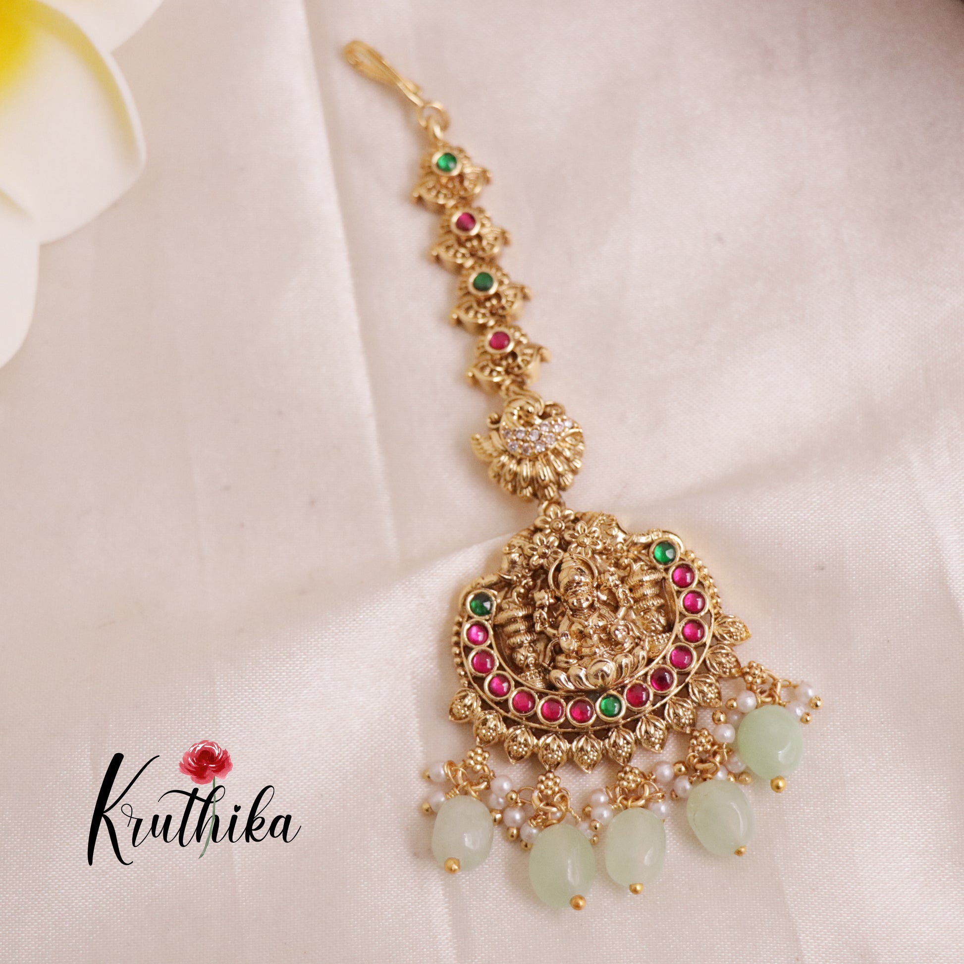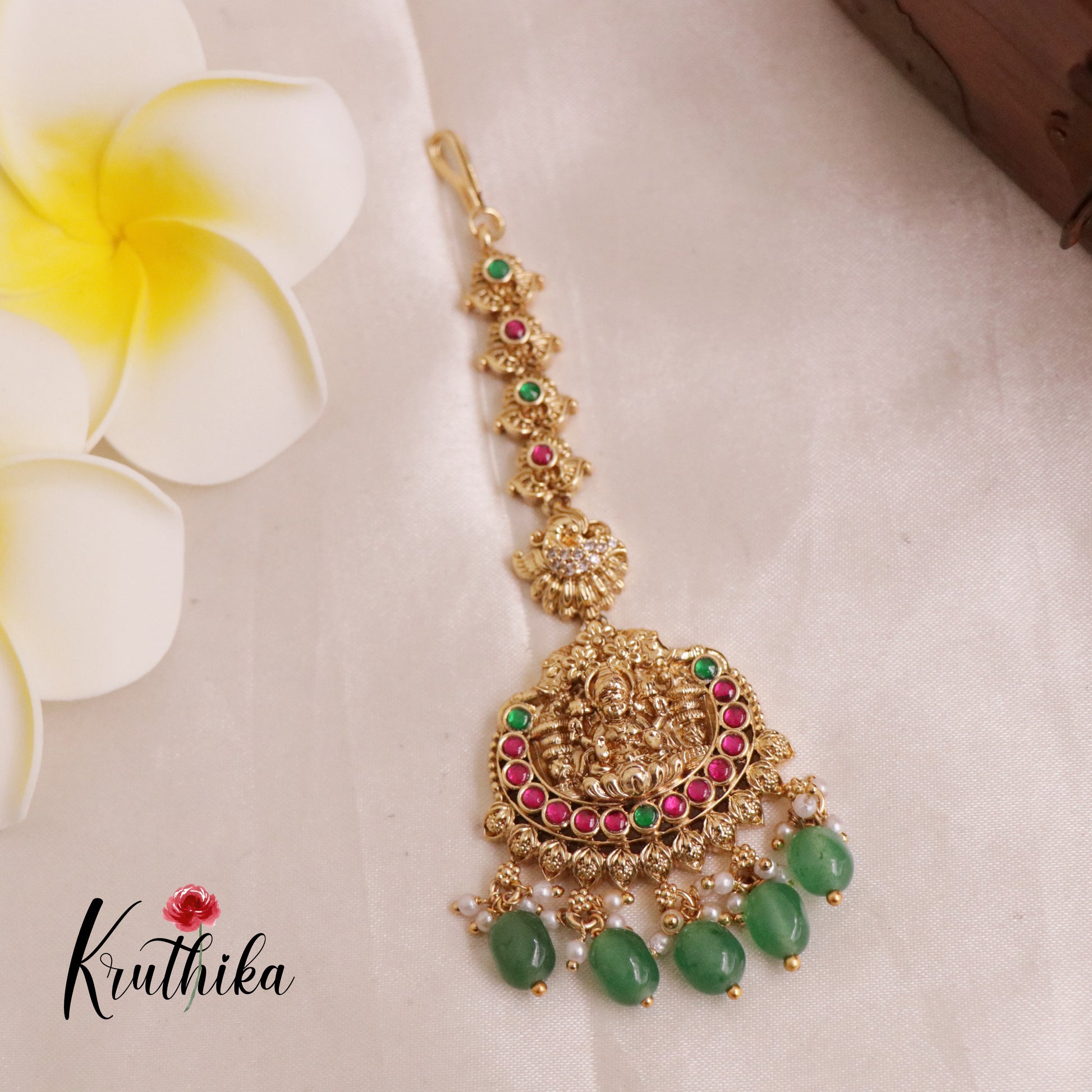 Enhance your style with our stunning, Pretty Lakshmi Jadau Maang Tikka . Crafted with high-quality stones & beads, this set combines timeless elegance with a modern touch. Ideal for special occasions or adding a touch of glamour to your look.