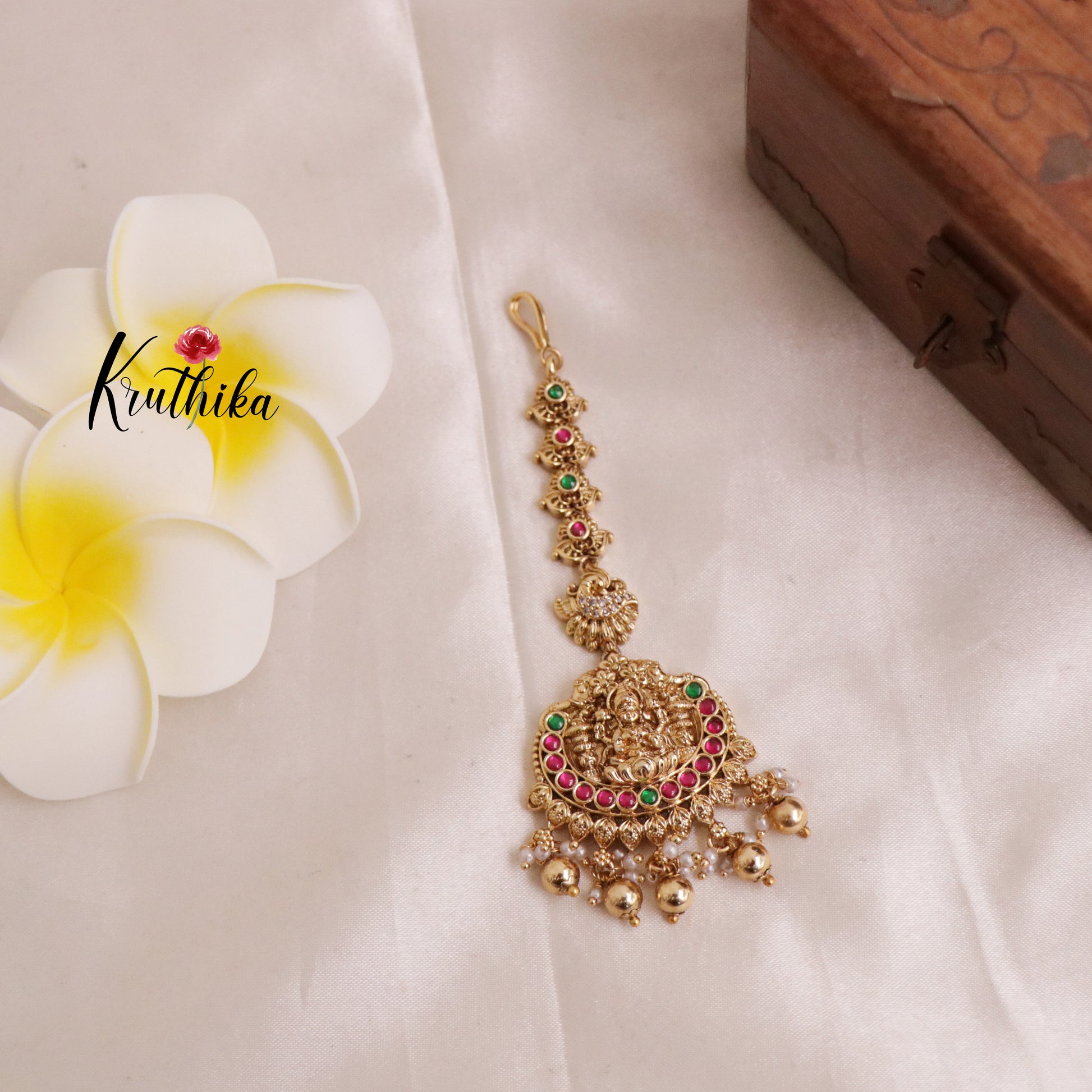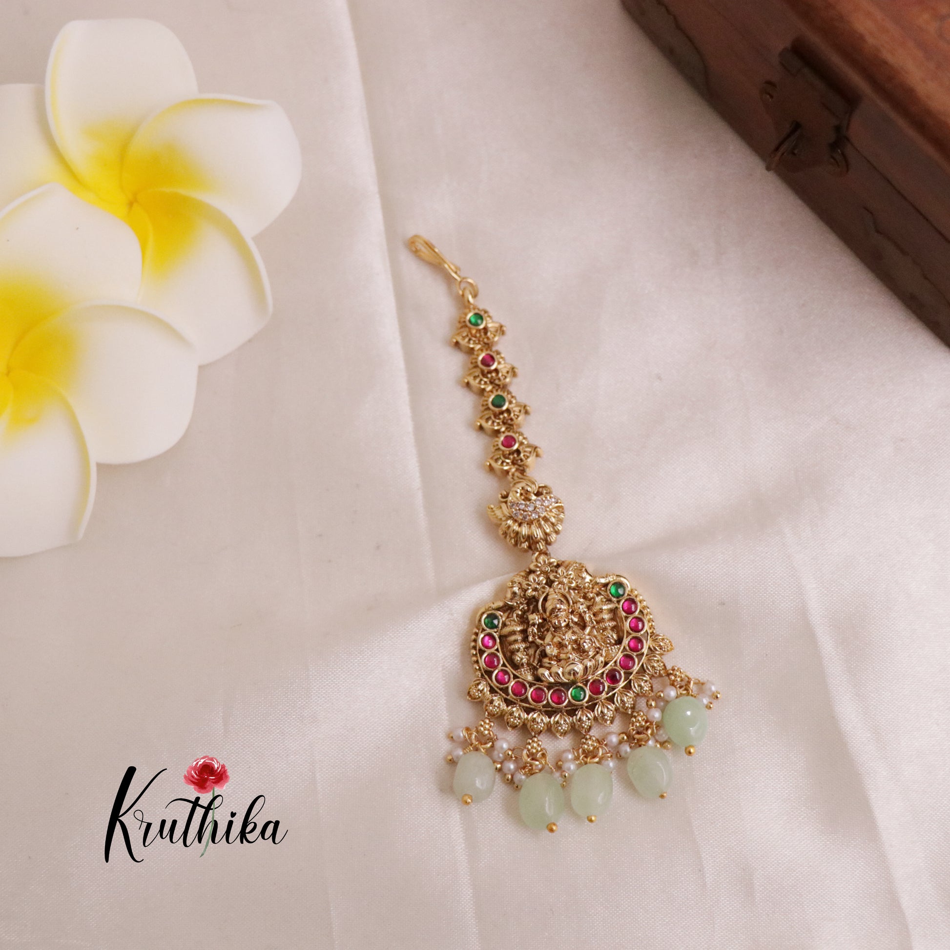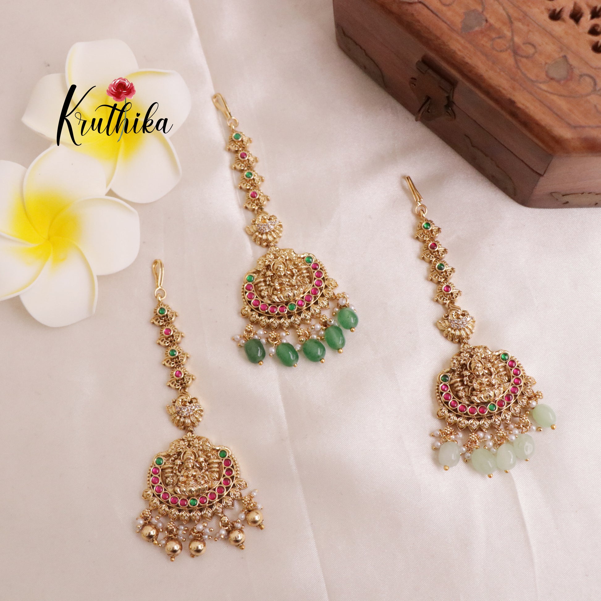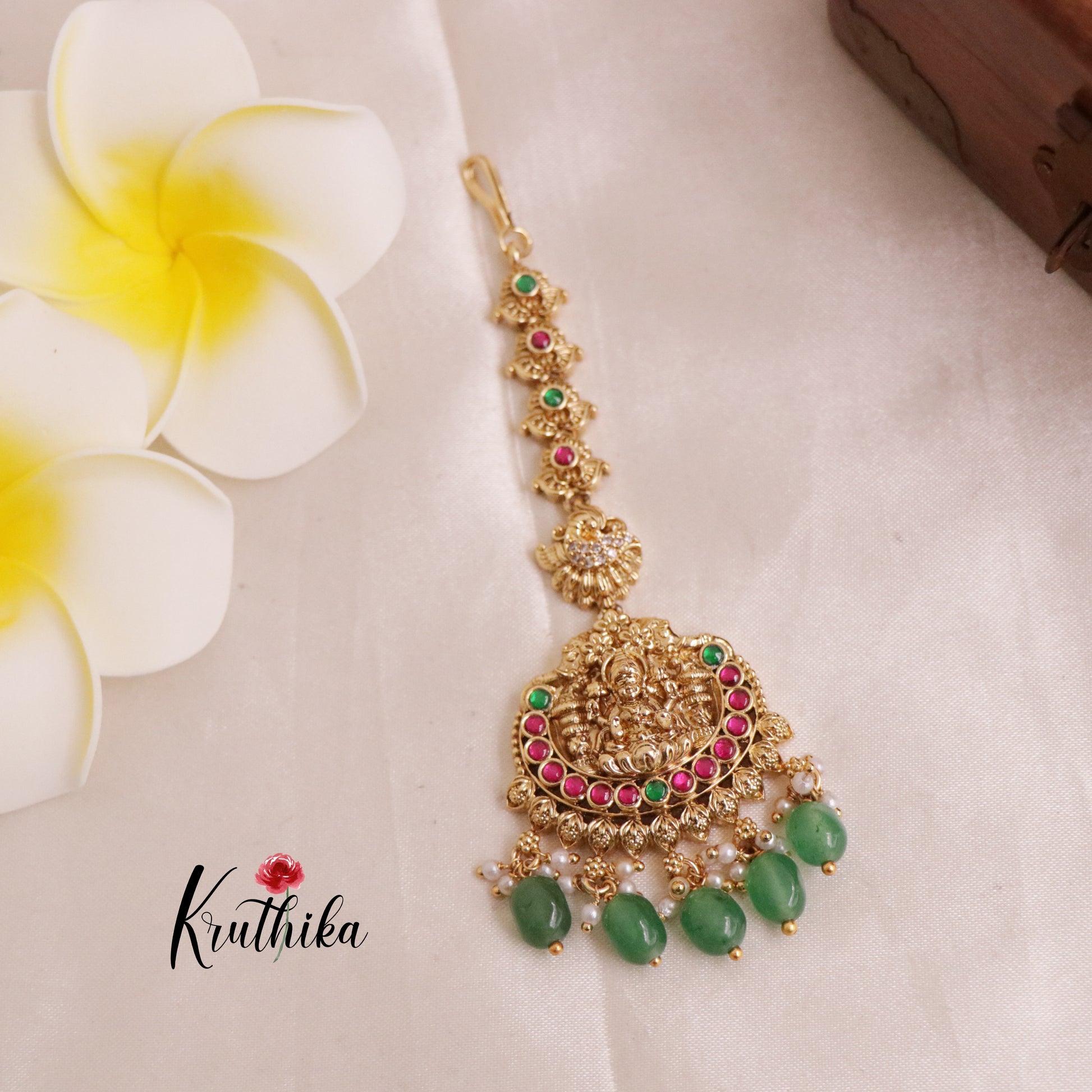 Enhance your style with our stunning, Pretty Lakshmi Jadau Maang Tikka . Crafted with high-quality stones & beads, this set combines timeless elegance with a modern touch. Ideal for special occasions or adding a touch of glamour to your look.