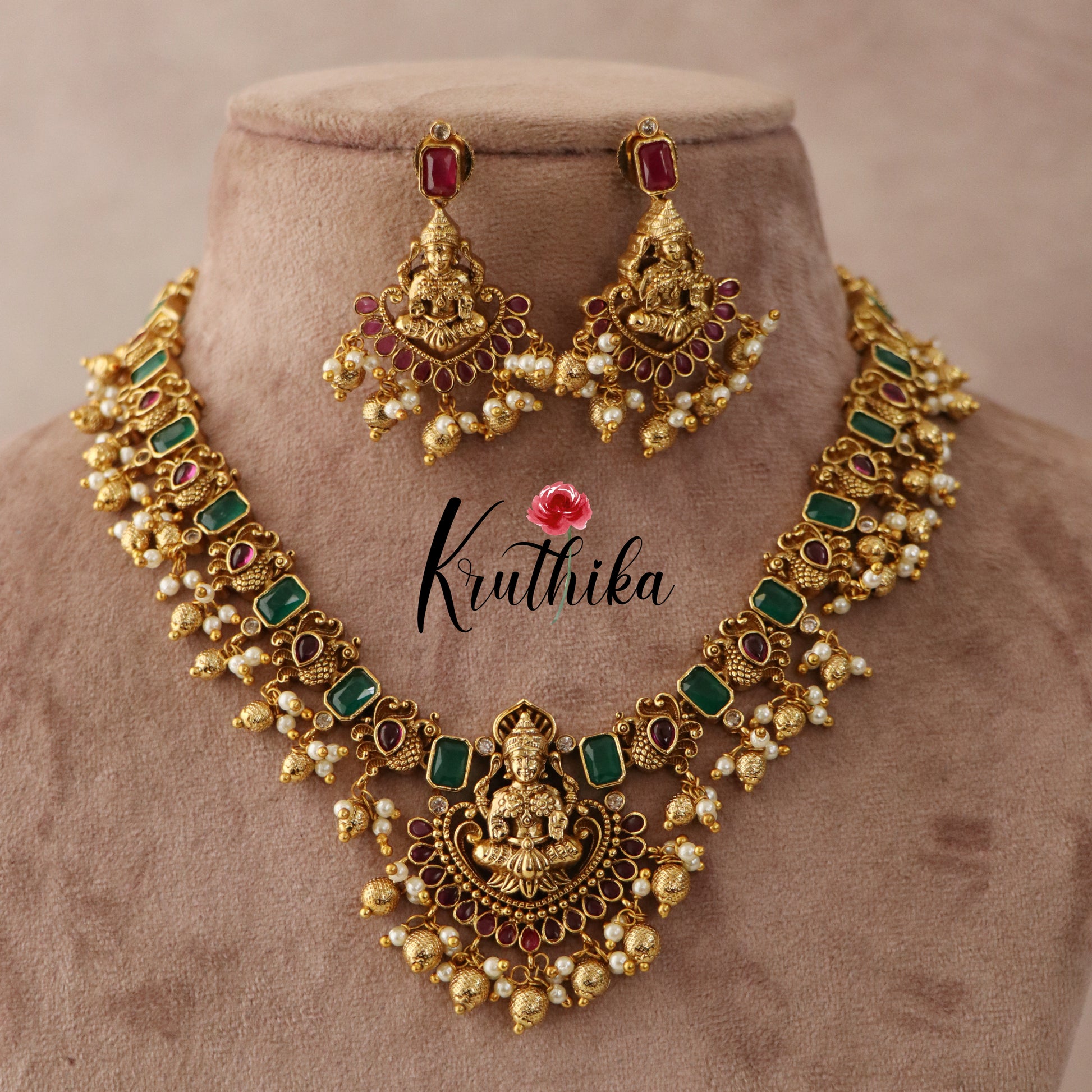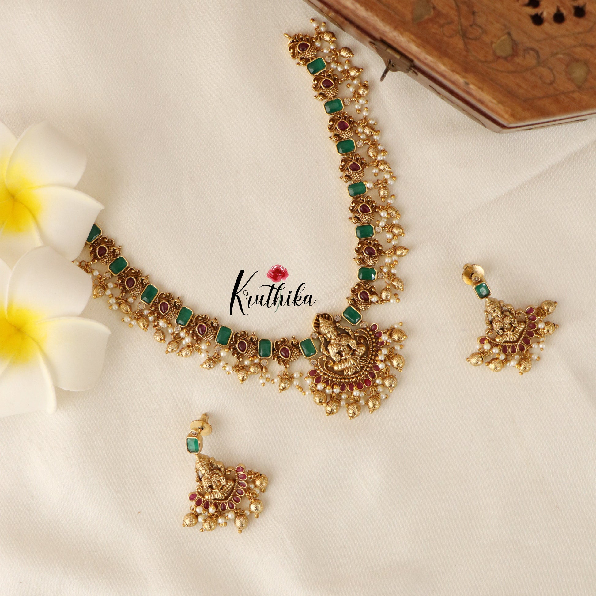 Enhance your style with our stunning, Pretty Lakshmi Necklace-Green Stones, paired perfectly with matching earrings. Crafted with high-quality stones & beads, this set combines timeless elegance with a modern touch. Ideal for special occasions or adding a touch of glamour to your look.