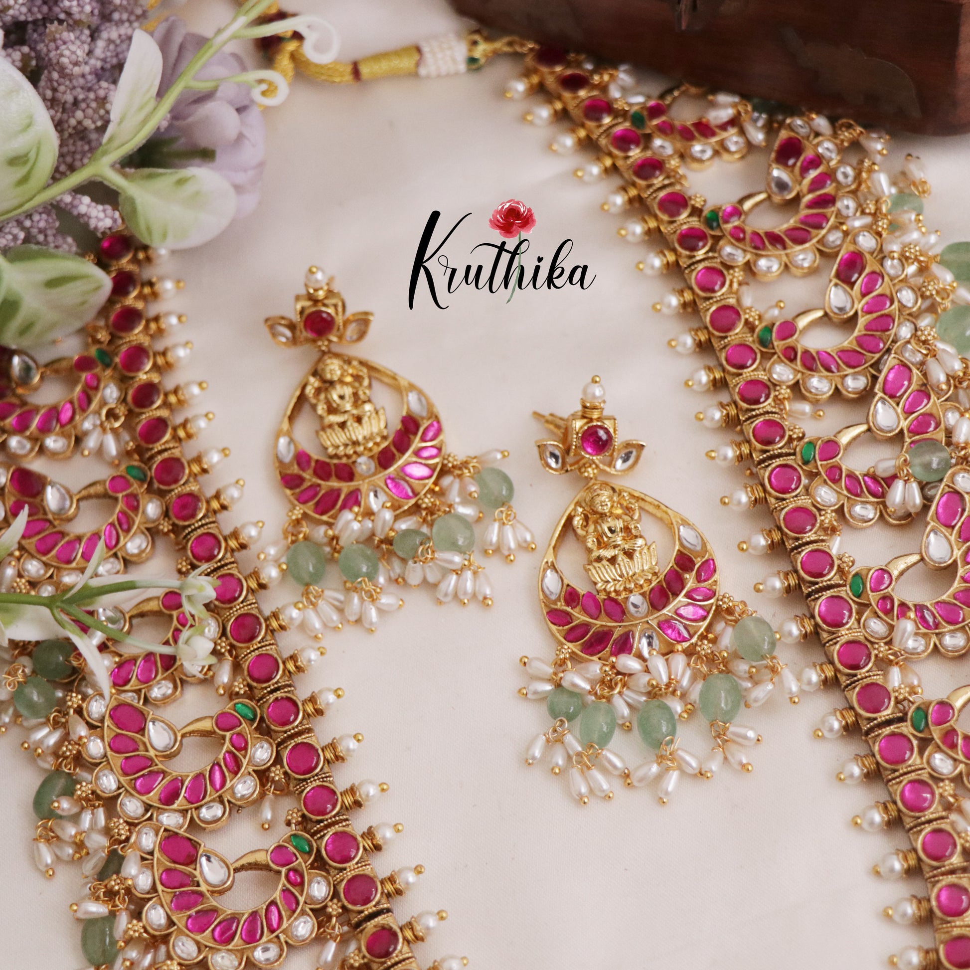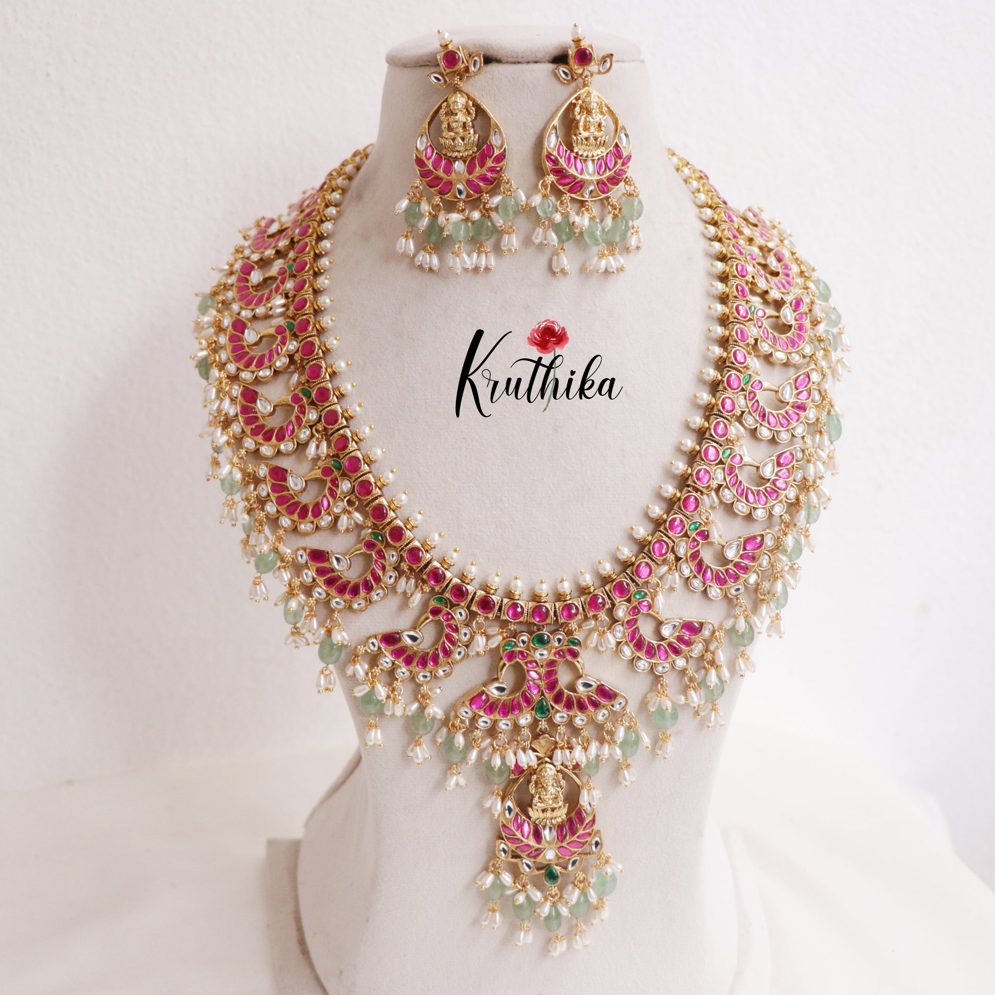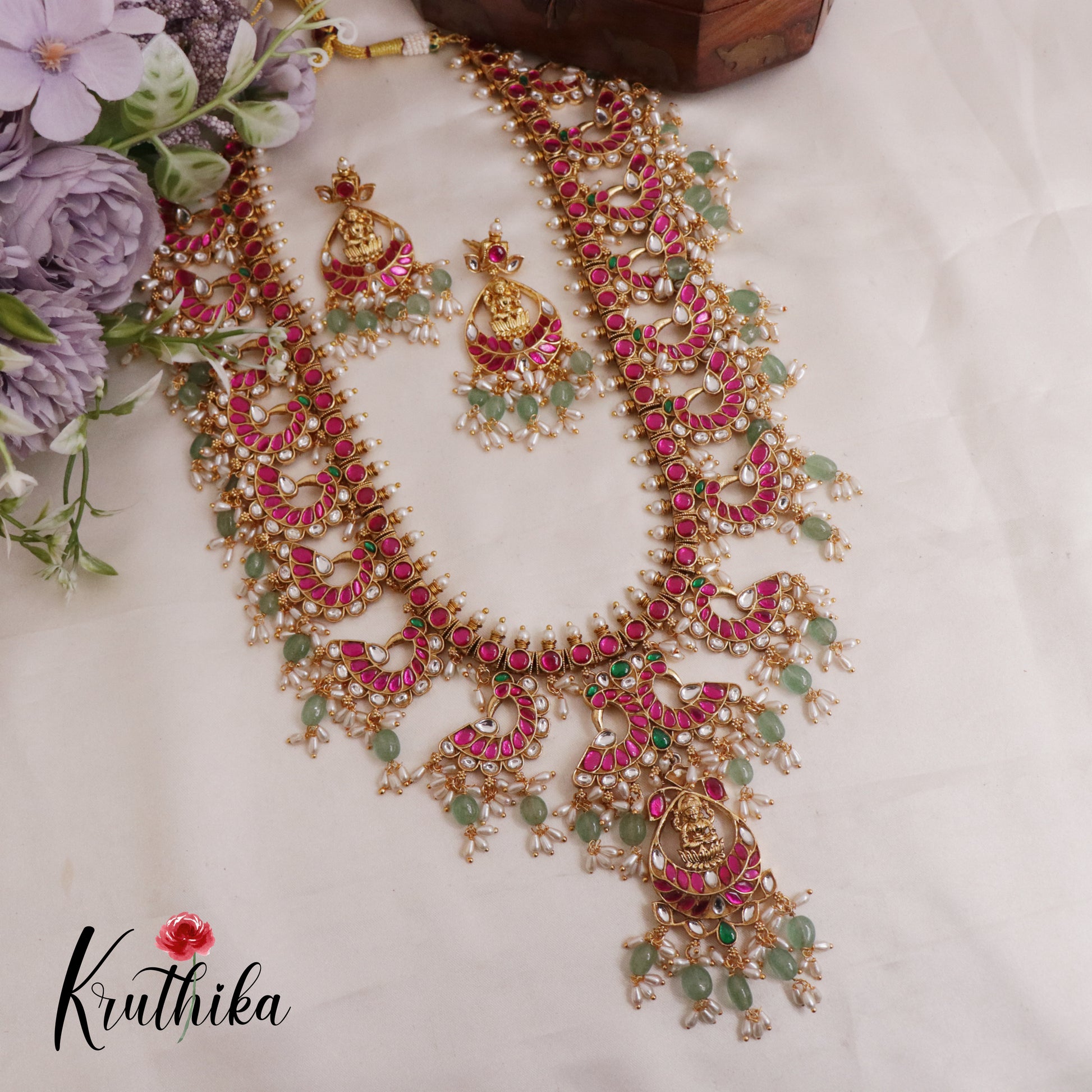 Royal Jadau Lakshmi Peacock Guttapusalu Haaram LH1996