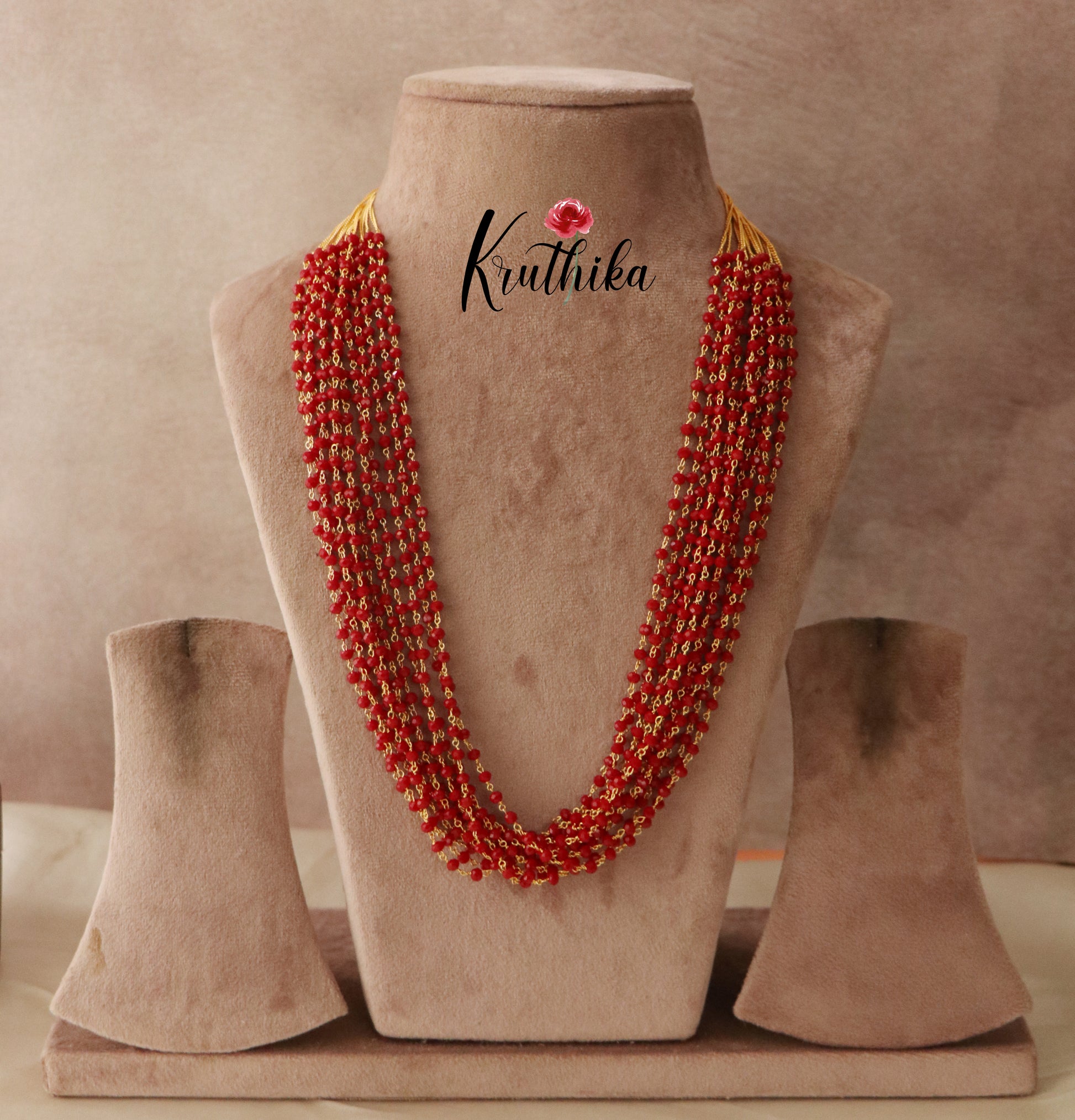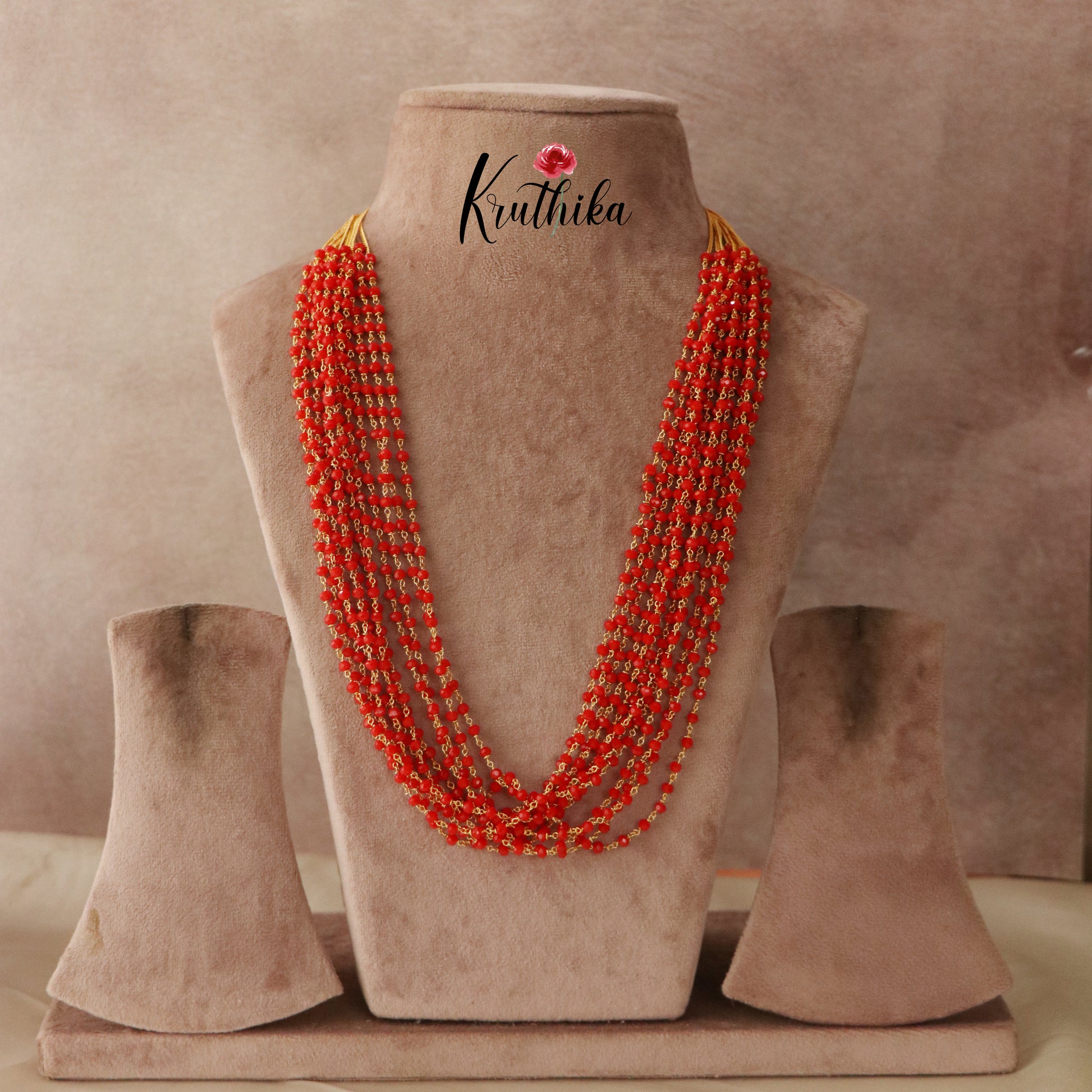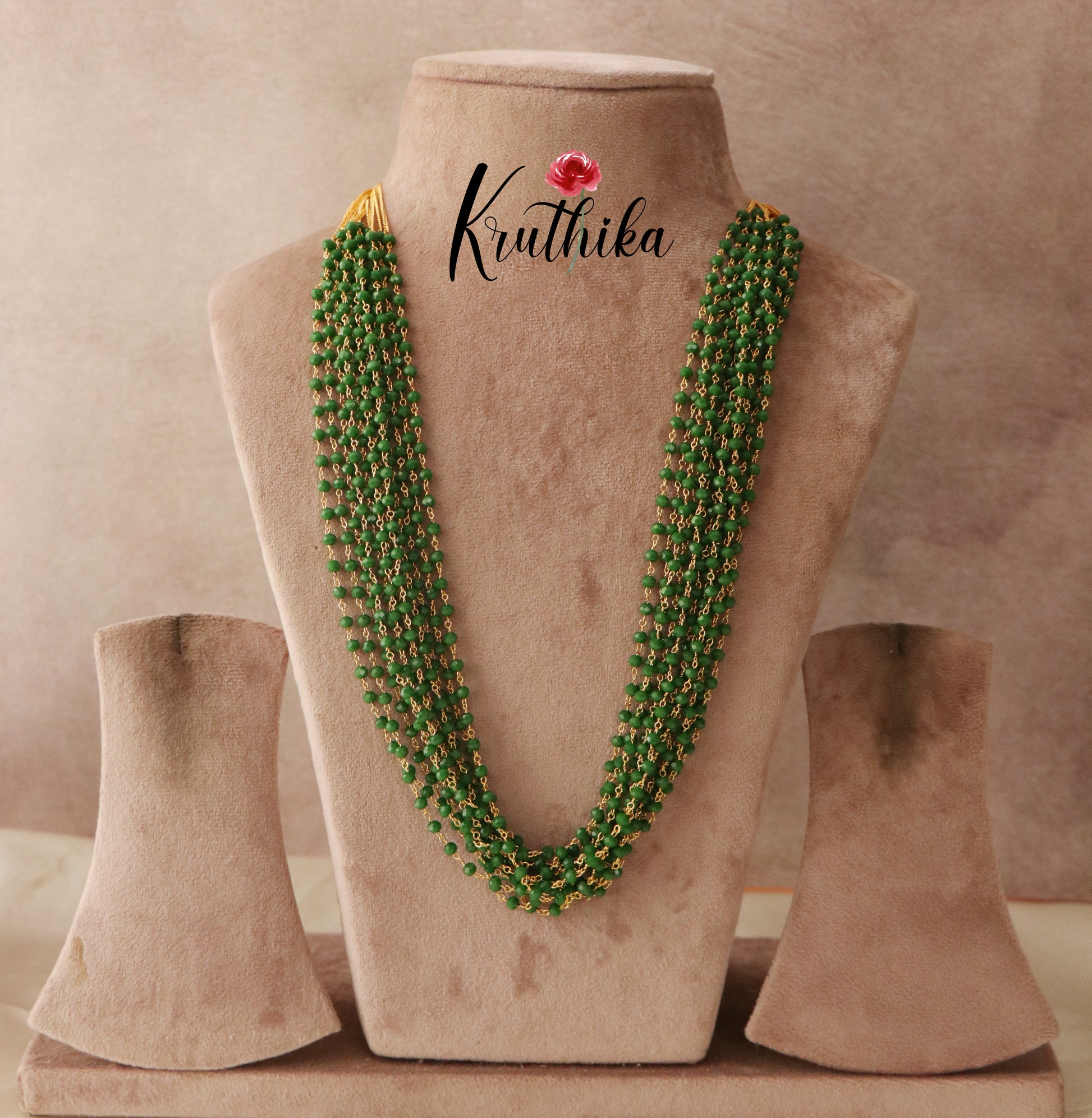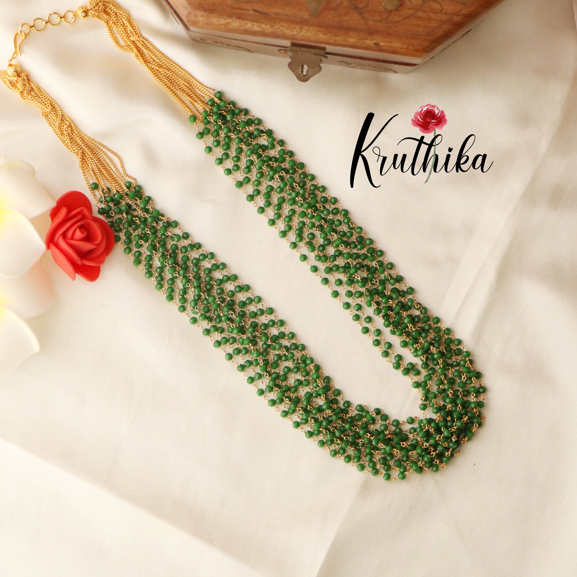 Enhance your style with our stunning,12 Line Pearl beads Mala . Crafted with high-quality stones & beads, this set combines timeless elegance with a modern touch. Ideal for special occasions or adding a touch of glamour to your look.