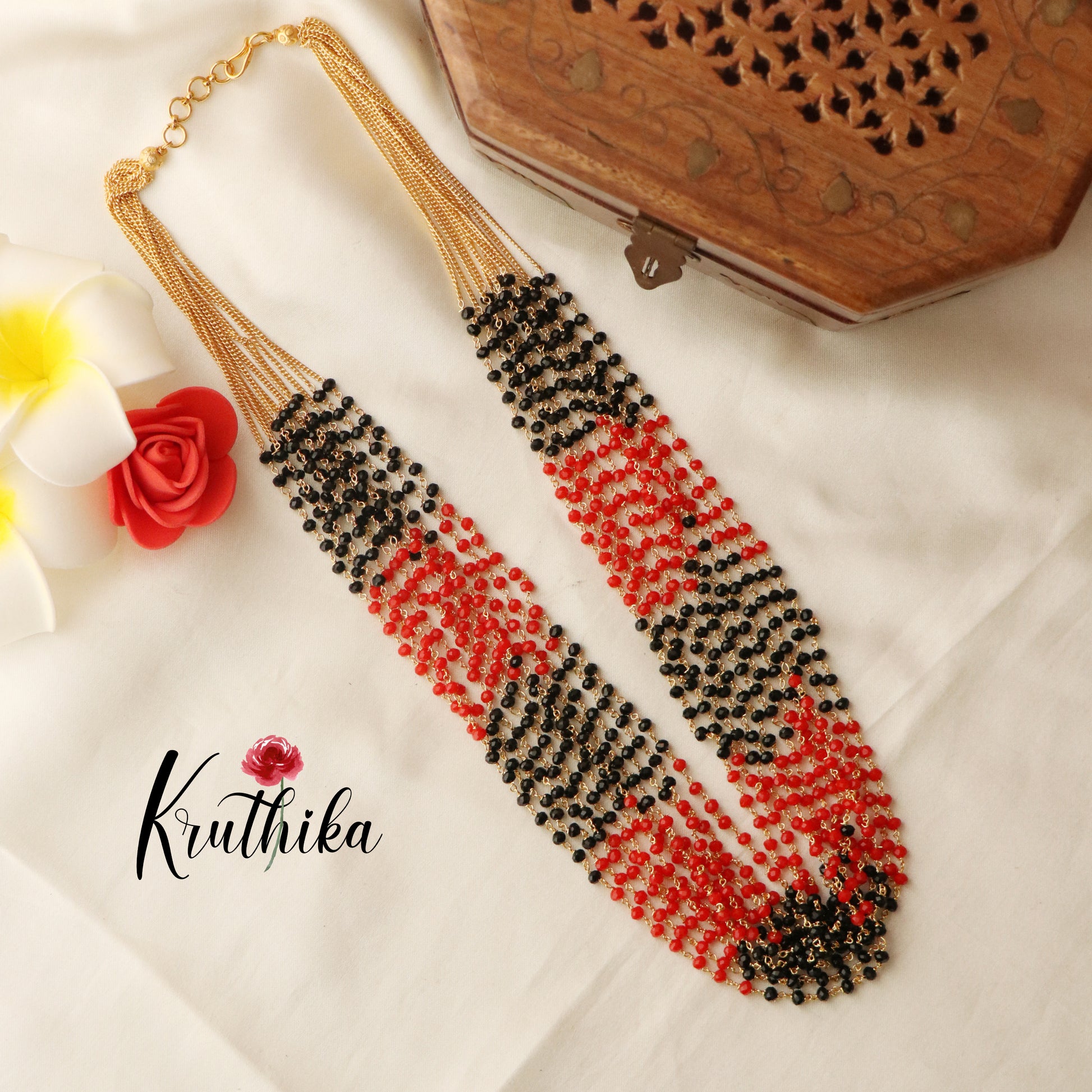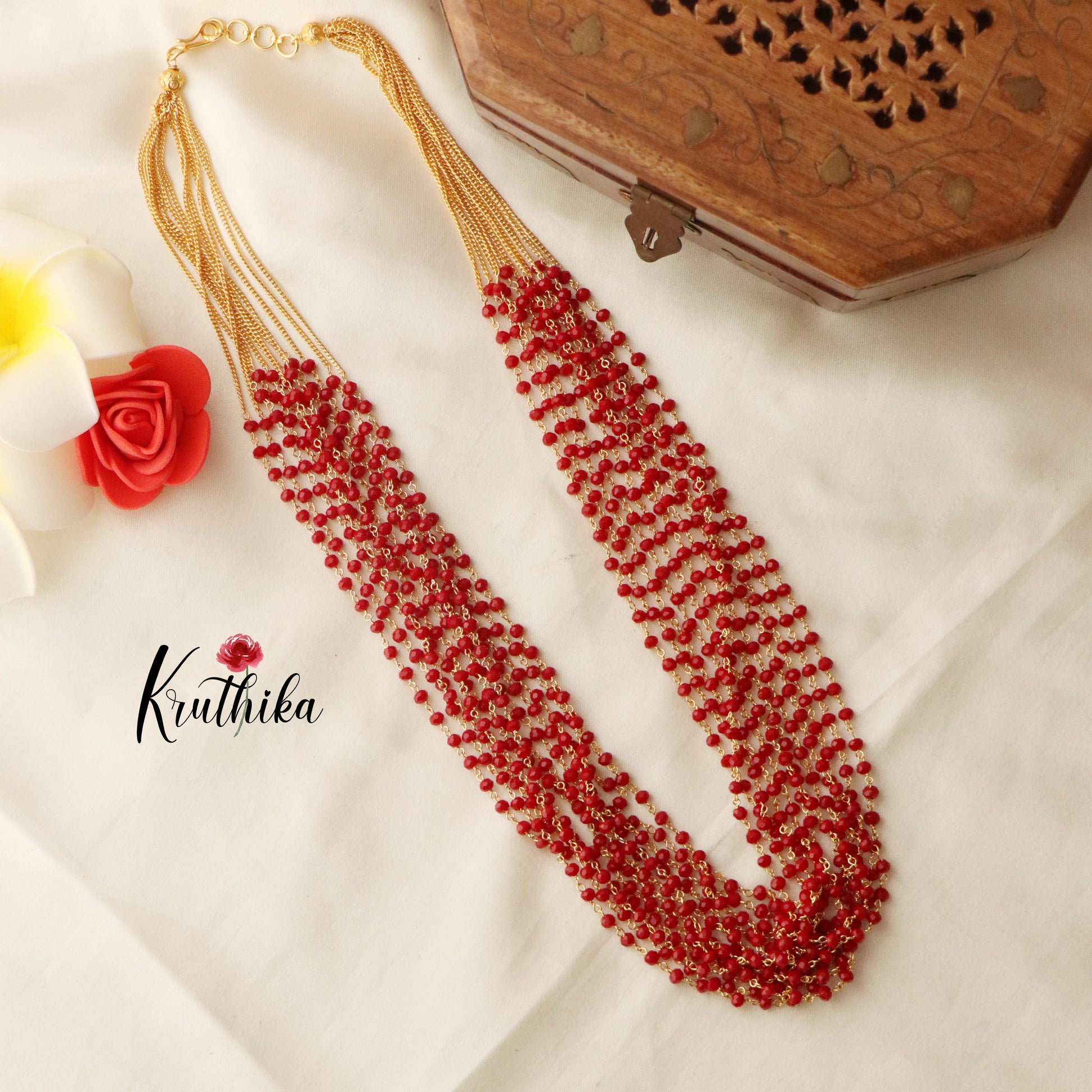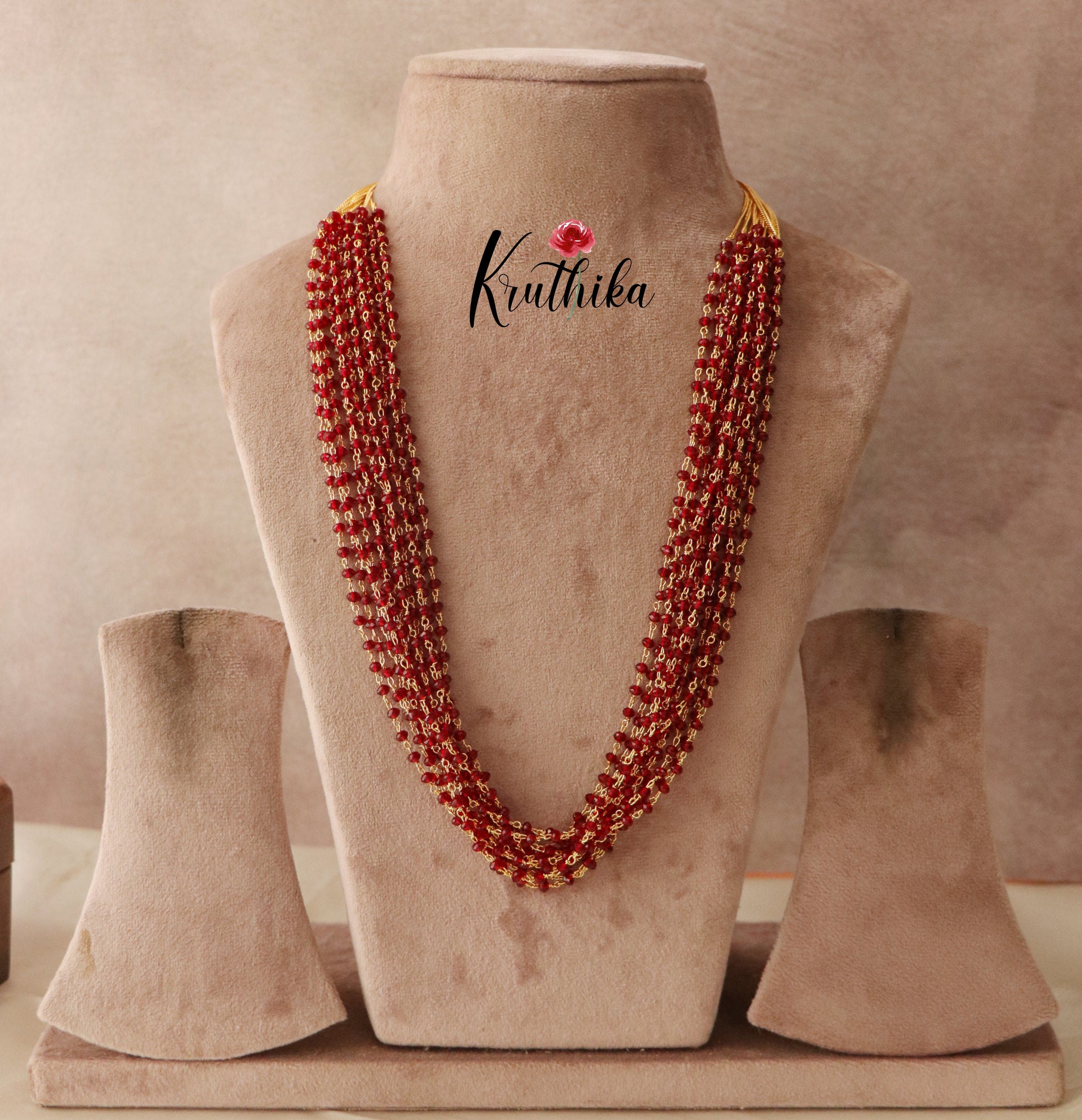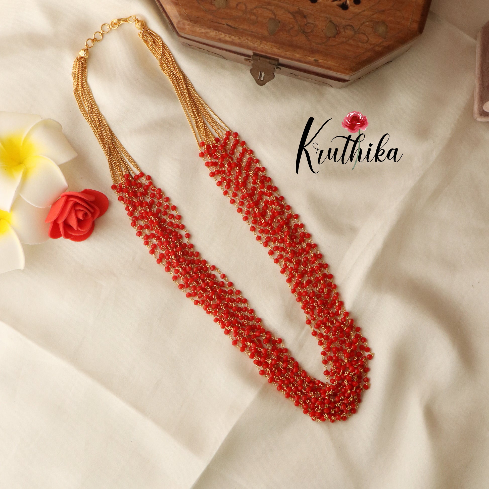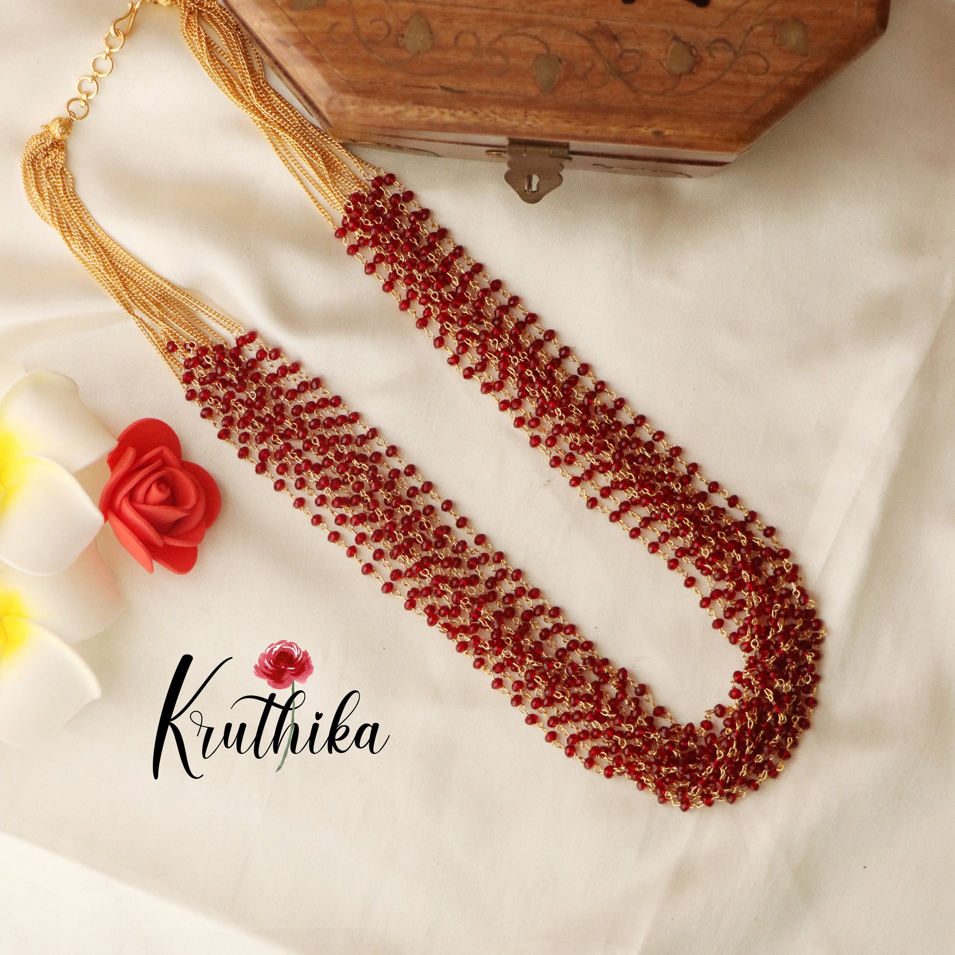 Enhance your style with our stunning,12 Line Pearl beads Mala . Crafted with high-quality stones & beads, this set combines timeless elegance with a modern touch. Ideal for special occasions or adding a touch of glamour to your look.