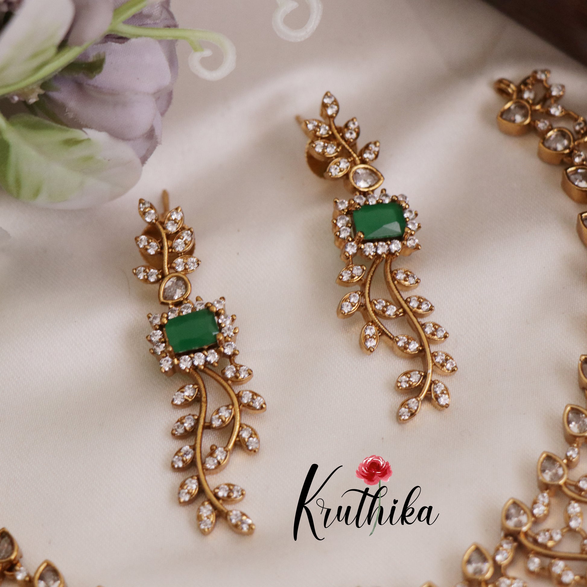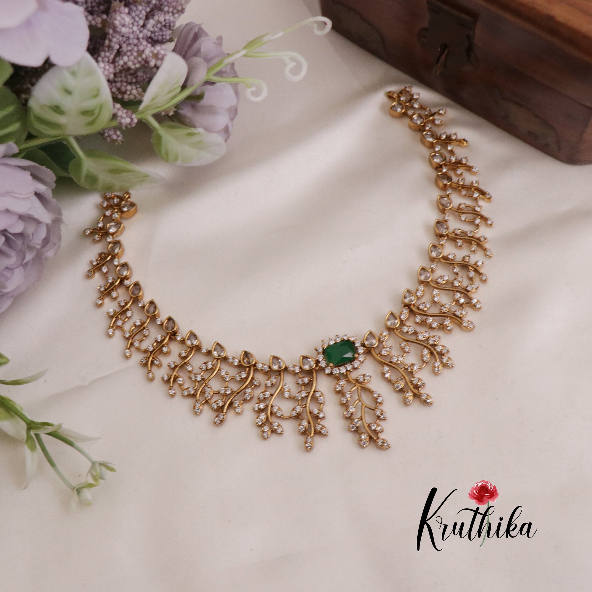 Enhance your style with our stunning Simple AD Leaf Floral Victorian Necklace paired perfectly with matching earrings. Crafted with high-quality stones & beads, this set combines timeless elegance with a modern touch. Ideal for special occasions or adding a touch of glamour to your look.