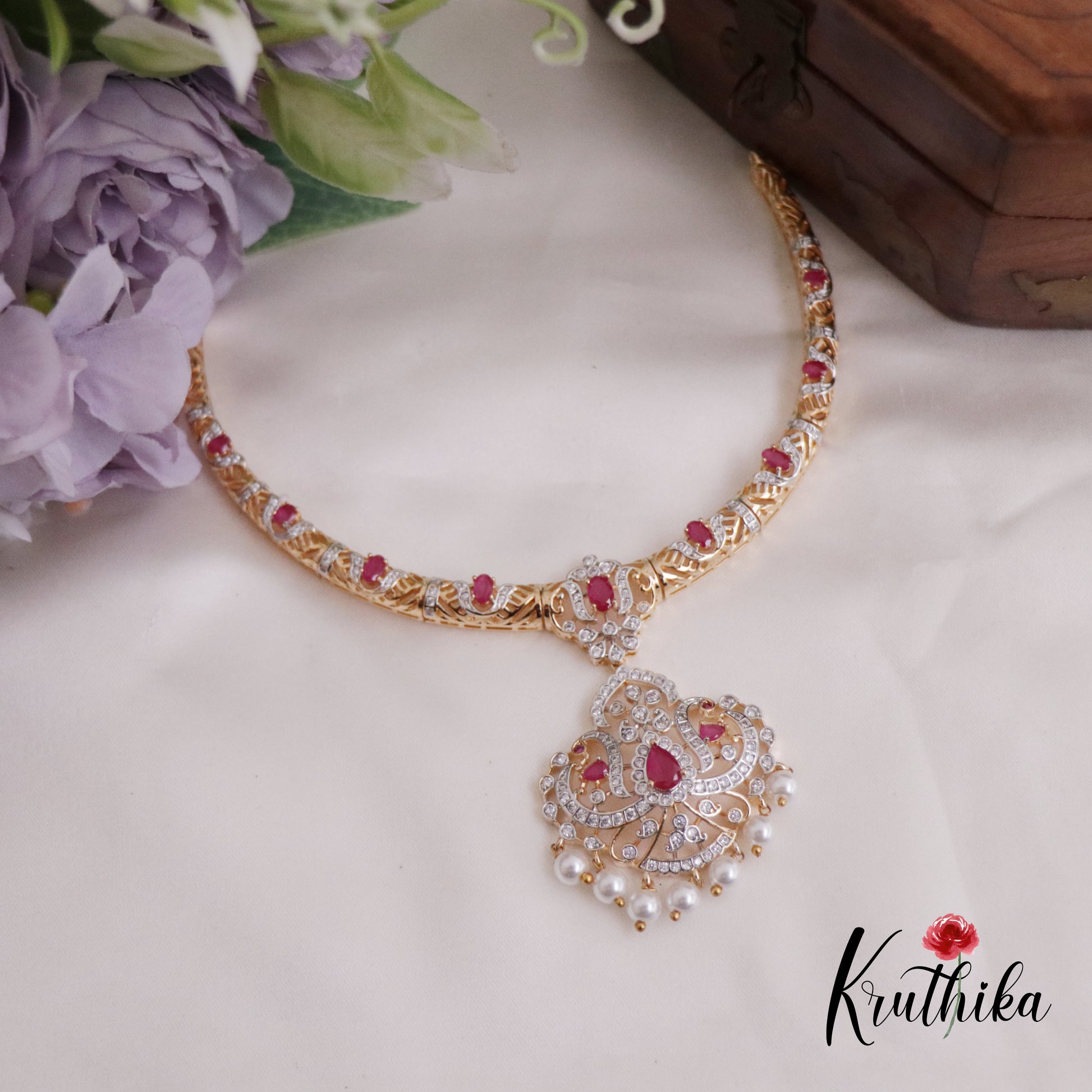 Enhance your style with our stunning Simple AD/ Victorian Hasli Necklace with Peacock Pendant Drops Crafted with high-quality stones & beads, this set combines timeless elegance with a modern touch. Ideal for special occasions or adding a touch of glamour to your look.