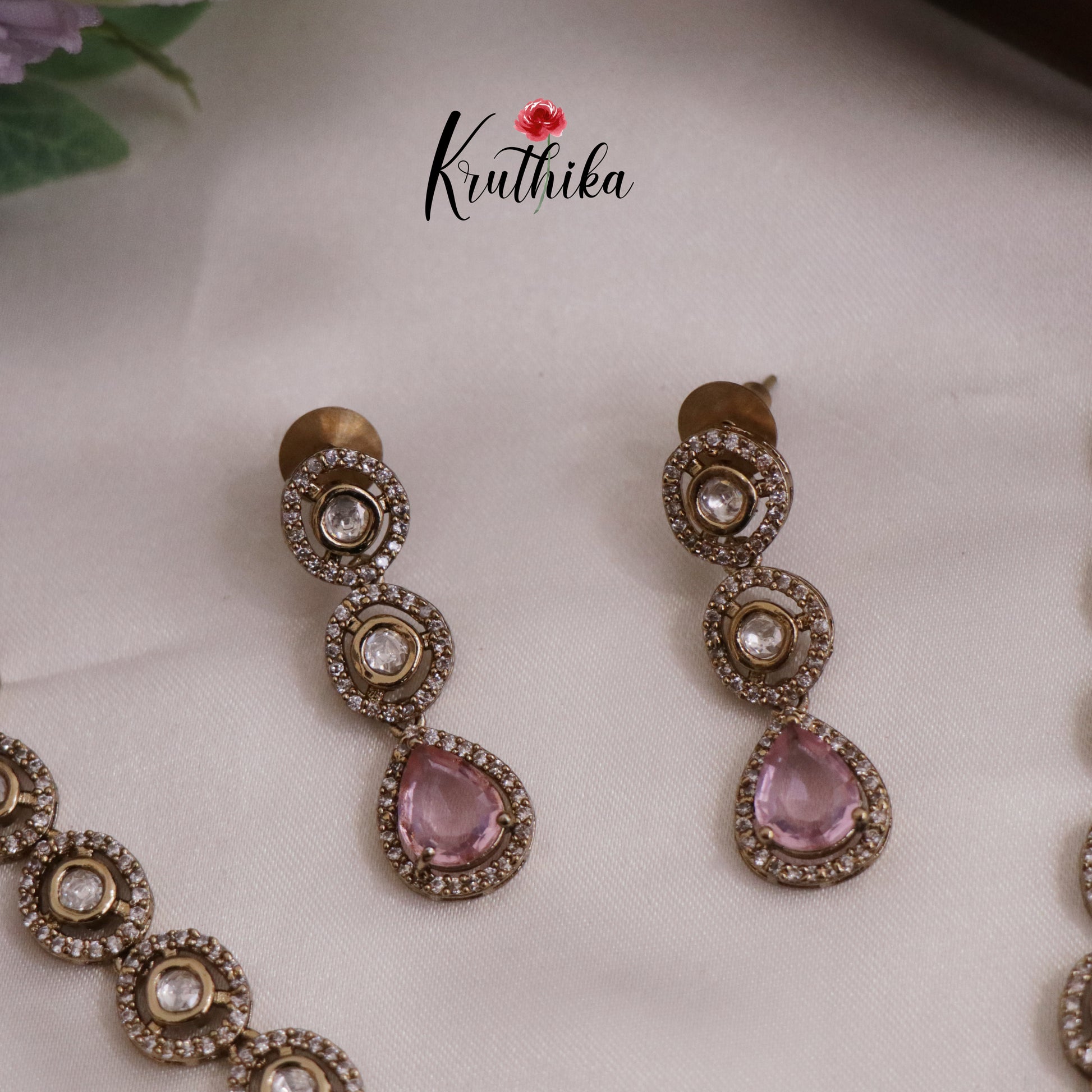 Enhance your style with our stunning Simple AD Victorian Pendant Necklace paired perfectly with matching earrings. Crafted with high-quality stones & beads, this set combines timeless elegance with a modern touch. Ideal for special occasions or adding a touch of glamour to your look.
