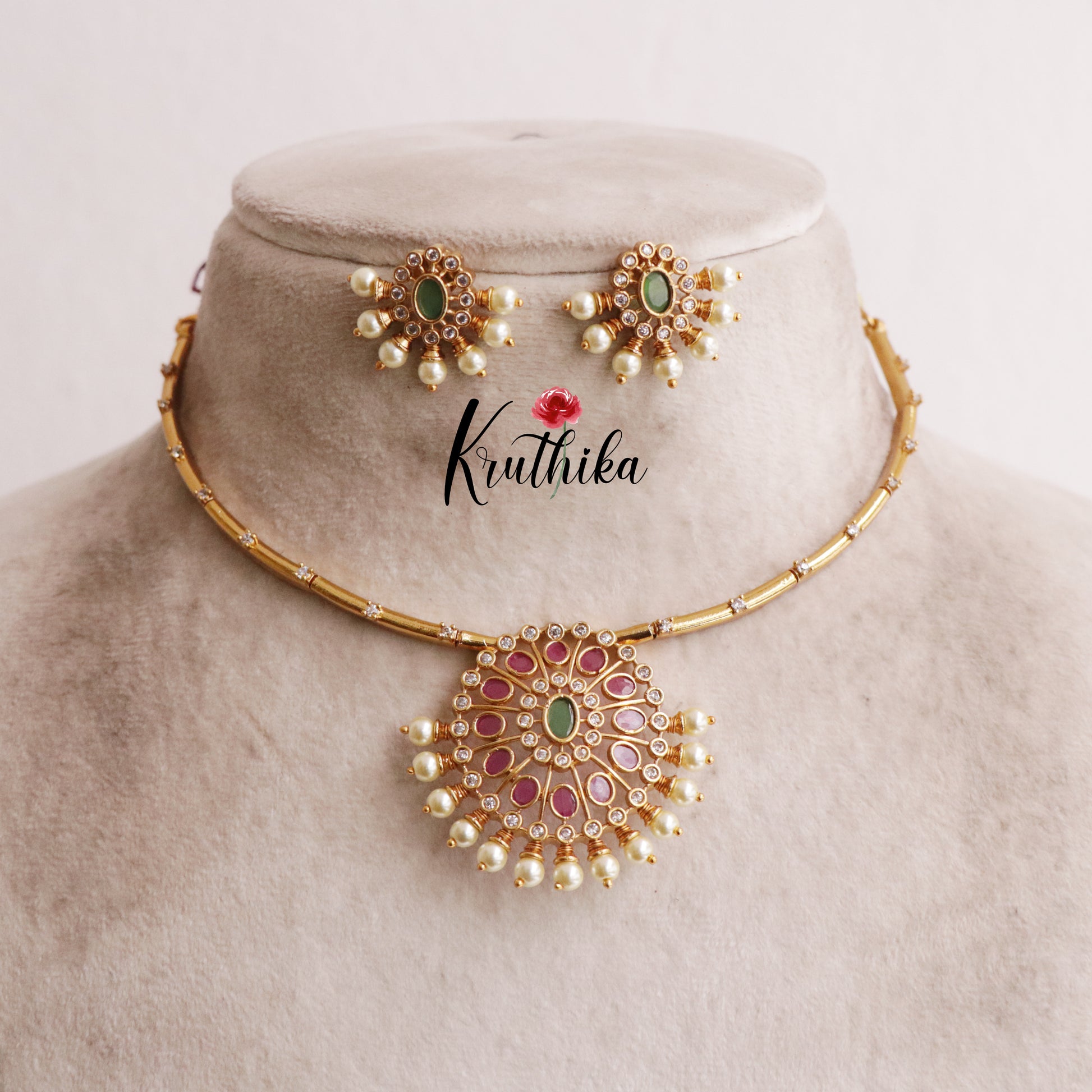 Enhance your style with our stunning, Simple Antique Aura Pearl Hasli Neckalce Set Crafted with high-quality stones & beads, this set combines timeless elegance with a modern touch. Ideal for special occasions or adding a touch of glamour to your look.