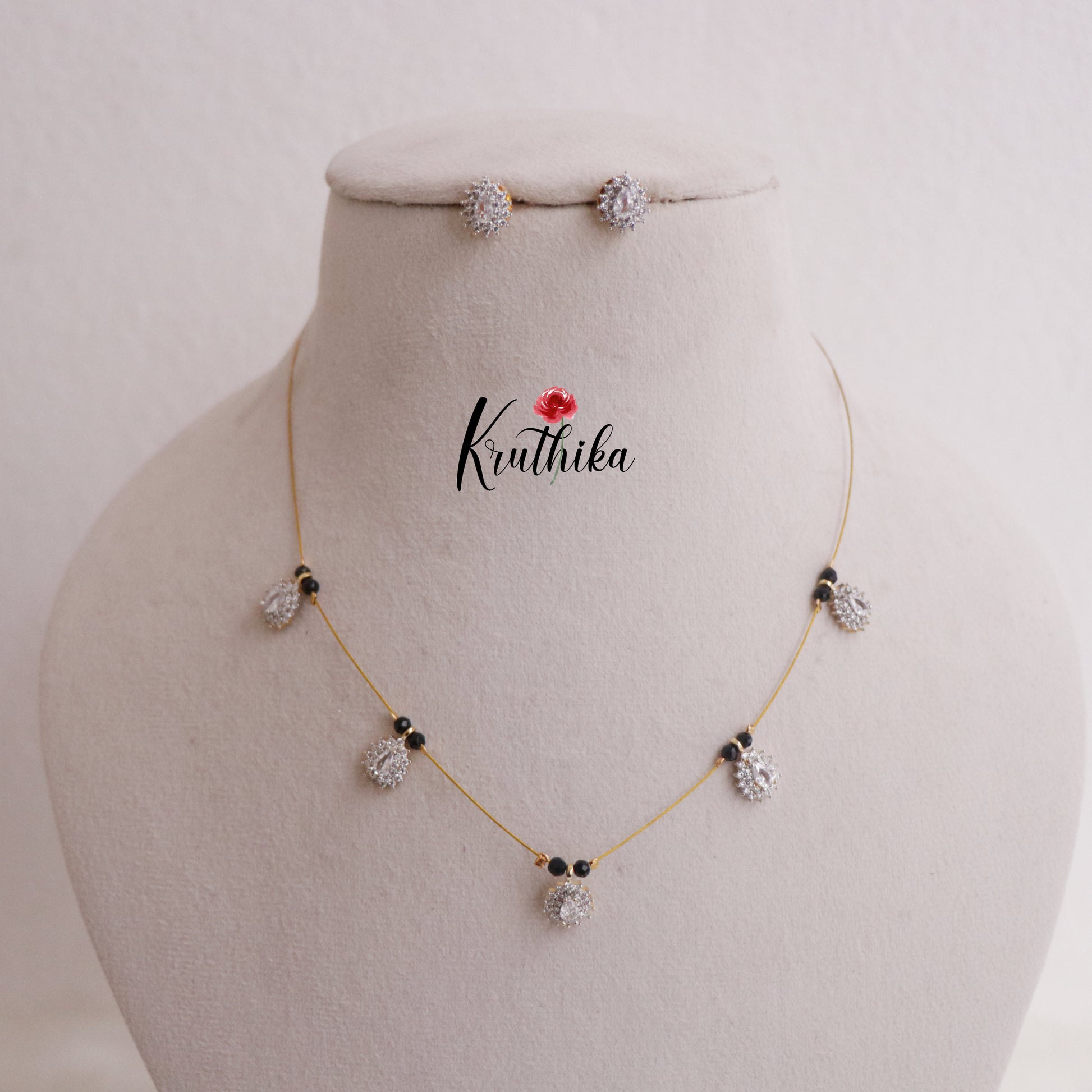 Enhance your style with our stunning Simple CZ Black Bead Invisible Chain paired perfectly with matching earrings. Crafted with high-quality stones & beads, this set combines timeless elegance with a modern touch. Ideal for special occasions or adding a touch of glamour to your look.