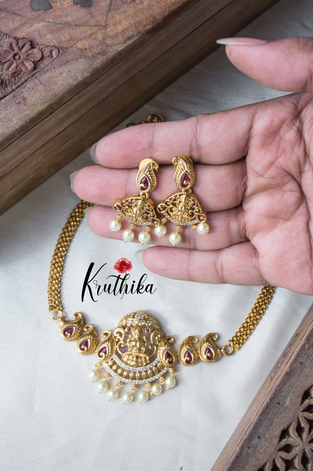 Enhance your style with our stunning Simple CZ Lakshmi Choker, paired perfectly