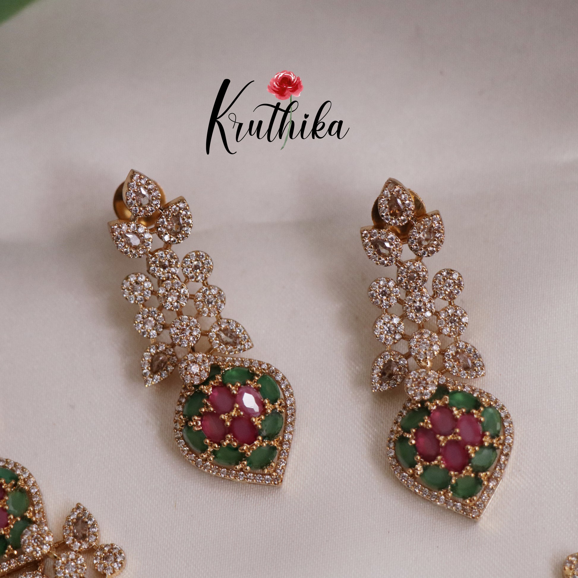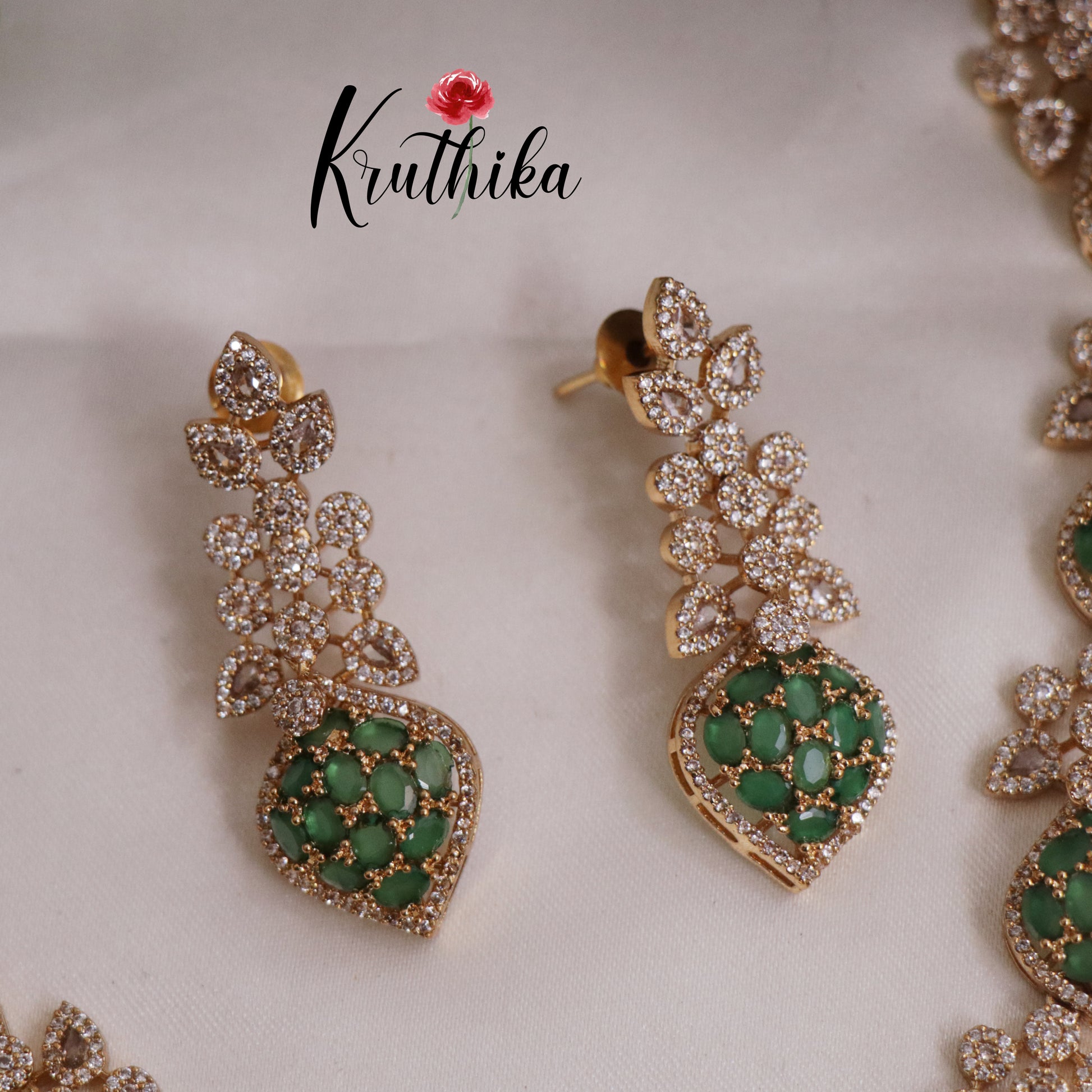 Enhance your style with our stunning Simple CZ Leaf Motif Necklace paired perfectly with matching earrings. Crafted with high-quality stones & beads, this set combines timeless elegance with a modern touch. Ideal for special occasions or adding a touch of glamour to your look.
