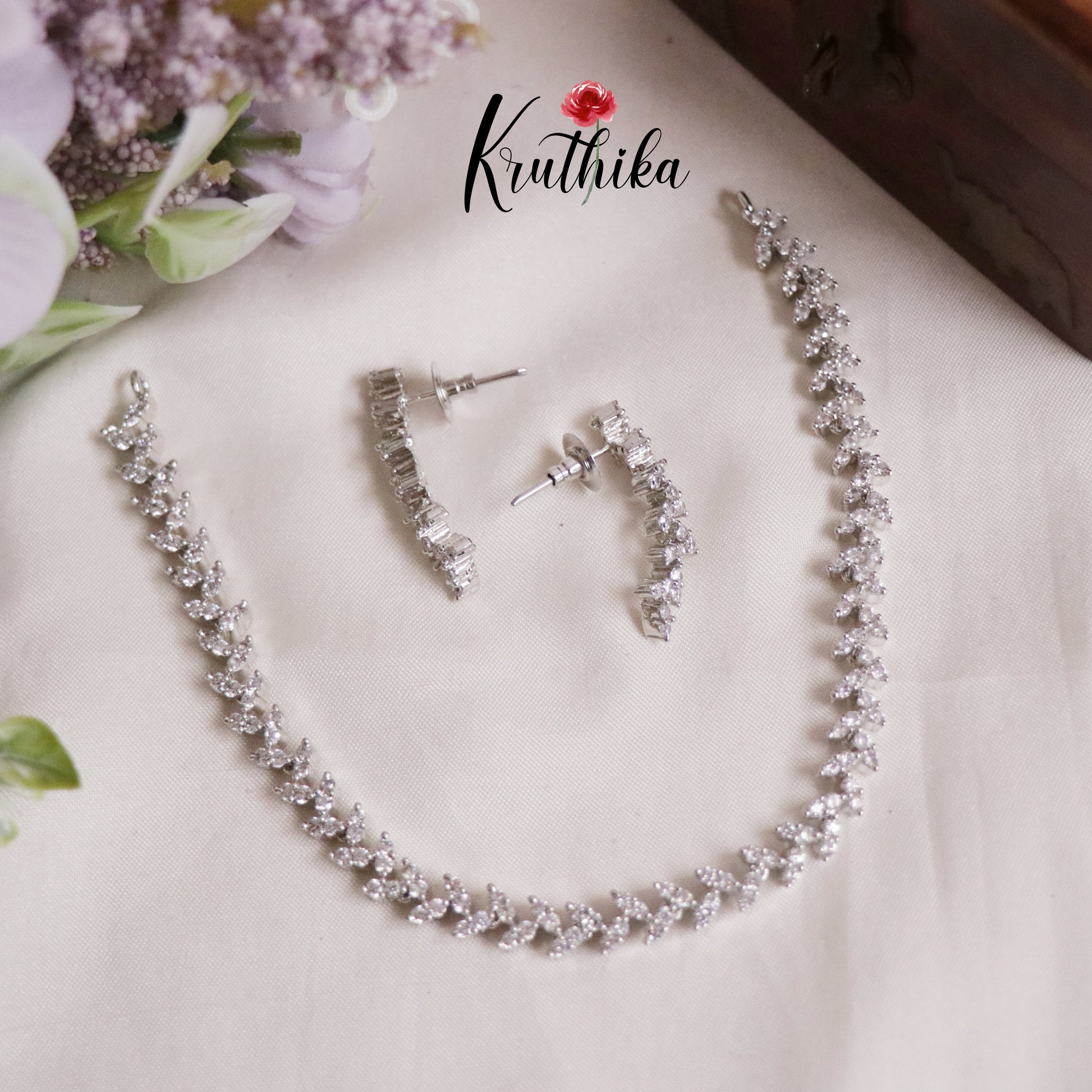 Enhance your style with our stunning Simple CZ Sparking Leaf Design Necklace Set paired perfectly with matching earrings. Crafted with high-quality stones & beads, this set combines timeless elegance with a modern touch. Ideal for special occasions or adding a touch of glamour to your look.