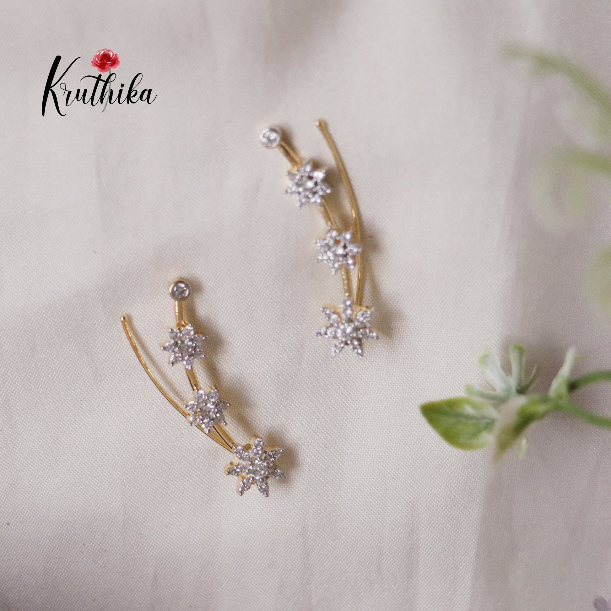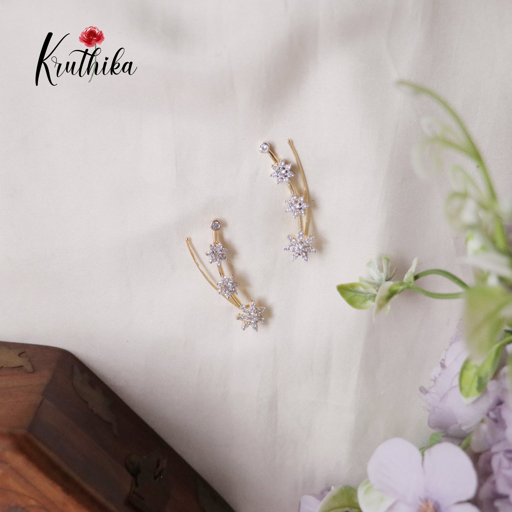 Elevate your ear styling with these exquisite dainty ear climbers, meticulously crafted with lustrous AD stones and a radiant gold finish. These versatile pieces gracefully hug the contour of your ear, creating a sophisticated, contemporary look that transitions seamlessly from day to evening wear. The lightweight design ensures all-day comfort, while the premium AD stone detailing catches light beautifully, adding sparkle without overwhelming delicate features. Perfect for those seeking refined, understated elegance that makes a subtle yet striking statement.