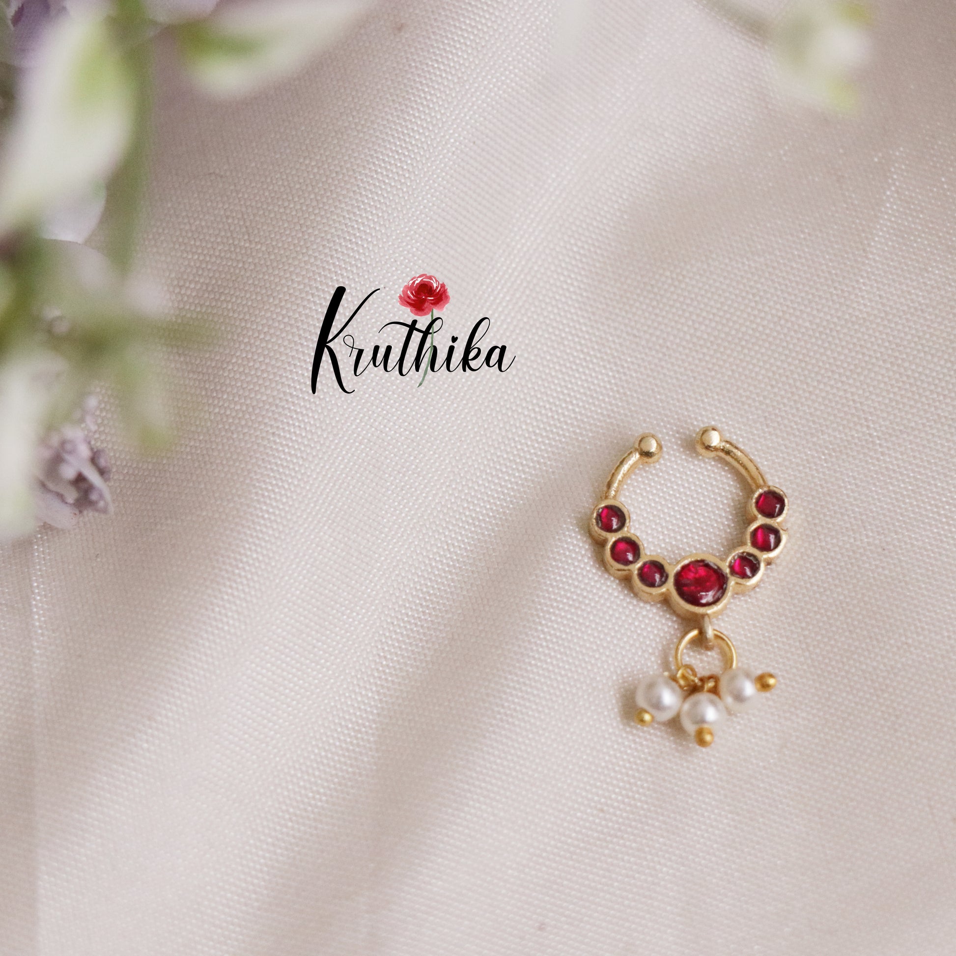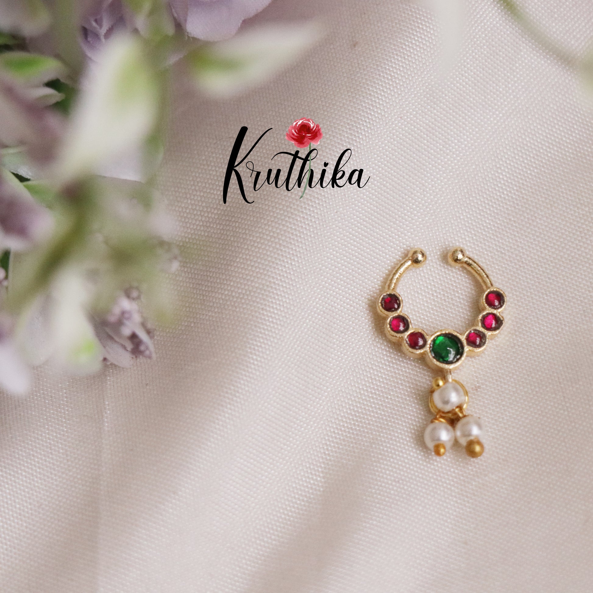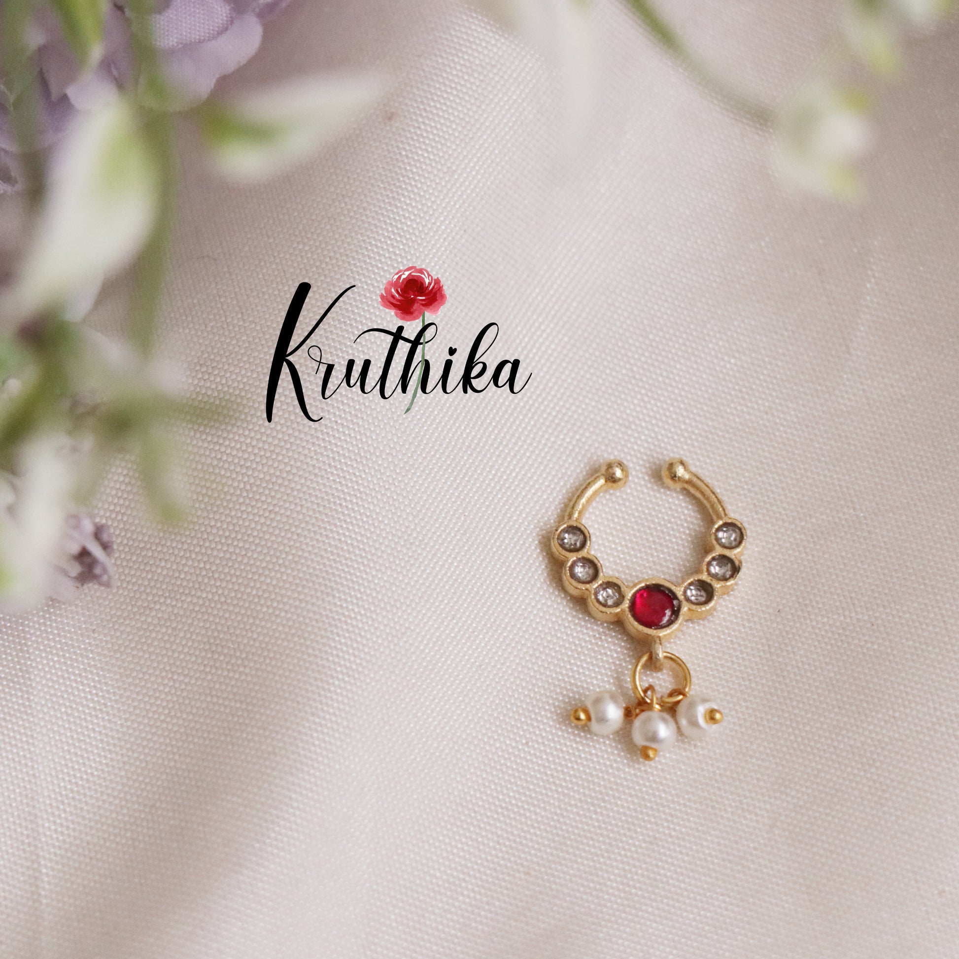Simple Jadau Septum Nose Ring- No Piercing Required N31 (Available in 5 Colours)
