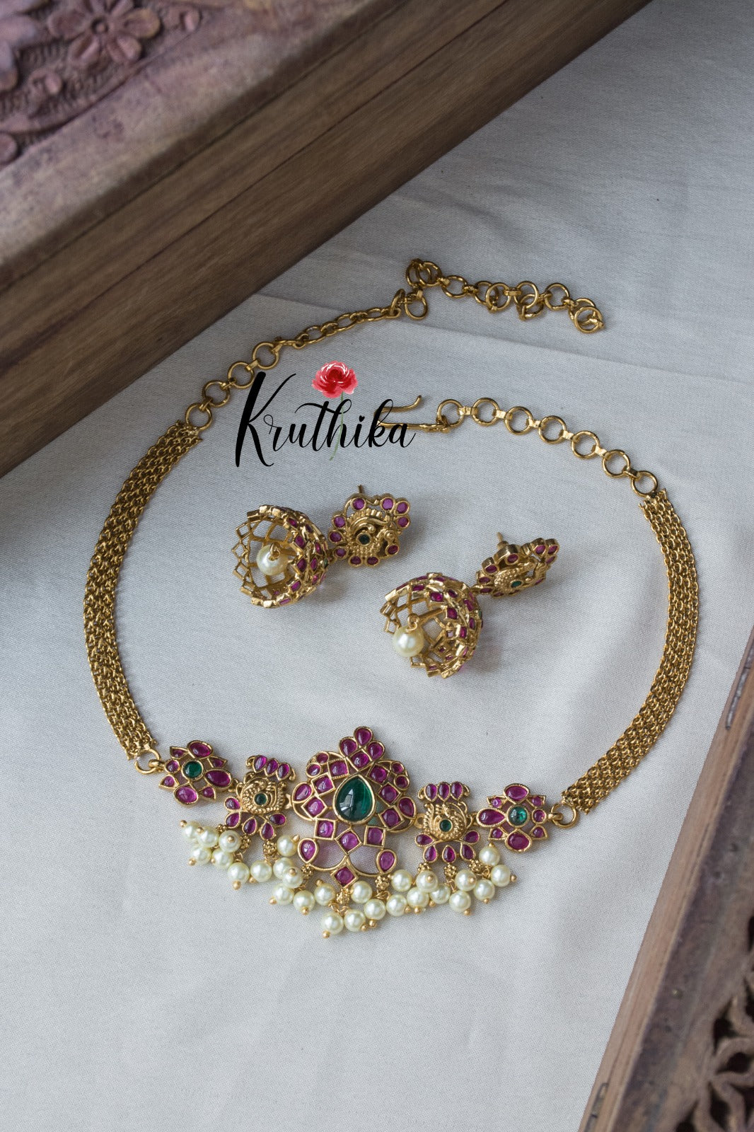 with matching earrings. Crafted with high-quality stones & beads, this set combines timeless elegance with a modern touch. Ideal for special occasions or adding a touch of glamour to your look.