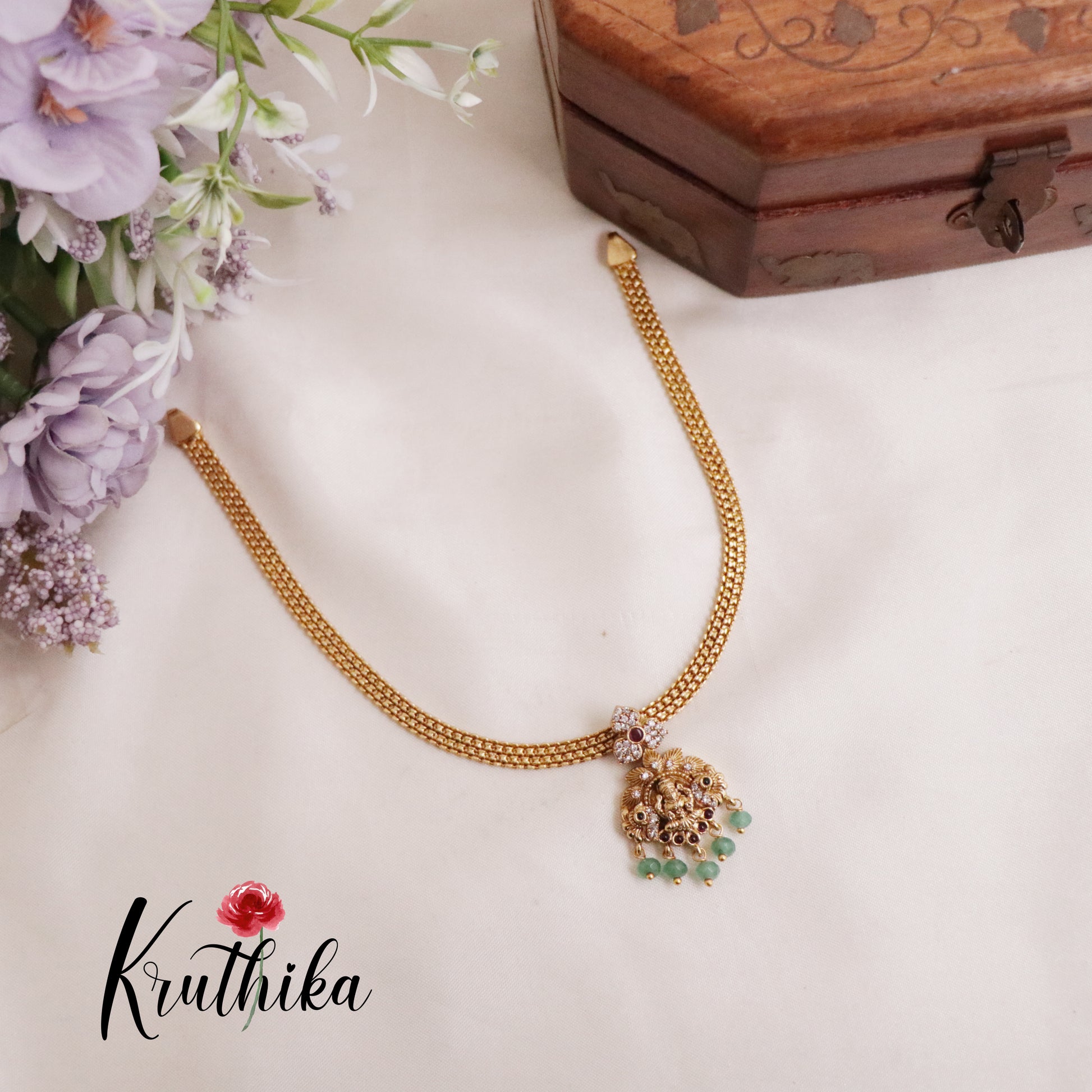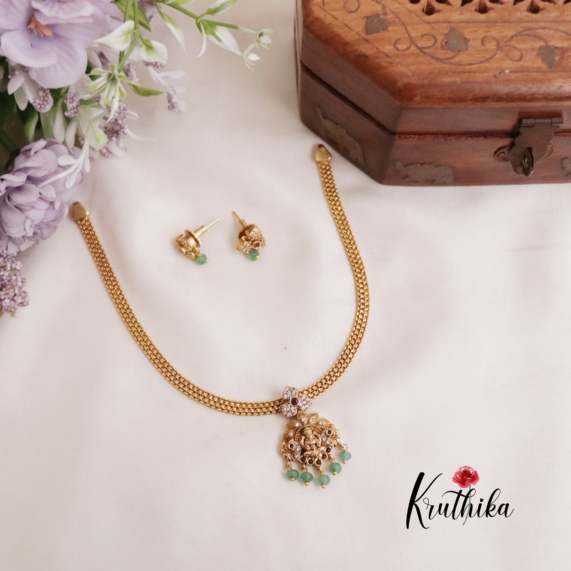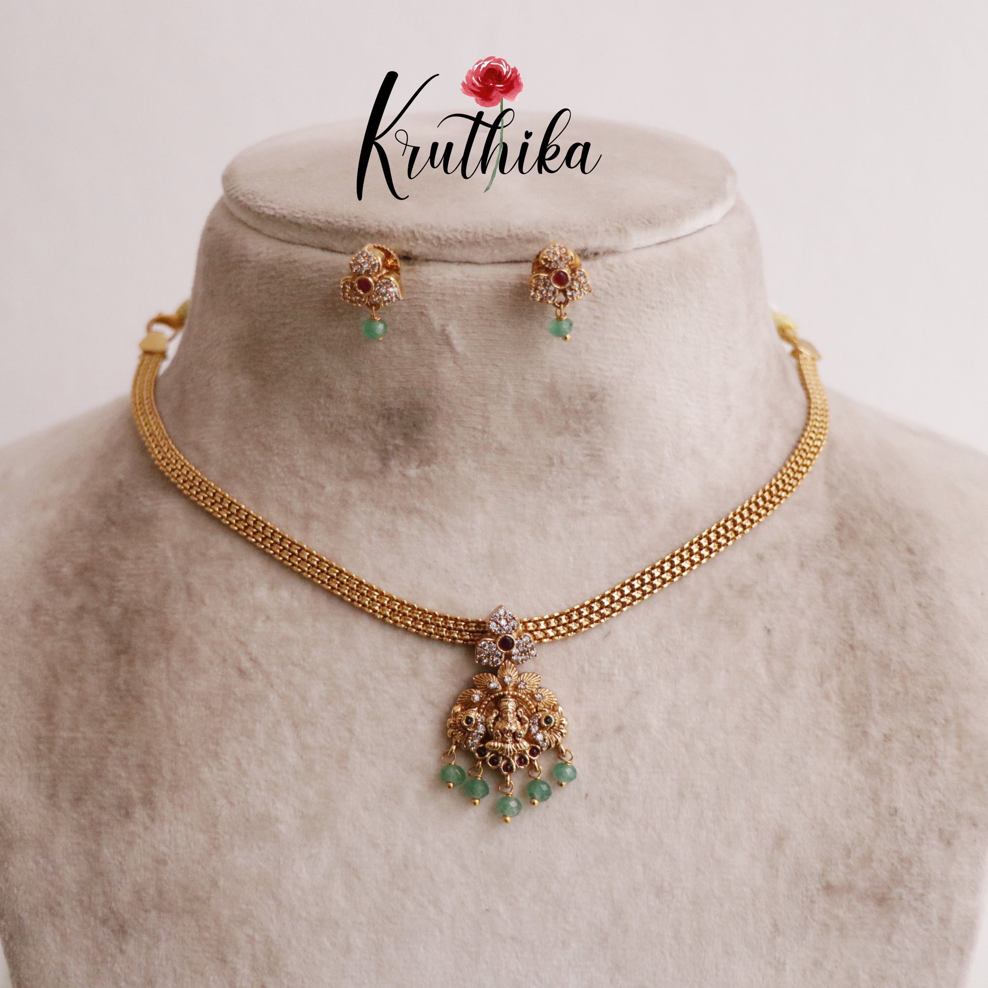 Enhance your style with our stunning Simple Lakshmi Pendant with Pastel Green Beads Necklace paired perfectly with matching earrings. Crafted with high-quality stones & beads, this set combines timeless elegance with a modern touch. Ideal for special occasions or adding a touch of glamour to your look.