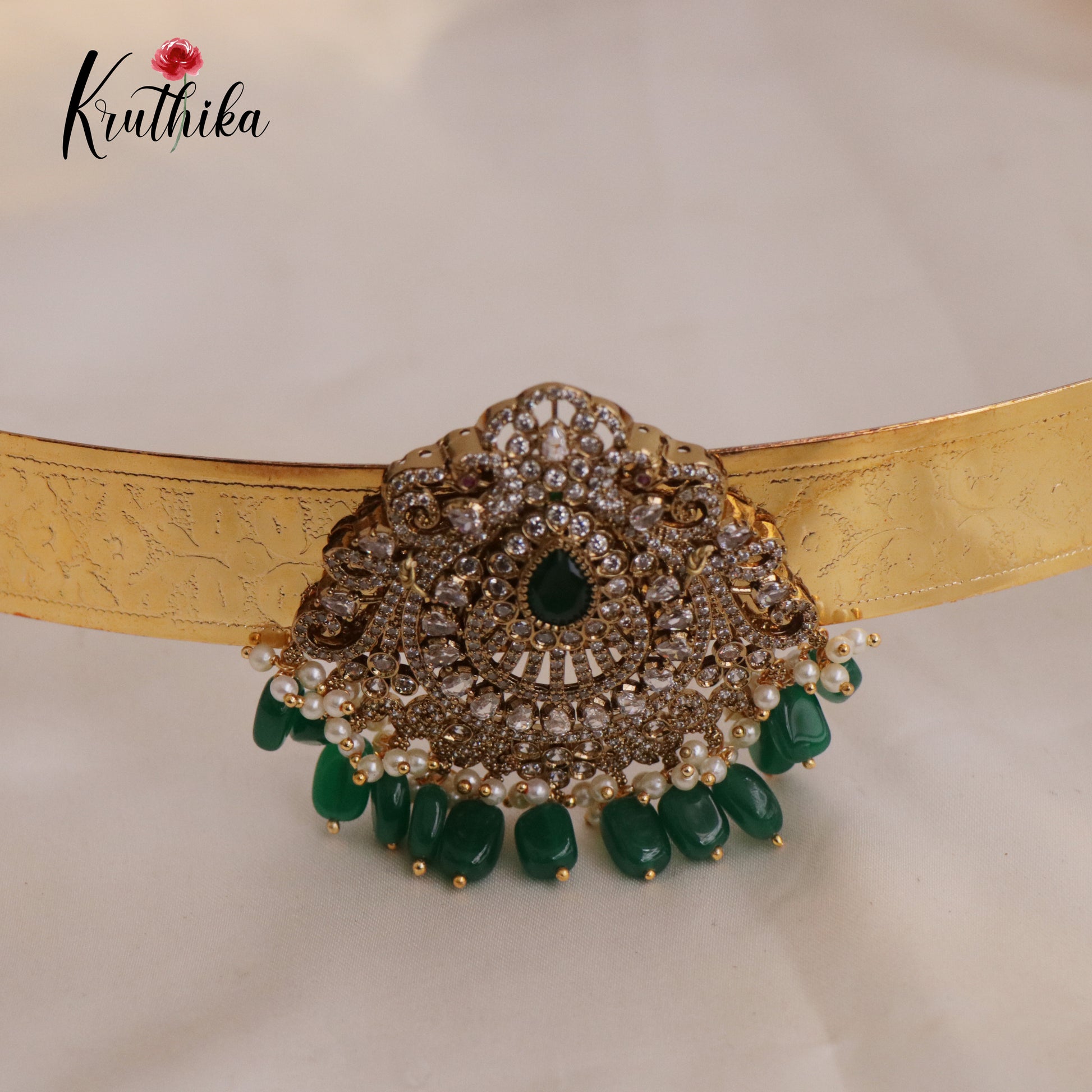 Elevate your ethnic ensemble with this stunning Victorian hip chain, adorned with brilliant cubic zirconia stones that catch light beautifully. The intricate design channels timeless elegance while the sparkling CZ accents add contemporary glamour. Perfect for special occasions, festivals, or when you want to feel absolutely radiant. This piece celebrates your unique style with grace and sophistication, making it an ideal addition to your jewellery collection.
