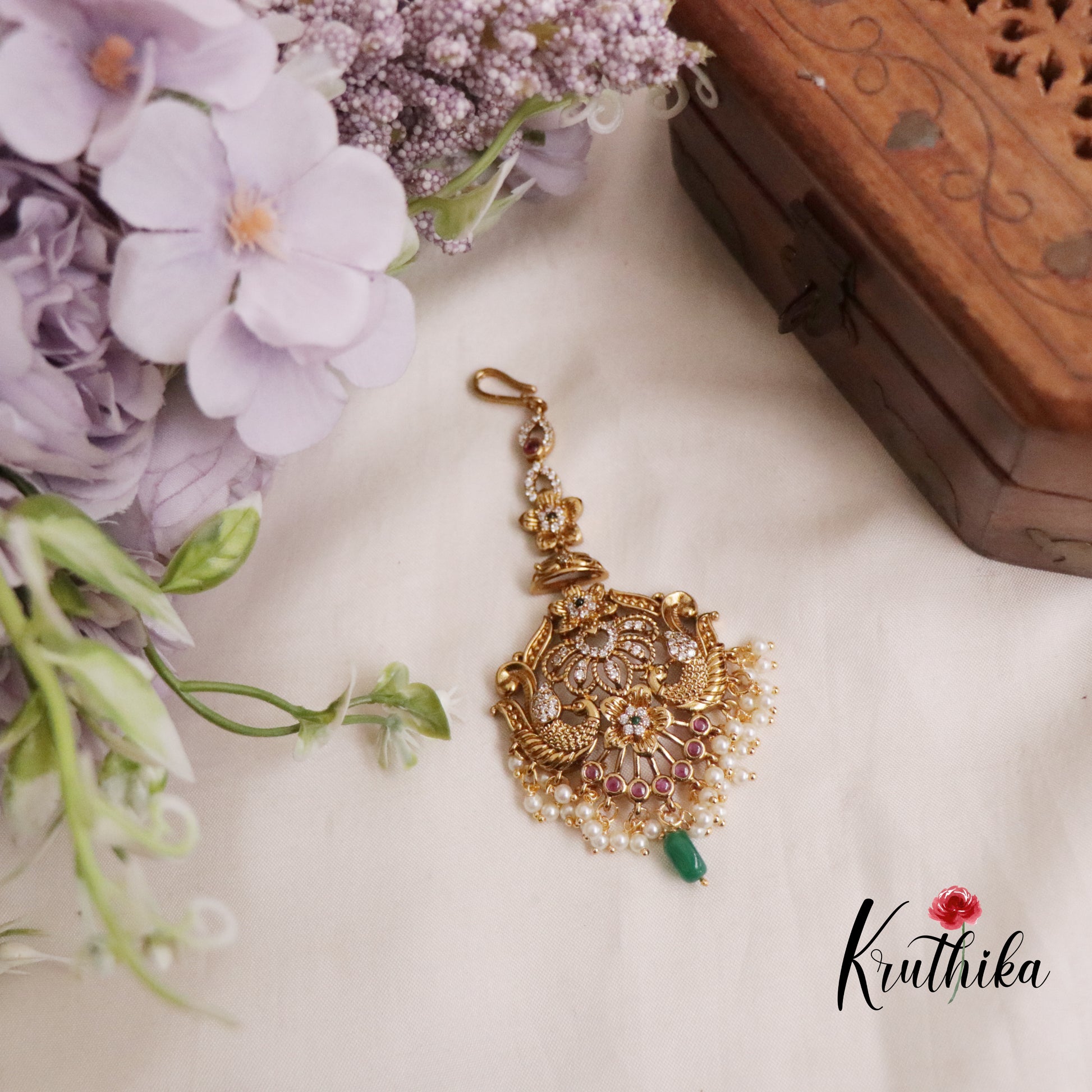 Enhance your style with our stunning Simple Peacock Maang Tikka Crafted with high-quality stones & beads, this set combines timeless elegance with a modern touch. Ideal for special occasions or adding a touch of glamour to your look.
