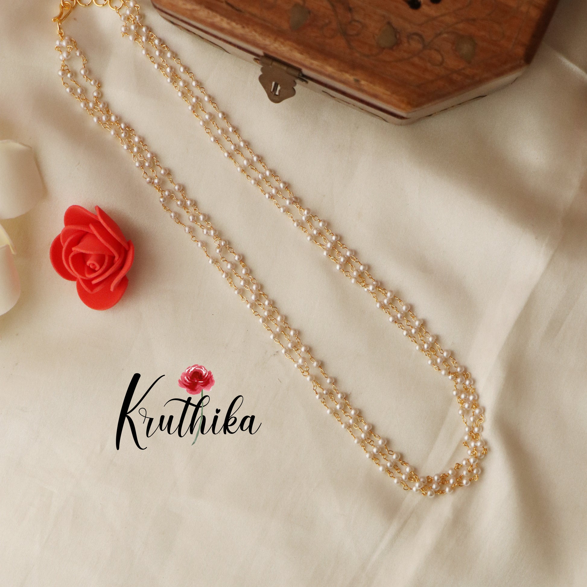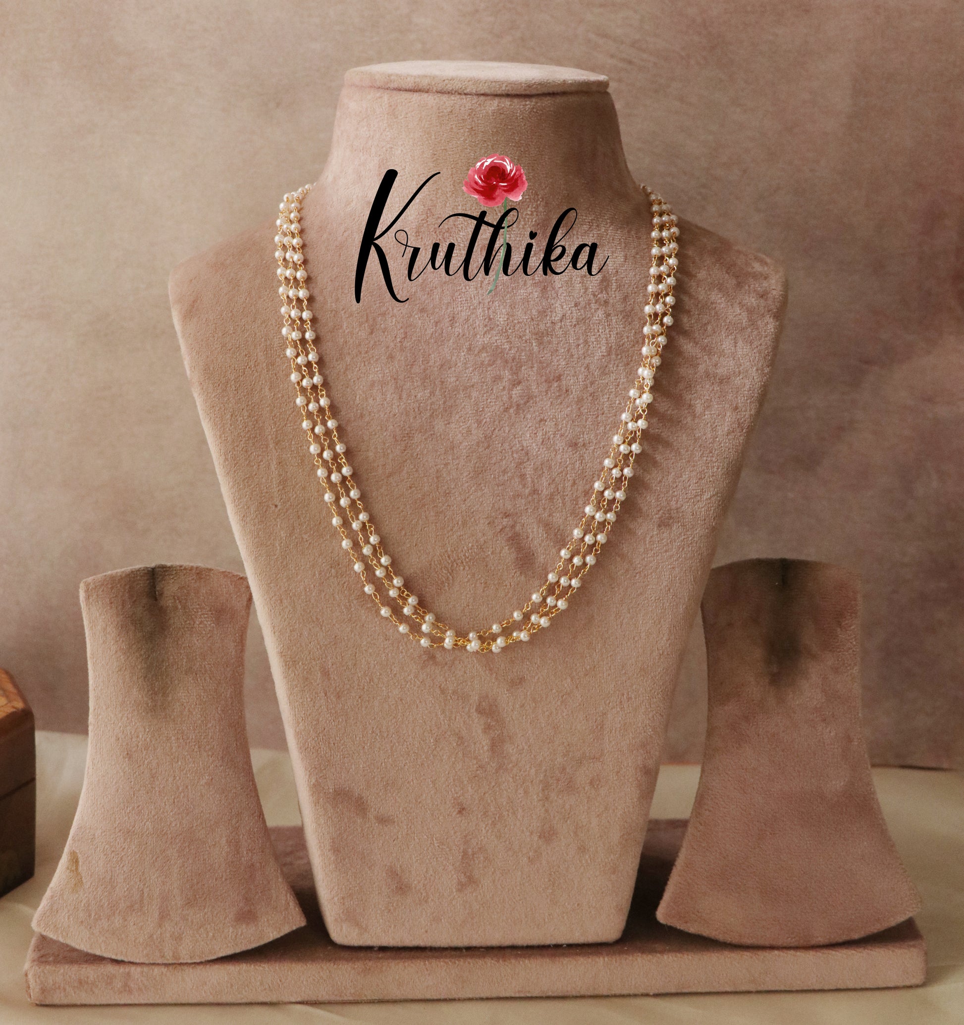 Enhance your style with our stunning, Simple perls maala . Crafted with high-quality stones & beads, this set combines timeless elegance with a modern touch. Ideal for special occasions or adding a touch of glamour to your look.