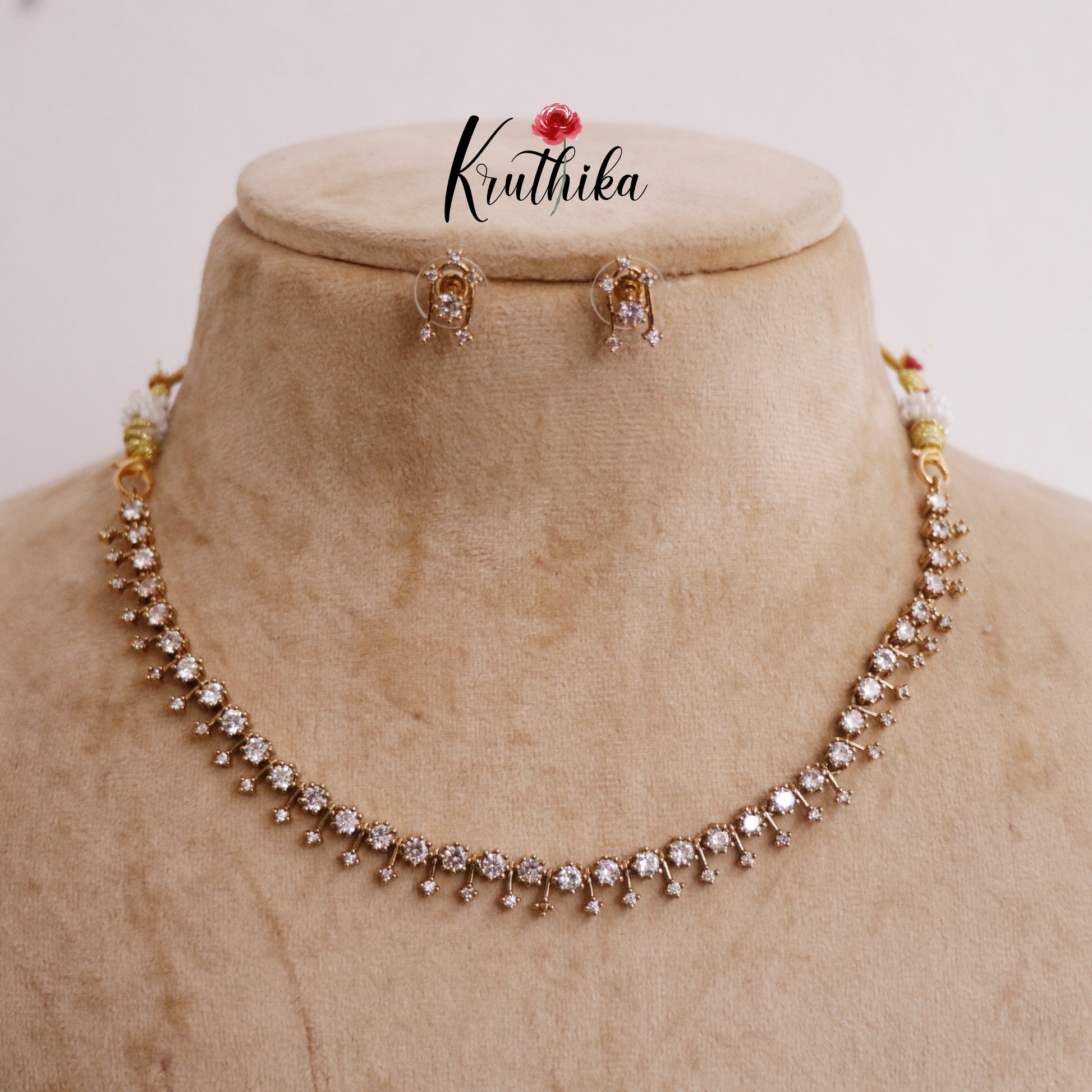 Elevate your everyday style with this Simple Trendy AD Necklace. Featuring elegant AD stones that catch the light beautifully, this piece brings a touch of sparkle to any outfit. The minimalist design makes it versatile enough for casual wear or special occasions. Perfect for layering or wearing solo, this necklace is a must-have addition to your jewellery collection. Comfortable to wear all day, it's the ideal accessory to express your personal style with confidence.