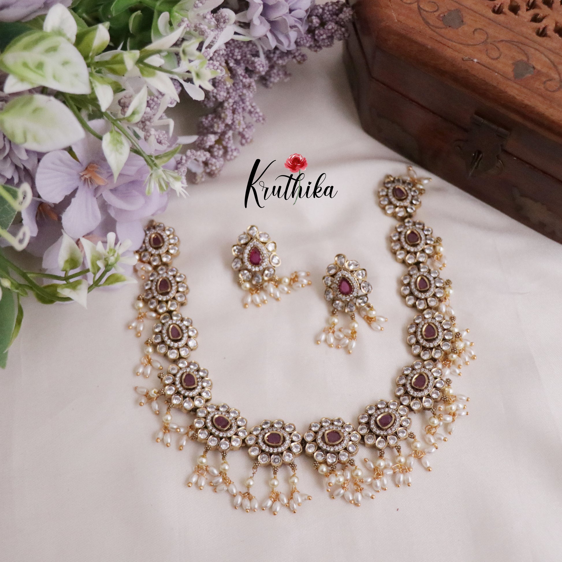 Enhance your style with our stunning Trendy Ruby Leaf Pendant Chain Set paired perfectly with matching earrings. Crafted with high-quality stones & beads, this set combines timeless elegance with a modern touch. Ideal for special occasions or adding a touch of glamour to your look.