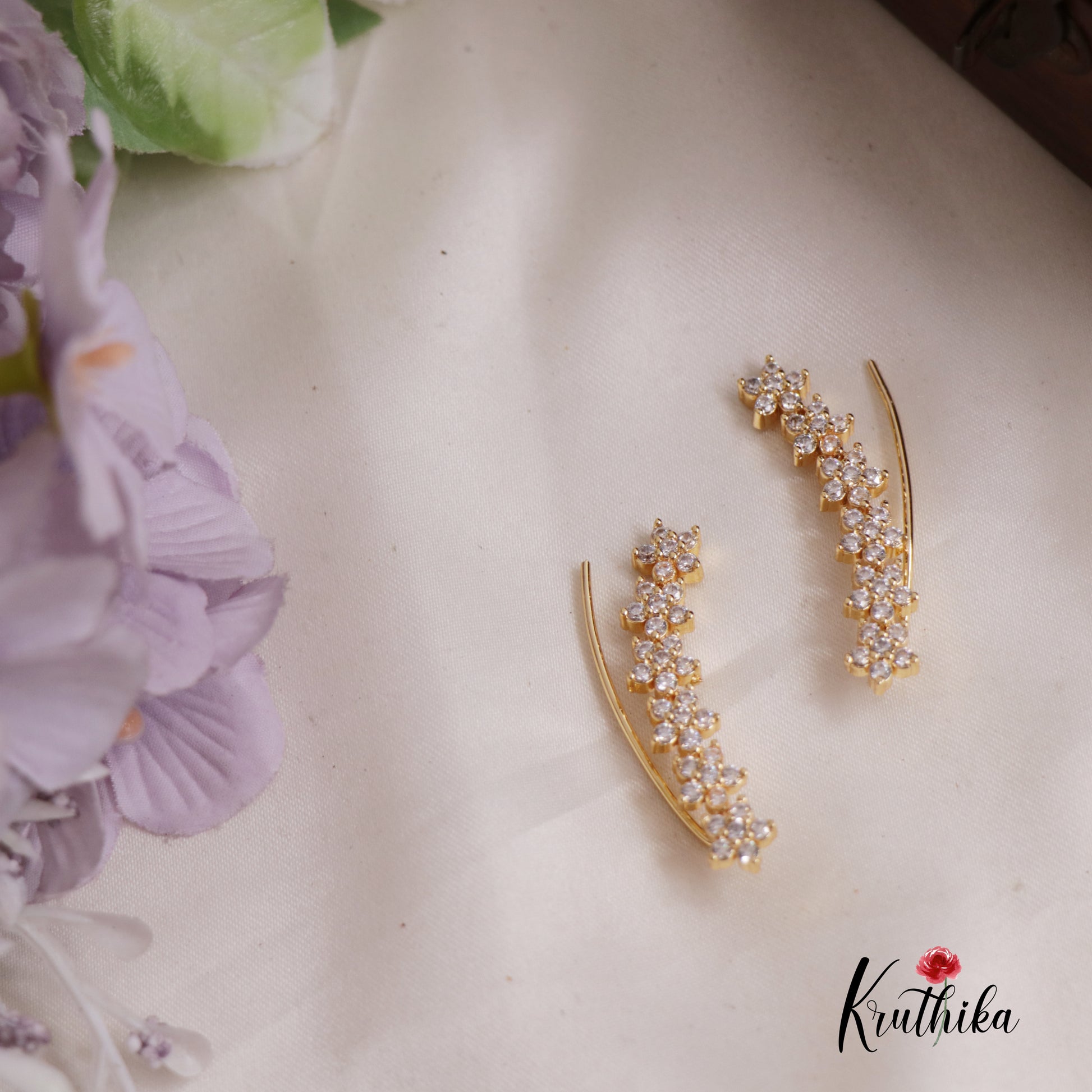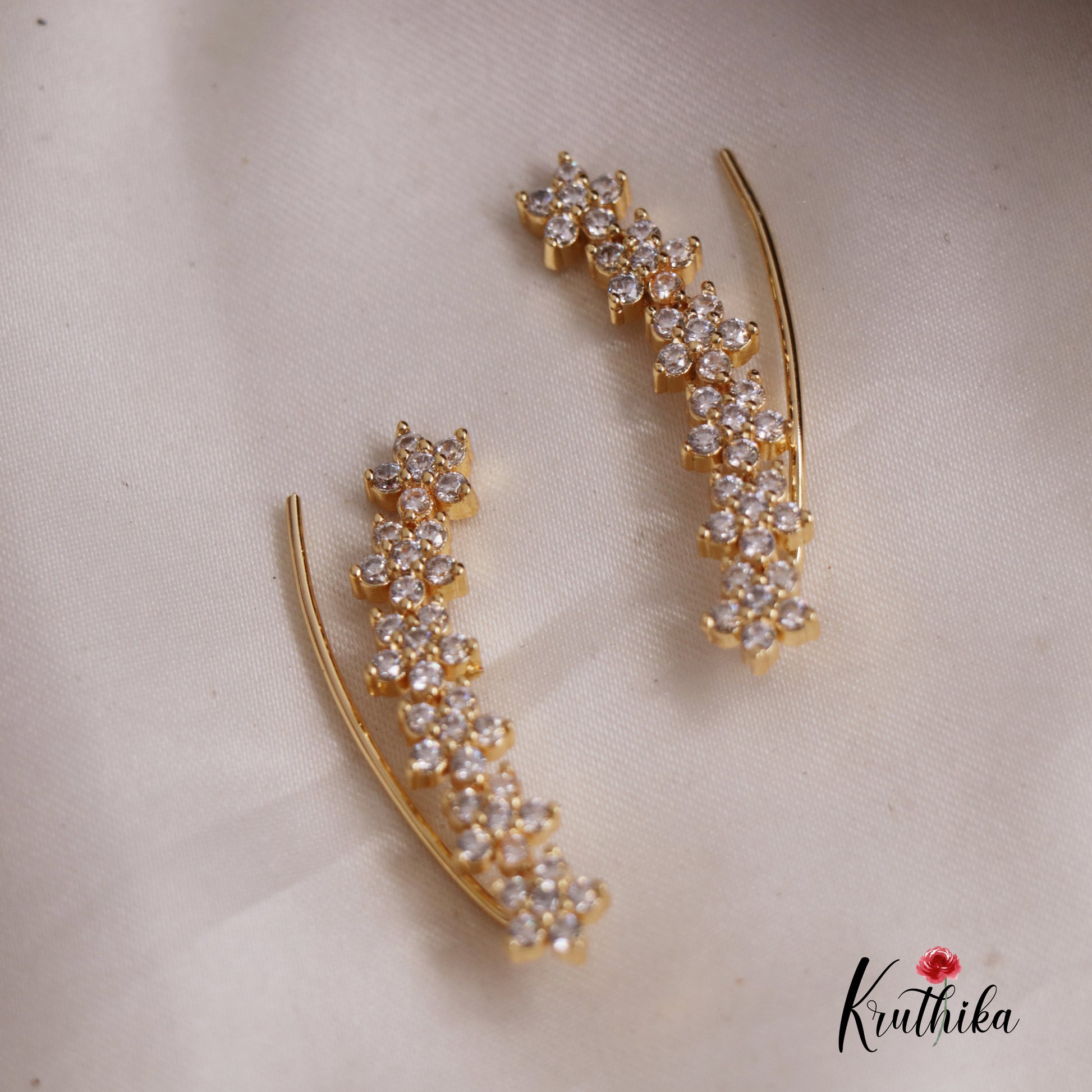 A sophisticated fusion of celestial charm and traditional artistry, these curated ear Climbers are designed to trace the natural contour of the ear with effortless grace. Each piece features a radiant stellar motif encrusted with brilliant white zirconias, transitioning into a sweeping arc of vivid. Offering a timeless look for your most celebrated marriage, ceremonies and special occasions.