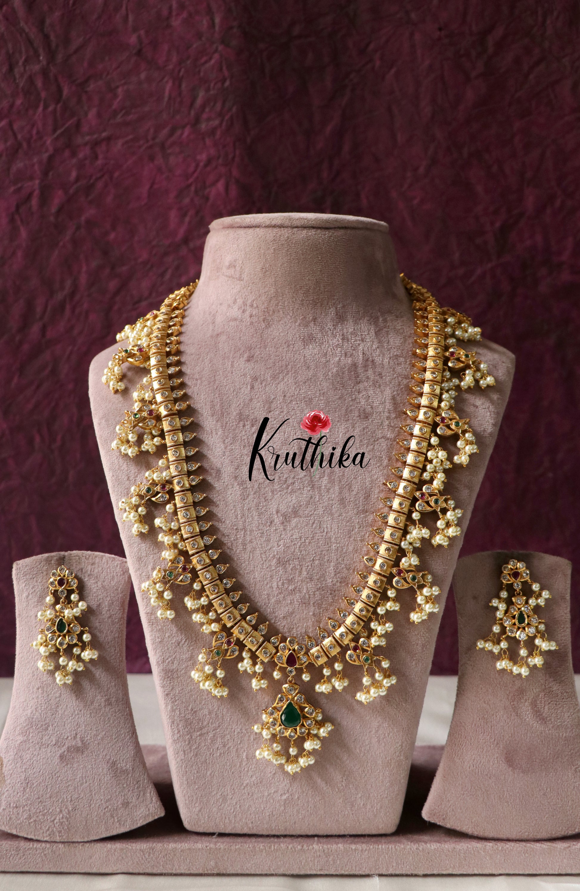 Enhance your style with our stunning Stunning Guttaposalu Haaram, paired perfectly with matching earrings. Crafted with high-quality stones & beads, this set combines timeless elegance with a modern touch. Ideal for special occasions or adding a touch of glamour to your look.