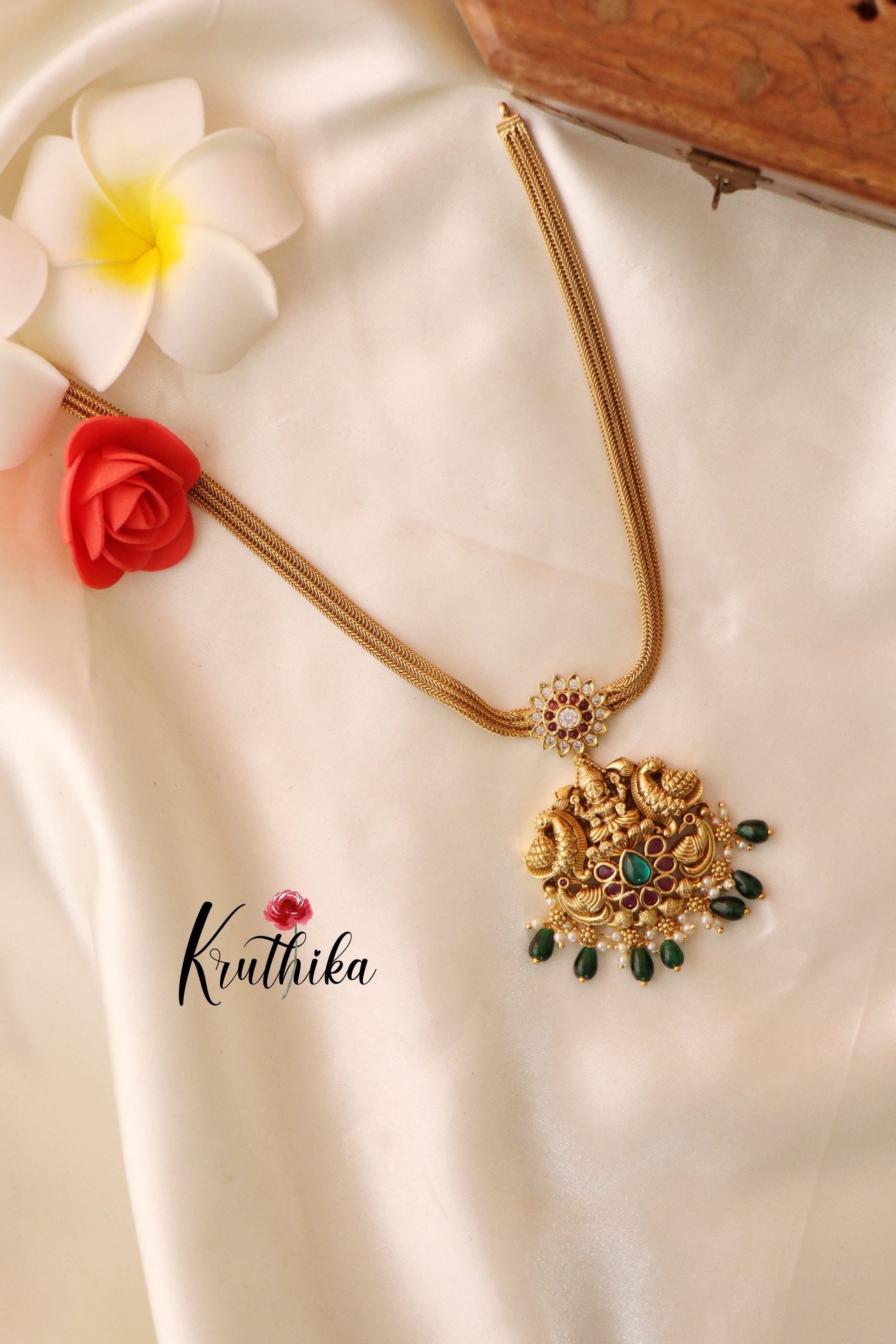 Enhance your style with our stunning Lakshmi Peacock Chain Set with Green Beads, paired perfectly with matching earrings. Crafted with high-quality stones & beads, this set combines timeless elegance with a modern touch. Ideal for special occasions or adding a touch of glamour to your look.